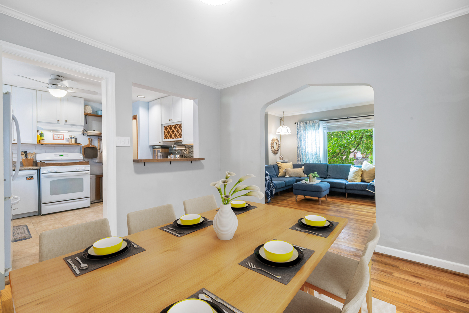 This attractive brick 3-bedroom, 1.5-bath Georgian home in beautiful Brookfield offers a bright, updated kitchen (2020) with granite countertops, white cabinetry, and newer appliances, including a dishwasher (2019). Hardwood floors flow through the spacious living and dining rooms, complemented by modern lighting. The main level includes a private bedroom with its own half bath (updated in 2016), ideal for guests or a home office. Upstairs are two generously sized bedrooms with hardwood floors and a shared full bath; the primary bedroom features two closets for ample storage. The partially finished basement provides additional living space, plus a large laundry and storage area. Outdoor entertaining is easy in the fenced backyard, which features a patio and a 2-car detached garage with a party door to the yard. Recent improvements include new front and kitchen windows (2020), gutters and fascia (2021), an outdoor electrical outlet (2023), and extensive tuck-pointing (2025). Roof (2012) and furnace (2013) add peace of mind. A beautiful magnolia tree graces the front yard, adding charm and seasonal color. Located close to parks, restaurants, and the Metra station, this move-in-ready gem is not to be missed. Sold as is.