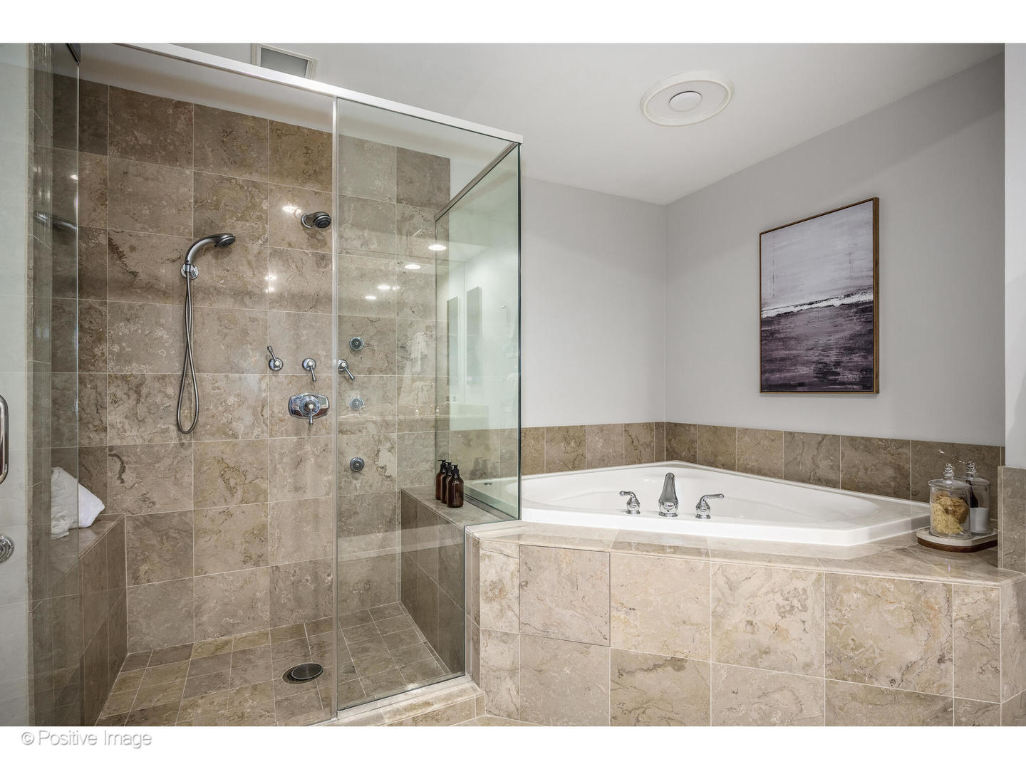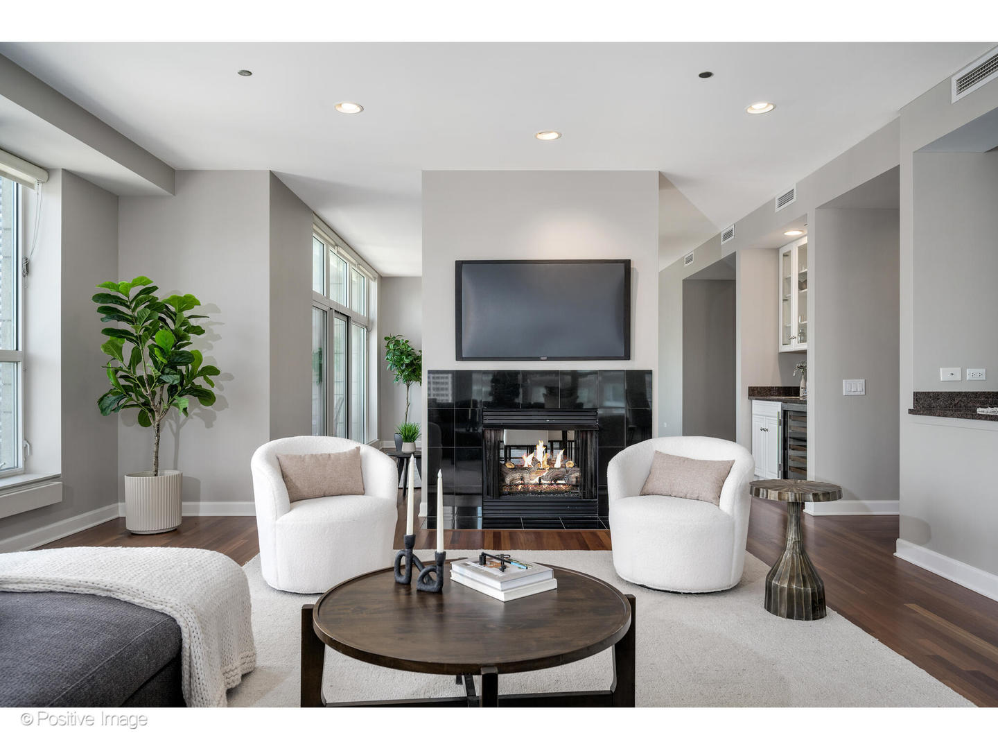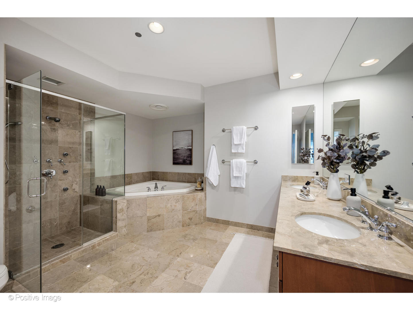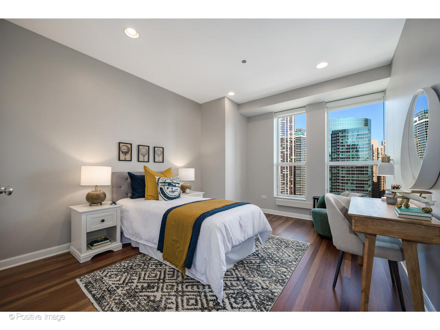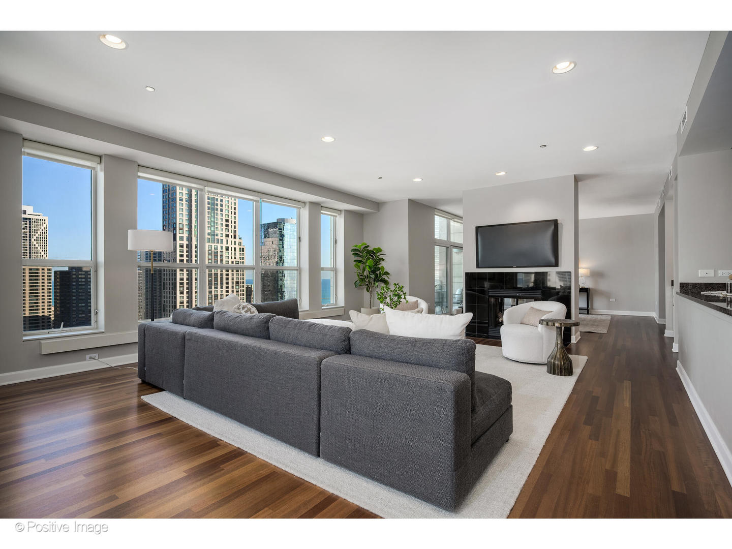 Enjoy breathtaking views from this 3,500 sq ft, 4 bedroom, 3.1 bath penthouse residence at RiverView. This gorgeous corner unit stuns with floor-to-ceiling windows capturing north, east, and west exposures of the skyline, river, and lake. Hardwood flooring flows seamlessly through an expansive, open floor plan. A large formal entryway with ample wall space for an art collection welcomes you home. Formal living and dining rooms are separated by a two-sided fireplace. A generously sized living room enjoys stunning corner views, while the dining room offers a convenient wet bar with a wine fridge and granite counter. Off the main living space, step onto the first of two balconies, where you’ll take in striking views of the river, lake, city, and the iconic Navy Pier. A second west-facing balcony frames additional river and skyline views while offering spectacular sunsets. The living room also opens to the chef’s kitchen, making this the perfect place to entertain on a large scale. The kitchen features an extra-large island that easily doubles as a buffet, ample counter space, 42″ cabinets, Sub-Zero and Thermador appliances, and a breakfast nook. The 4th bedroom is currently set up as a family room/den, the perfect retreat for a study, movie night, or home office. A massive primary suite occupies its own “wing” of the residence with a graciously sized bedroom, a California Closets custom designed walk-in closet, and an ensuite bath with Whirlpool tub, oversized separate shower, and dual vanity. On the other side of the residence, the second bedroom has an ensuite bath and a custom walk-in closet designed by California Closets. A large third bedroom with a generous closet is conveniently located across the hall from a third full bath with tub/shower. A powder room and laundry room complete the layout. Two deeded parking spaces are available for purchase for $50K/space. RiverView is a full-service, amenity-rich building offering 24 hour door staff, an exercise room, indoor pool and spa and sundeck. 415 E North Water sits along the riverfront with quick access to the Riverwalk, lakefront path, restaurants, shopping, museums, nightlife, and all that Streeterville has to offer!