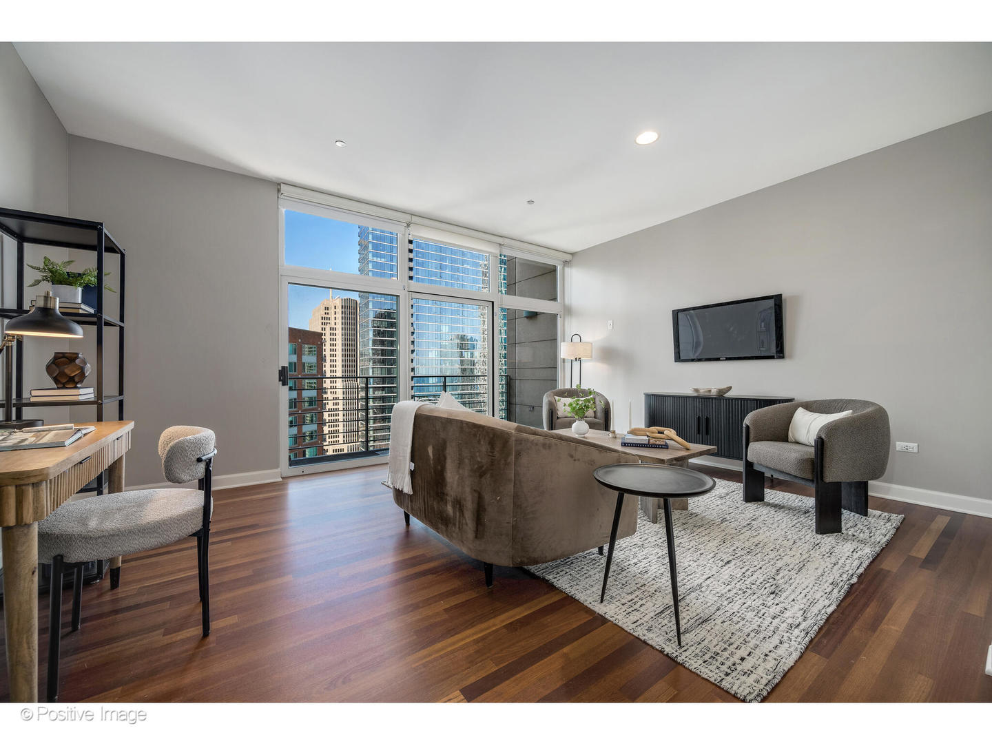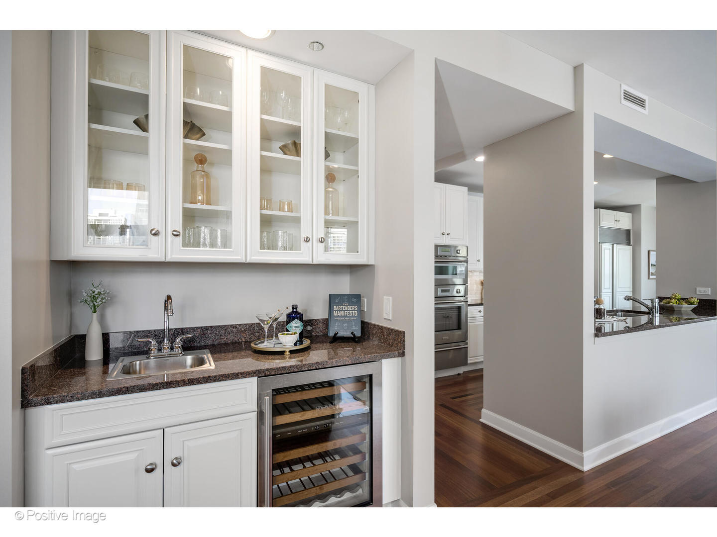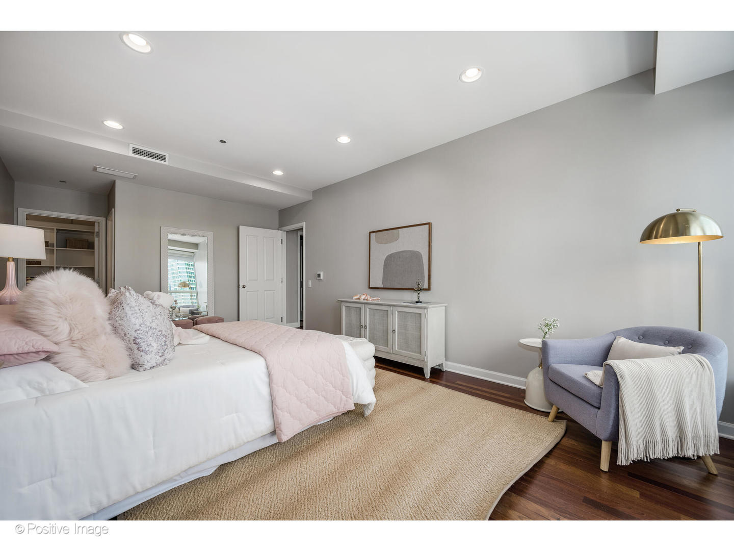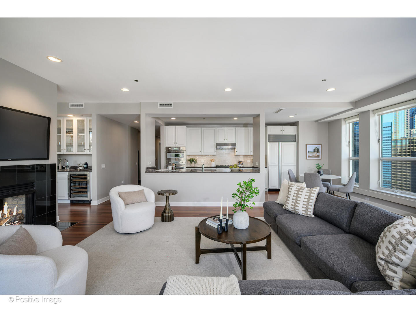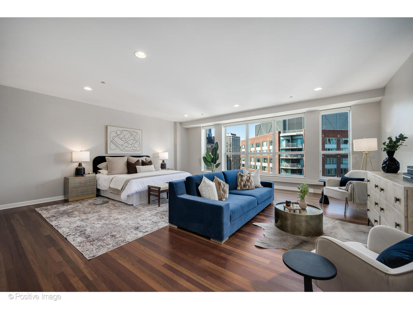 Enjoy breathtaking views from this 3,500 sq ft, 4 bedroom, 3.1 bath penthouse residence at RiverView. This gorgeous corner unit stuns with floor-to-ceiling windows capturing north, east, and west exposures of the skyline, river, and lake. Hardwood flooring flows seamlessly through an expansive, open floor plan. A large formal entryway with ample wall space for an art collection welcomes you home. Formal living and dining rooms are separated by a two-sided fireplace. A generously sized living room enjoys stunning corner views, while the dining room offers a convenient wet bar with a wine fridge and granite counter. Off the main living space, step onto the first of two balconies, where you’ll take in striking views of the river, lake, city, and the iconic Navy Pier. A second west-facing balcony frames additional river and skyline views while offering spectacular sunsets. The living room also opens to the chef’s kitchen, making this the perfect place to entertain on a large scale. The kitchen features an extra-large island that easily doubles as a buffet, ample counter space, 42″ cabinets, Sub-Zero and Thermador appliances, and a breakfast nook. The 4th bedroom is currently set up as a family room/den, the perfect retreat for a study, movie night, or home office. A massive primary suite occupies its own “wing” of the residence with a graciously sized bedroom, a California Closets custom designed walk-in closet, and an ensuite bath with Whirlpool tub, oversized separate shower, and dual vanity. On the other side of the residence, the second bedroom has an ensuite bath and a custom walk-in closet designed by California Closets. A large third bedroom with a generous closet is conveniently located across the hall from a third full bath with tub/shower. A powder room and laundry room complete the layout. Two deeded parking spaces are available for purchase for $50K/space. RiverView is a full-service, amenity-rich building offering 24 hour door staff, an exercise room, indoor pool and spa and sundeck. 415 E North Water sits along the riverfront with quick access to the Riverwalk, lakefront path, restaurants, shopping, museums, nightlife, and all that Streeterville has to offer!