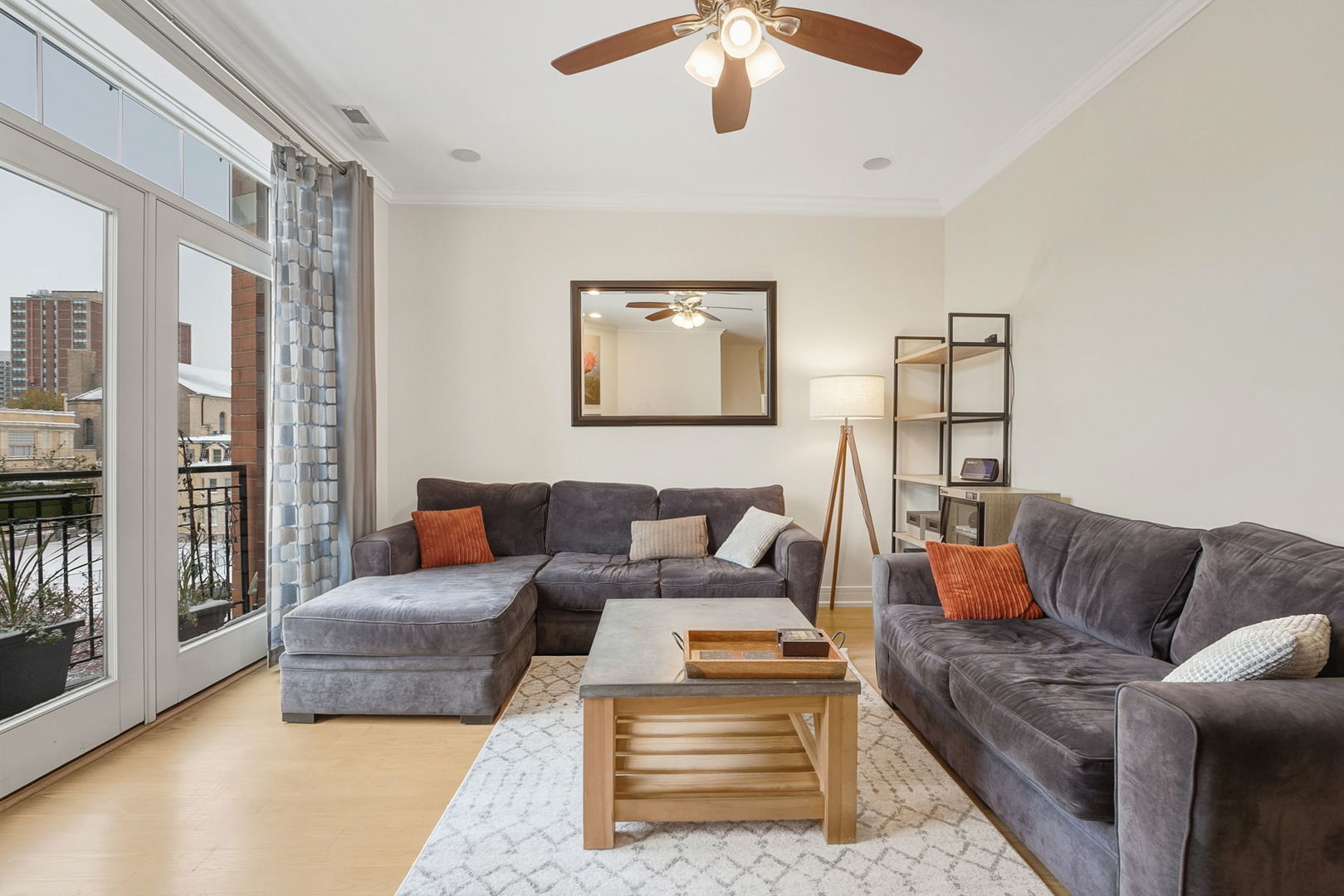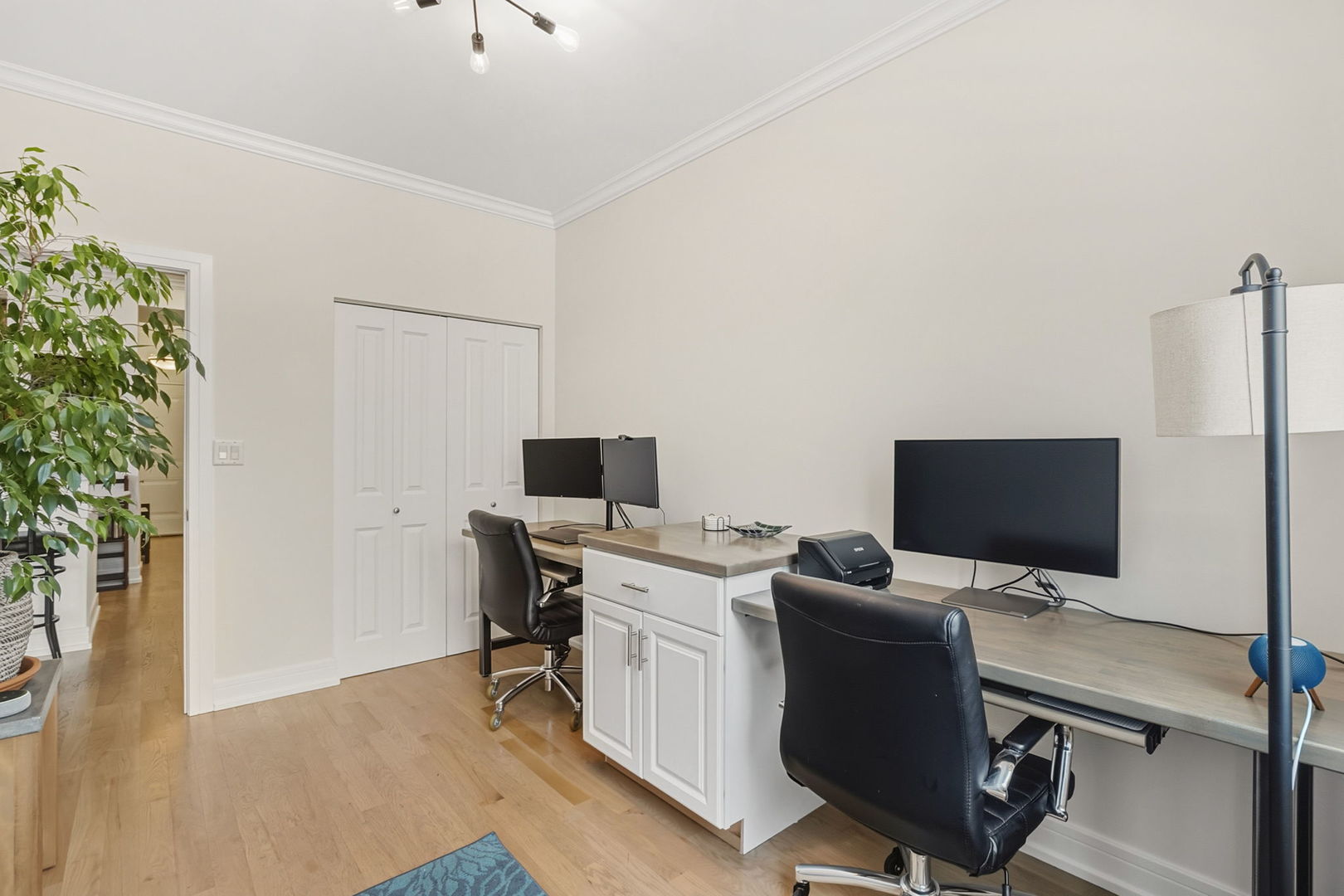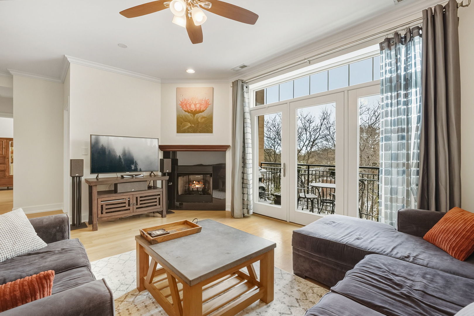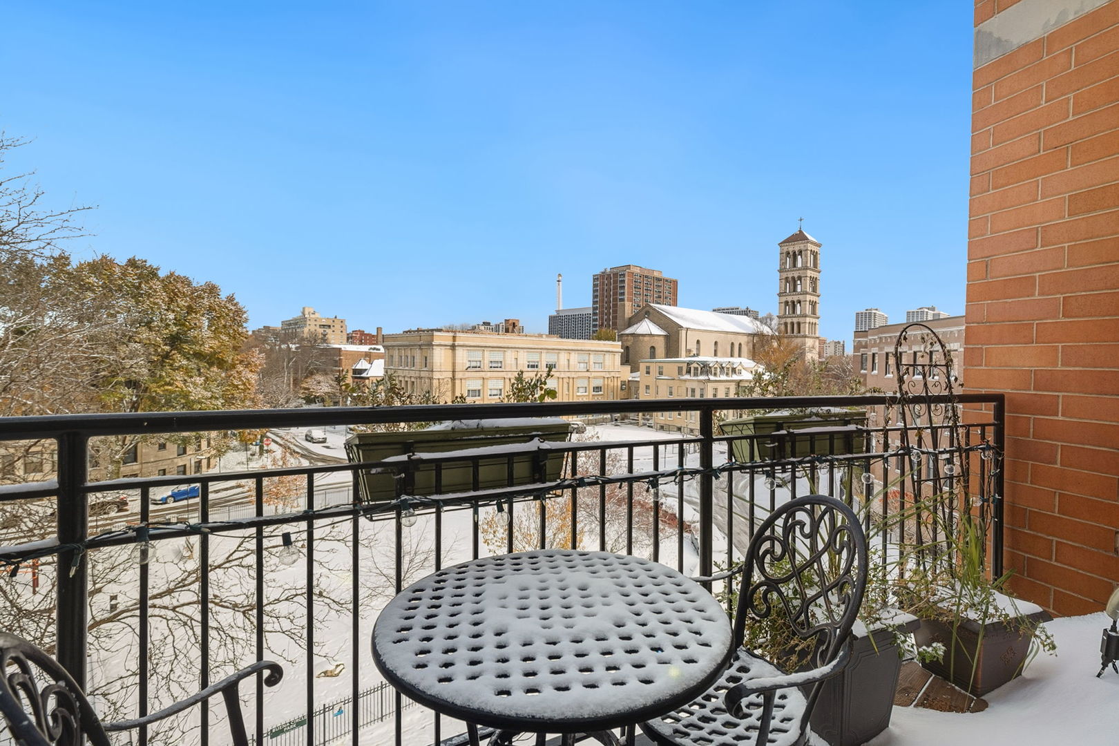 Welcome to this beautifully appointed TOP FLOOR 2-bedroom, 2-bath condo overlooking scenic Buena Circle Park. The home features elegant hardwood flooring throughout and a bright living room with glass doors, a large transom window, a cozy fireplace, and access to a private balcony-perfect for relaxing or entertaining. The modern kitchen boasts a spacious island, breakfast bar, and stainless steel appliances. The primary bedroom offers generous closet space and an ensuite bath with a double vanity, while the second bedroom-complete with a convenient Murphy bed-provides exceptional flexibility for guests, a home office, or a creative workspace. A second full bath ensures comfort and convenience. Additional features include in-unit laundry and a deeded parking space in a heated garage. Every window offers tranquil park views, and the location provides easy access to the Red Line, multiple bus routes, the Lakefront Trail, and the nearby dog park. Recent improvements include crown molding, dimmer switches, and wiring for whole-home audio and ethernet-adding both style and functionality to this inviting home.
