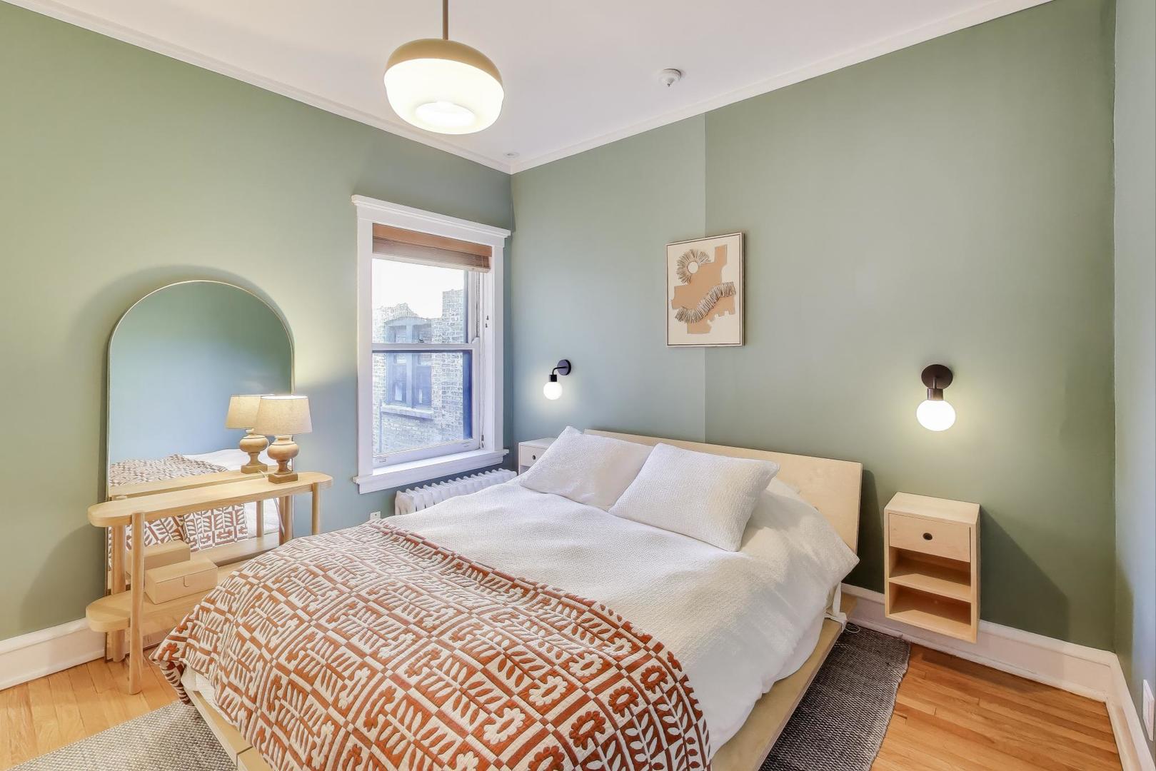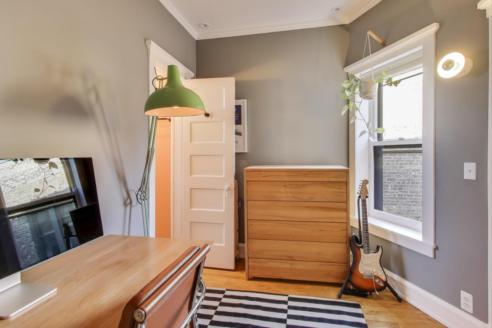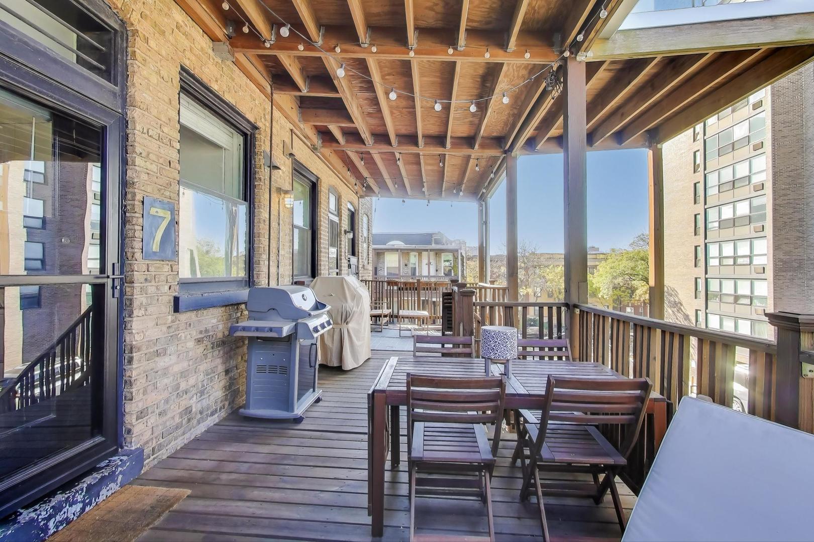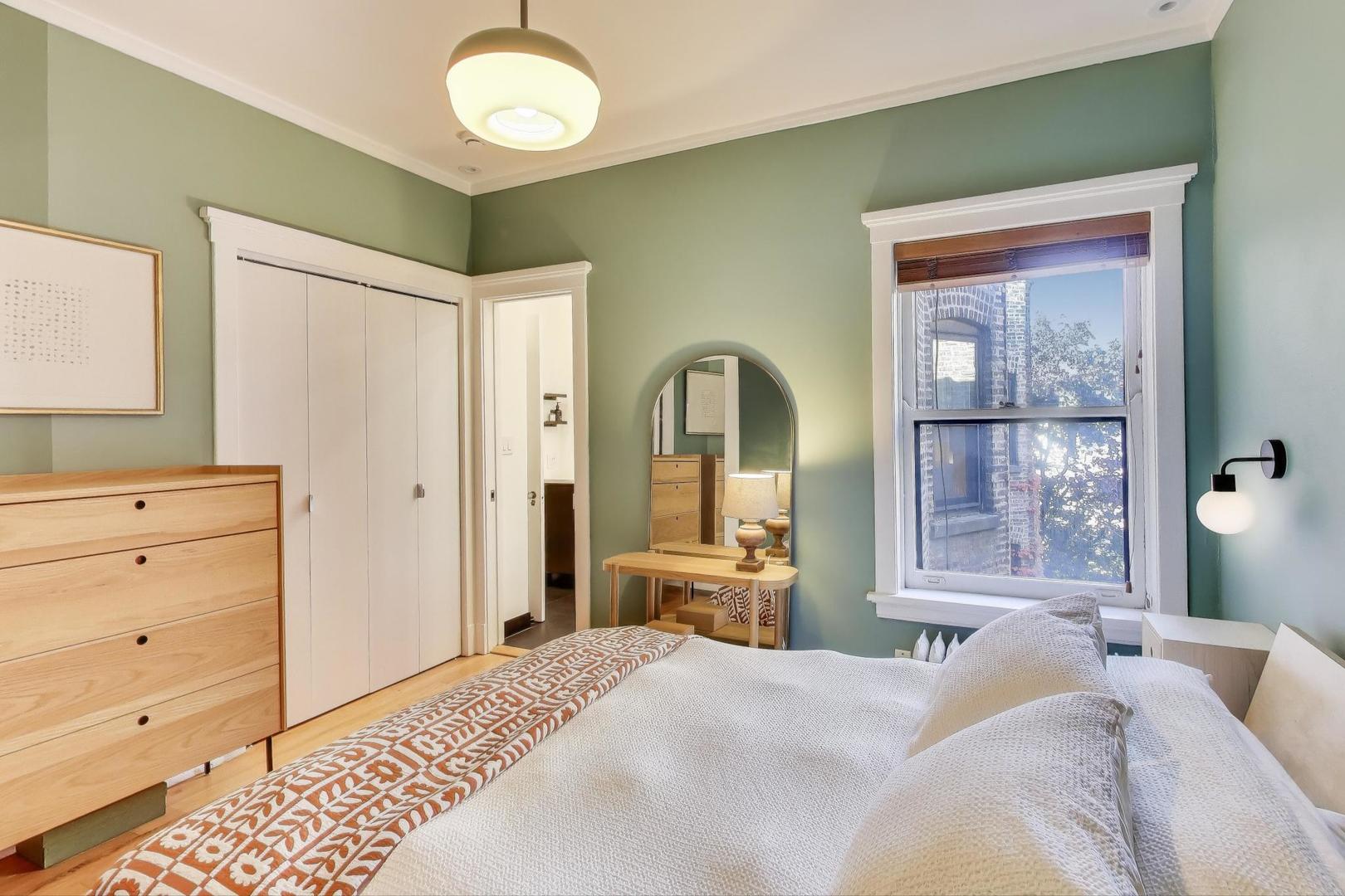 Modern Comforts meets Classic Charm. Nestled in the heart of Buena Park, this bright and spacious top-floor home blends vintage character with thoughtful modern updates. The open-concept kitchen (remodeled 2022) flows seamlessly into the dining area, featuring custom cabinetry, new flooring, and premium appliances including a Samsung refrigerator, Bosch dishwasher, LG washer/dryer, and disposal. A newly added laundry room with ample storage enhances everyday convenience. Recent upgrades include SpacePak central air (2024), re-tiled sunroom (2024), new closet doors in the primary (2025), utility closet shelving (2023), and electric installed over the fireplace (2025). The building is impeccably maintained with major projects completed: roof (2022), boiler (2024), water heater (2025), tuckpointing (2024), and deck staining/reinforcement (2024). Experience the best of Buena Park-tree-lined streets, easy lakefront and Lake Shore Drive access, and proximity to shops, dining, and transportation, all from a home that’s been lovingly cared for and move-in ready. Free street parking in the neighborhood, and several rented parking options around within a block or two.