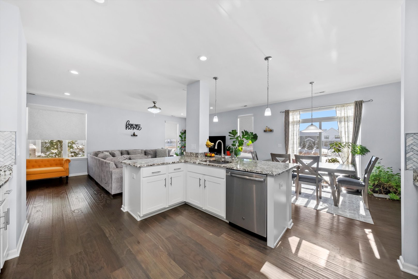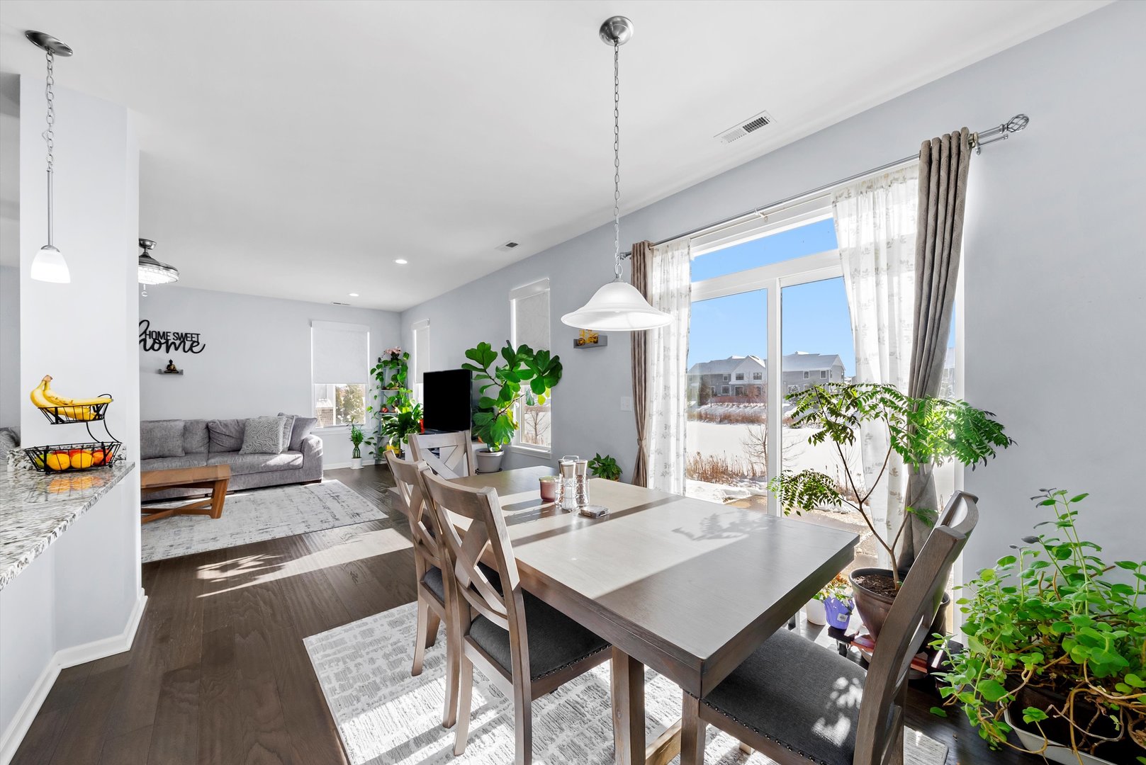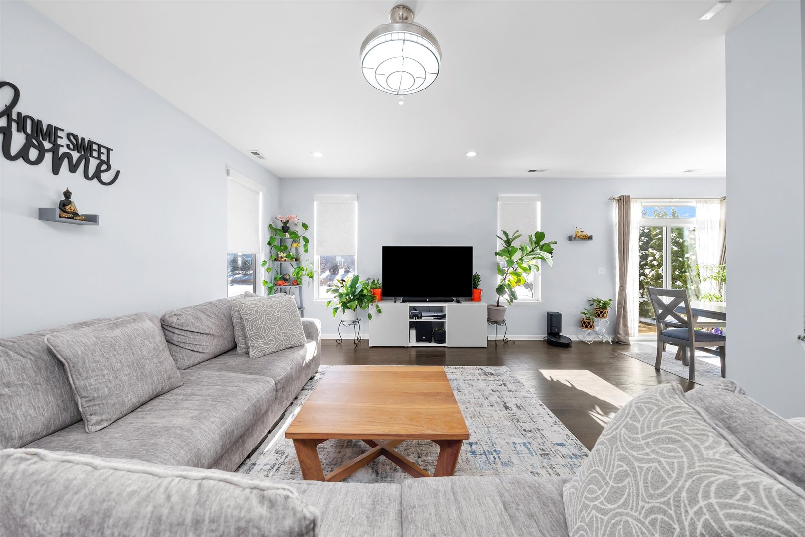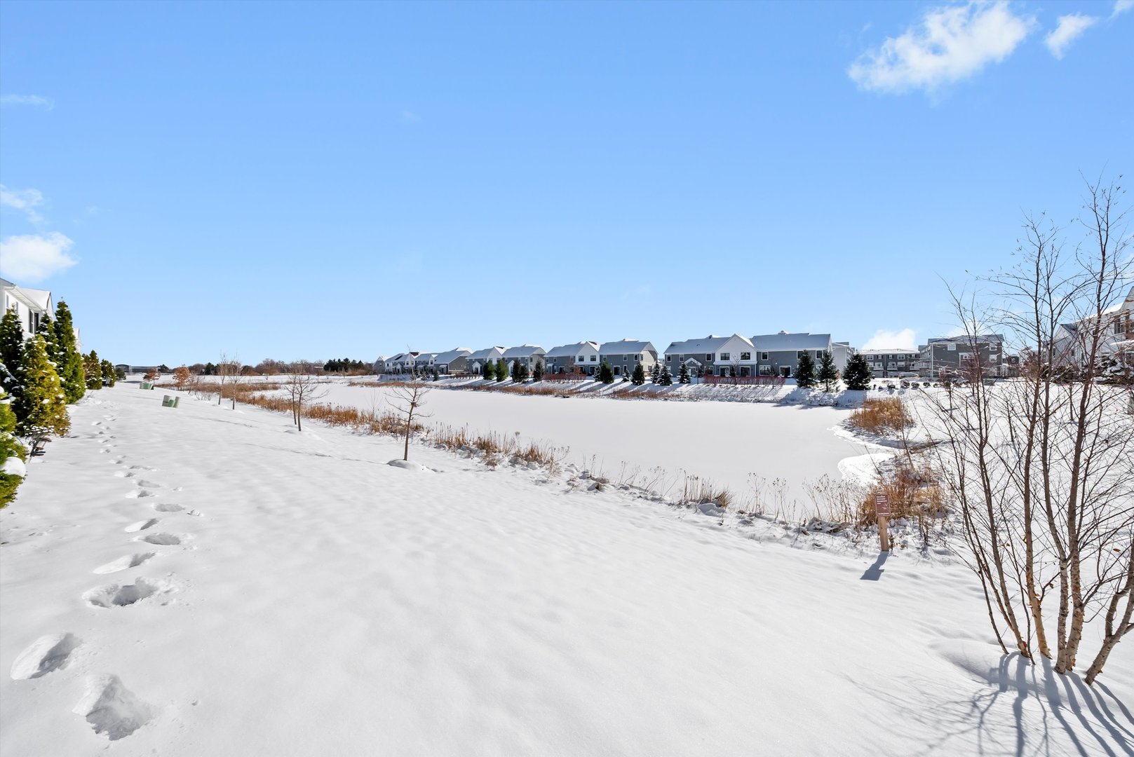 Experience refined living in this beautiful end-unit Campbell model, thoughtfully positioned along open pond-side scenery for enhanced privacy and a serene backdrop. The main level impresses with 9-foot ceilings and a spacious living area that spans half the first floor. Recent enhancements include fresh interior paint, an epoxy-finished garage floor, premium blackout roller shades, a storm door, and an RO drinking water system. The kitchen features a large island, 42-inch white cabinetry, granite surfaces with a coordinating backsplash, and stainless steel appliances. The second floor offers two oversized guest bedrooms, a shared full bath, and a well-appointed primary suite complete with a 5-foot walk-in shower, linen storage, and a large walk-in closet. The upstairs laundry room adds everyday convenience. Gramercy Square provides exceptional convenience. Costco and Whole Foods are directly across the street for everyday errands. Fox Valley Mall is just one mile north for shopping, dining, and entertainment. Commuters will appreciate being only 3 miles from the Naperville Route 59 Metra station and about 4 miles from the I-88 expressway. Families will value this home’s location within the highly regarded District 204 school system, along with school bus service available within the community. This home comes with a transferable 15-year structural warranty and is Whole Home Certified.