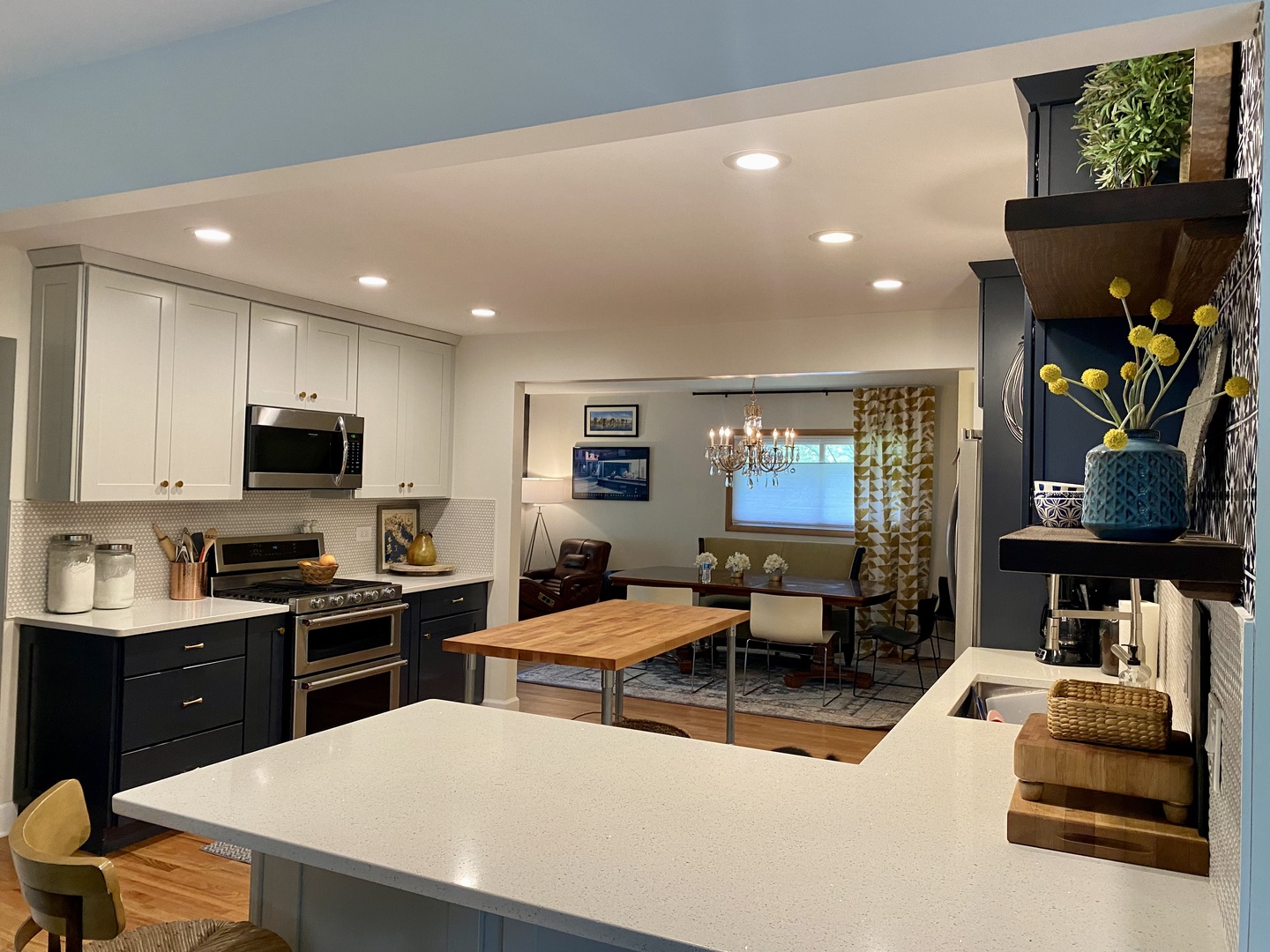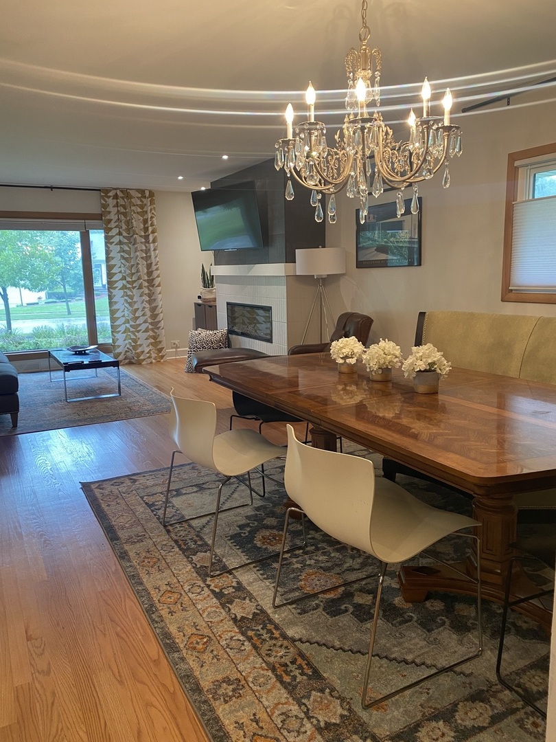 Looking for a stunning remodeled mid-century solid brick ranch blocks from downtown Palatine? Palatine is the hip place to live offering great schools, recreation, nice restaurants, coffee shops & shopping & the Metra station. Cute and Trendy downtown. You will admire the updates when you first arrive, a home out of a magazine. Once you enter you will enjoy an open floor plan with an expansive living room and dining room enhanced by sprawling windows that let in the natural light. Stylish new built-in-fireplace to set the ambiance. Walk into the open and newly remodeled kitchen with 42′ cabinets, quartz countertops, new appliances and backsplash. A large breakfast bar opens to the spacious family room with large windows and patio doors to show off the beautiful yard and to top it off with a brick fireplace. Make your way down the hallway to 3 bedrooms & 2 full bathrooms with a primary suite with separate shower & vanity. The remaining 2 bedrooms share a spacious hall bathroom with a shower/tub combination. All tastefully remodeled. Do you enjoy hobbies or crafts? The extra large laundry room has space for a built-in locker system. Step outside to your own private botanical gardens, this yard is Amazing and so tranquil. The landscaping was professionally designed by My Secret Garden. This home has gorgeous hardwood floors throughout. Some of the new features of this home are: Kitchen/appliances, cabinets,garbage disposal,backsplash 2019 – Washer 2024 – Dryer 2025 – Laundry room ceramic floors 2019 – Levolour blinds top down/bottom up 2019 – Roof, gutters,leaf guards 2020 – Front door 2019 – Anderson Storm doors 2023 – Garage door and track 2024 – Anderson Patio Door 2023 – All Windows except front new 2021 – Driveway 2015 – Fireplace Liner 2015 – Electric Fireplace 2022 – Sewer Line 2019 – Sump Pump 2020 – Humidifier Portable crawl 2025 – Furnace/AC 2016 – Hot Water Heater 2015 – Cedar Fence 2019 – Professionally Landscaped Yard 2019 – Painted Exterior 2020 – Cement Patio & Walkway 2019 – Outdoor Lighting 2020 – Electric Panel 2022 and more! * Exclude dining room chandelier.