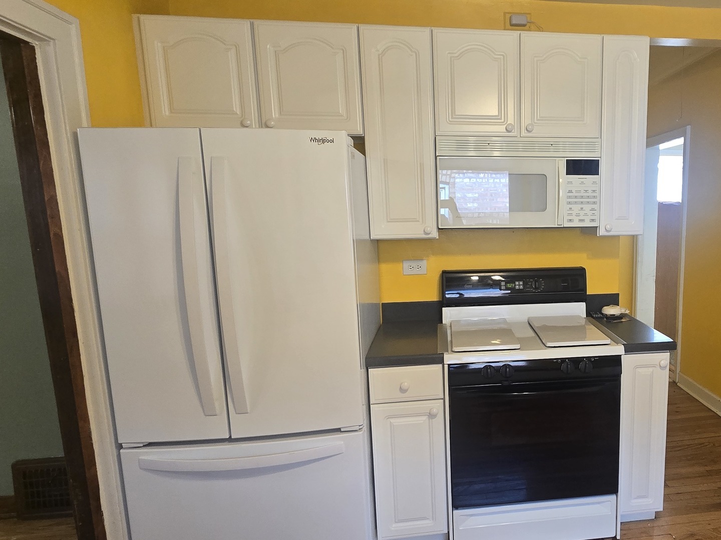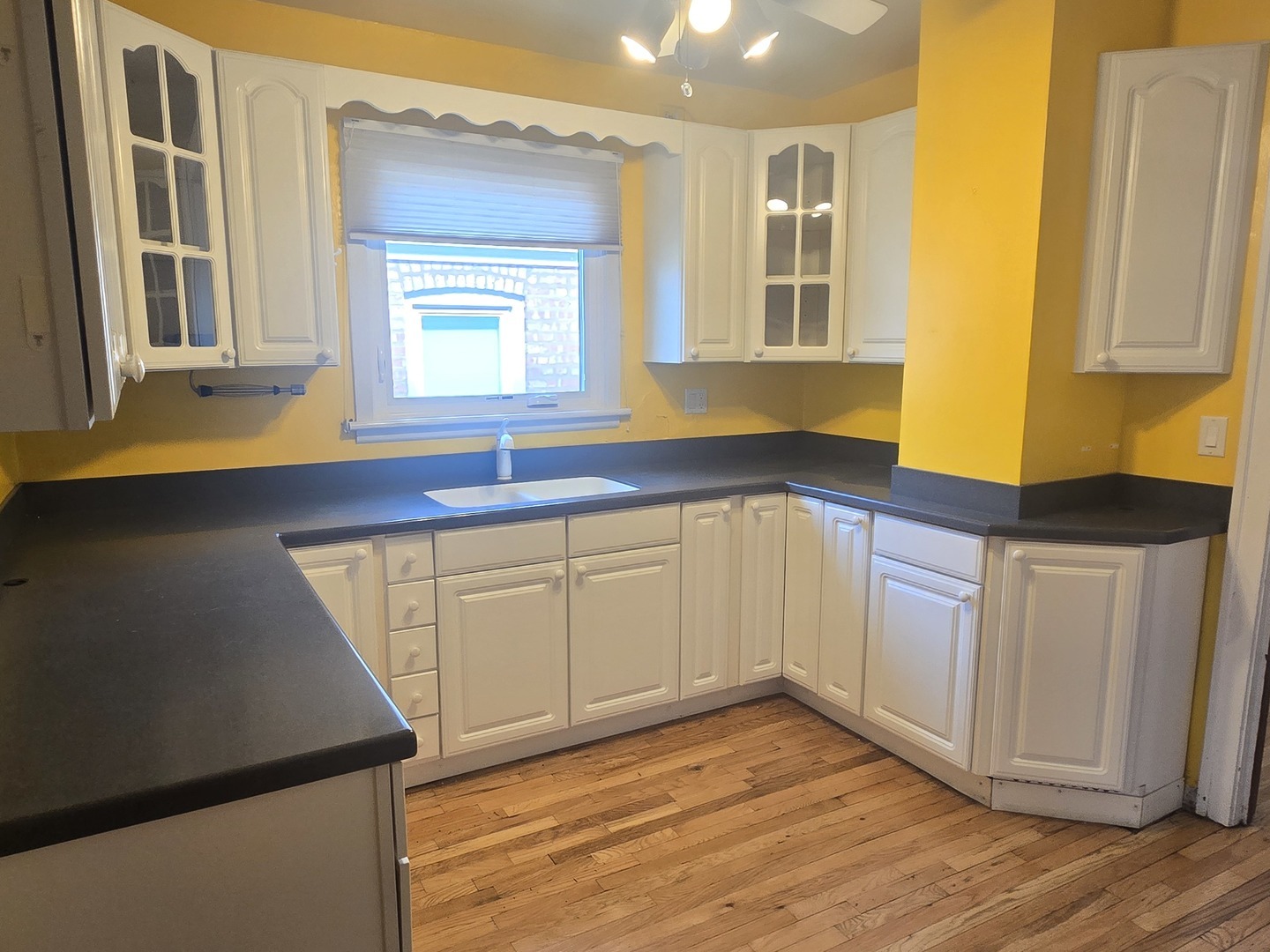 Charming three-bedroom two bath home. Kitchen with white cabinets, Corian counters with hardwood floors throughout. Two car garage with plenty of storage. Estate sale property is being sold as-is.
