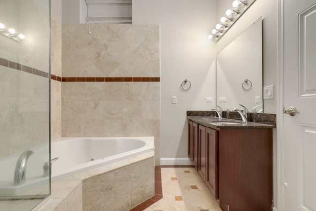 Your new 3 Bed / 2 Bath condo in Old Irving Park! This unit offers high-end floors throughout, stainless steel appliances, granite countertops with breakfast bar, 42″ cabinetry, soaring ceilings, gas fireplace, and in-unit washer & dryer. Open floor plan with private patio off living space with upgraded Trex, perfect for grilling and enjoying morning coffee! Large primary suite has walk-in closet, marble bath with double vanity, whirlpool tub, and steam shower. 2nd bathroom has jetted tub. Attached deeded garage parking spot included in the price. Building has video security system, new roof in 2017. New Floors, Refrigerator and Range 2022. New Hot Water Heater 2023, new A/C 2024. Near Blue Line stations at Irving Park or Montrose, and the shopping and dining of Old Irving with easy access to I-94 & O’Hare!