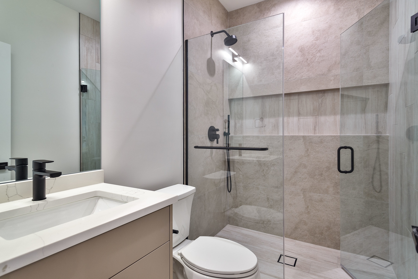 Impeccable 4 bedroom, 3.1 bath new construction single-family home in beautiful Irving Park by top Chicago developer. Spacious floor plan featuring design forward interiors. Open concept living/dining room with direct vent gas fireplace and beautiful oak hardwood flooring. Entertainer’s kitchen with modern flat panel cabinetry, Bosch appliance package, quartz countertops, island with bar seating, and pantry. Adjoining family room with exit to backyard patio. Primary suite featuring 2 WIC’s, and private bath with frameless glass shower, large vanity with dual sinks, and heated flooring. Two additional bedrooms, guest bath with dual sinks, tub, linen closet, and heated flooring, and laundry with washer/dryer and sink complete the upper level. Finished lower level with nice ceiling heights and good natural light includes a spacious recreation room with wet bar, 4th bedroom, full bath with shower, second laundry hook-up, and utilities. On trend fixtures and finishes, heated flooring, skylights, built-out closets, wiring for speakers, and more! Fully enclosed yard with security intercom. Backyard patio plus detached two-car garage. Close to restaurants, entertainment, shopping, public transportation, parks, and other conveniences.