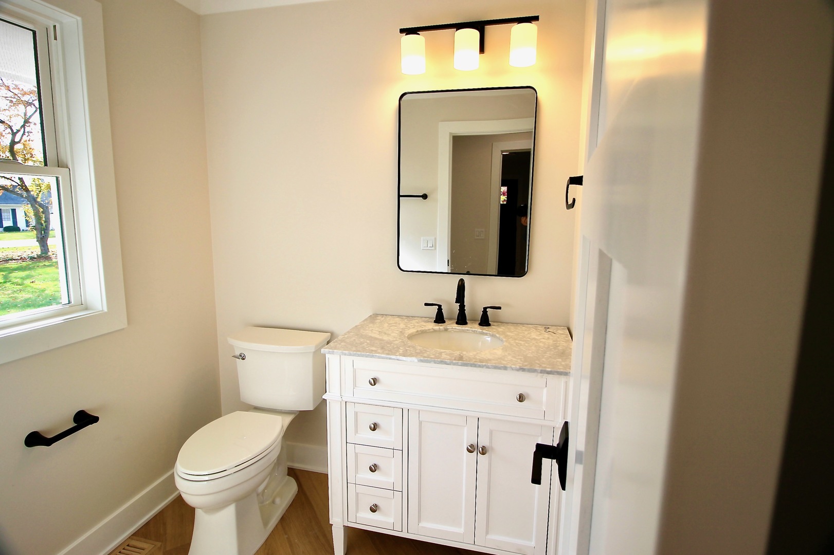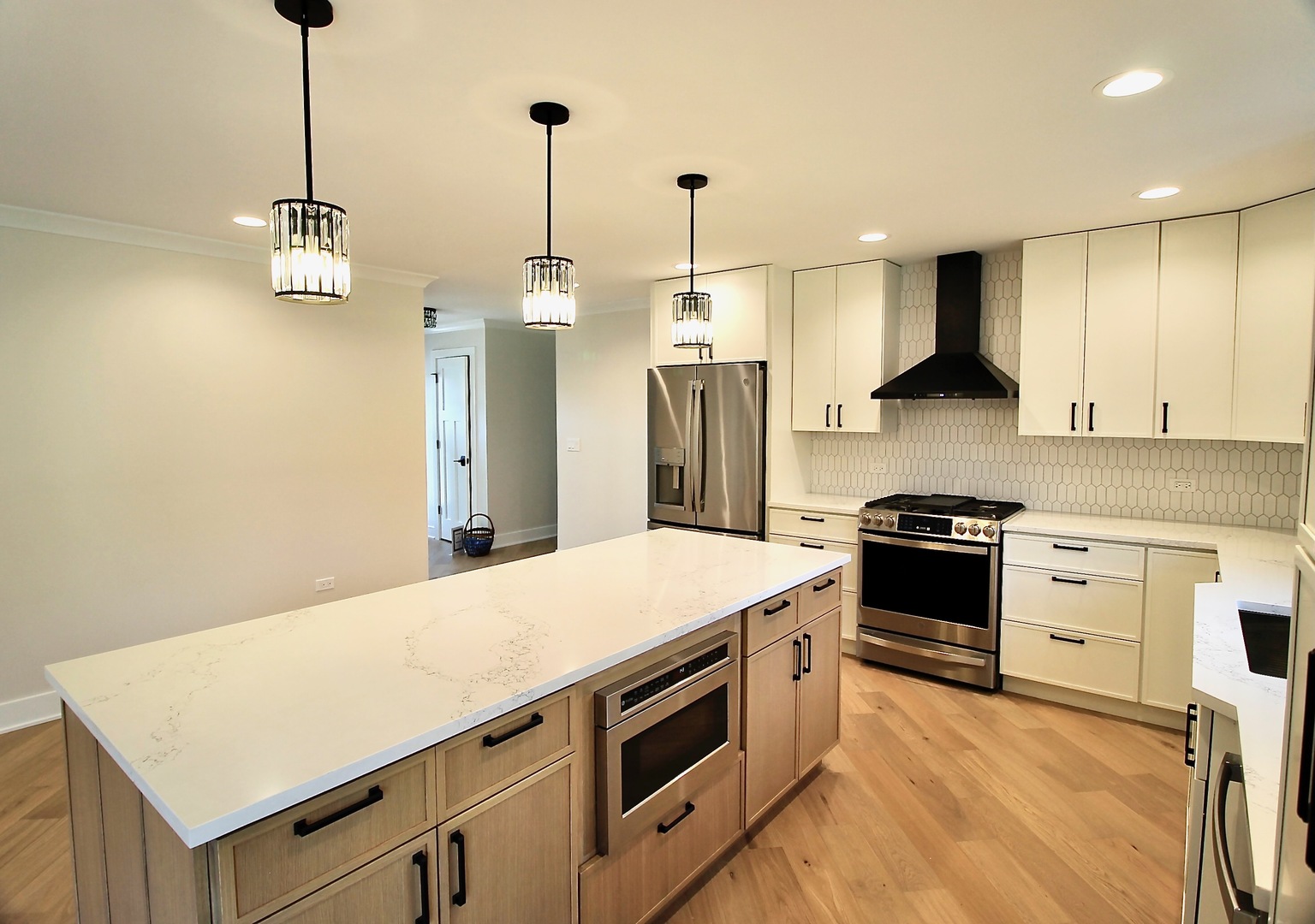 Completely remodeled/rebuilt ranch with a new open floor plan. Stripped down to the studs! New roof, Hardie siding, energy efficient windows, wood laminate flooring, solid core 3 panel doors, wide trim, 2 full bathrooms and powder room, luxurious master on-suite, kitchen cabinets with solid surface tops, new SS appliances, center island with seating and drawer microwave, walk-in pantry, lots of lighting, including undercounter lights, can lights, pendant lights over island, all new electrical including breaker panel, all new plumbing with fixtures, all new updated insulation in walls and attic. New asphalt driveway, landscaping, concrete walkway and patio, new garage door and opener. Ideal-sized bedrooms, carpeted with ceiling fans and lights. Office off the front door with double privacy doors looking into the courtyard. The basement has been fully painted with lots of storage and is ready to finish. New water softener, furnace cleaned and checked. Lots of thought was addressed to this home for today’s needs and wants.