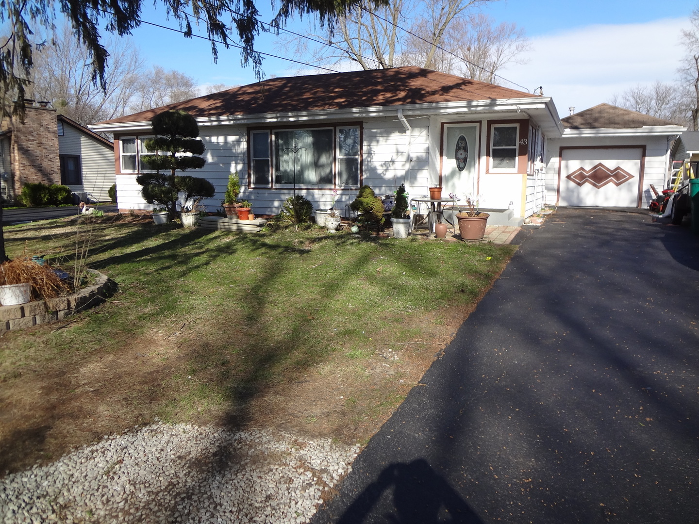 Cozy ranch-style home with basement with exterior access and a guest house, this home offers four bedrooms, and two bathrooms, (2 bedrooms, full bathroom, living room and an eat in kitchen in main floor, and 2 bedrooms, full bathroom kitchenette and family room in basement). Fox Lake, offers endless opportunities for water activities and serene lakeside relaxation year-round, enjoy leisurely strolls along the shore, endless possibilities for those seeking a renovation adventure. This home is perfect for unwinding after a long day, Enjoy the nearby playground, perfect for children to play and make new friends. Big parking area 6 cars. walk to the lake, High School, Library, and Metra. the bike trail leads to the Grant woods. Sold As Is