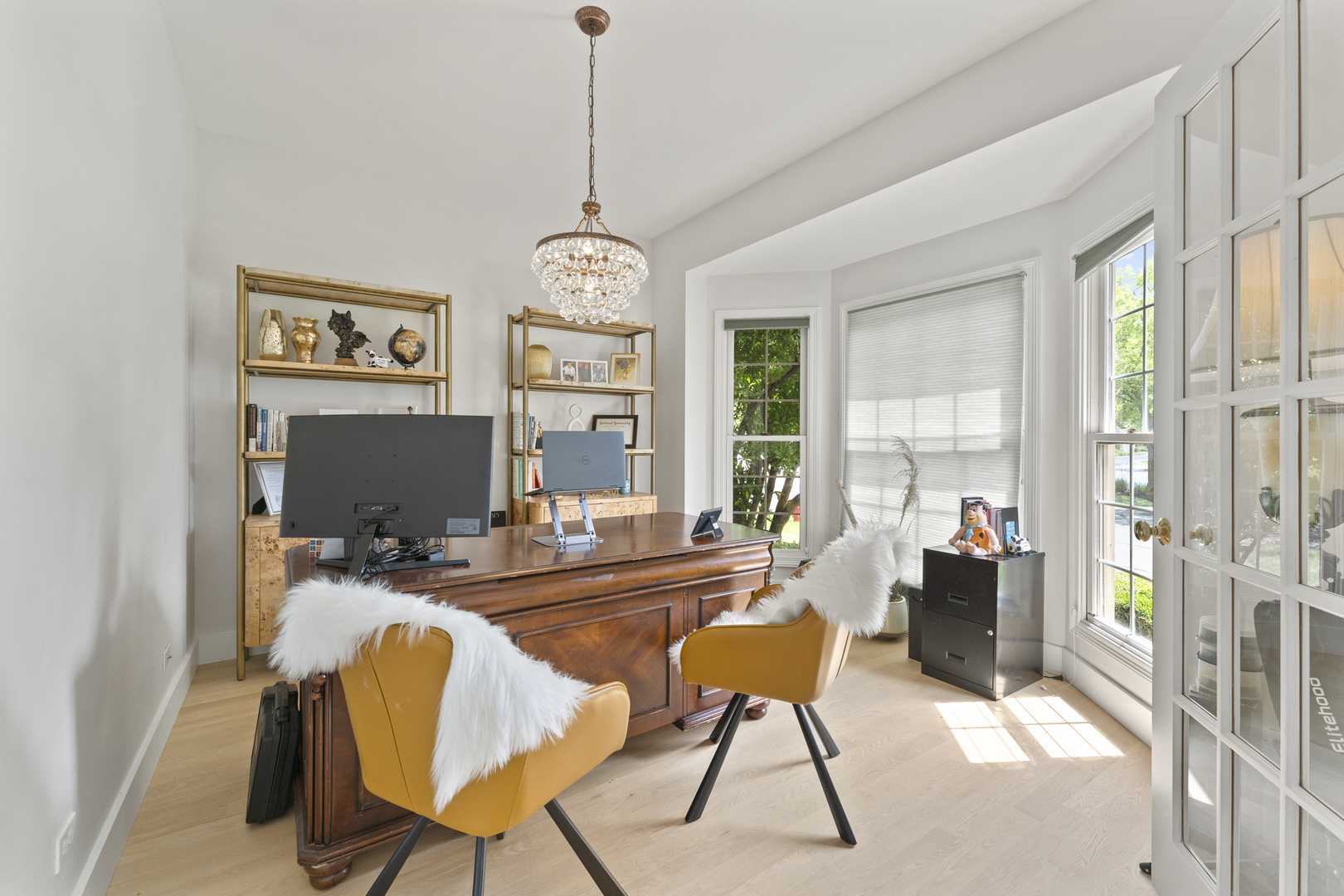 Tucked away on a quiet cul-de-sac in the esteemed Royal Fox Subdivision, this beautifully appointed residence offers a seamless blend of modern finishes, comfort, and sophistication. From its dramatic interiors to its inviting outdoor retreat, every detail of this home reflects pride of ownership and luxurious living. Step inside to find a bright, open layout anchored by a soaring 20ft two-story family room, where a stately fireplace adorned with custom fireplace mirror and a wall of windows create the perfect gathering space. The chef’s kitchen flows effortlessly into the dining area-ideal for entertaining or relaxed family nights-and is outfitted with sleek 2023 Samsung stainless steel appliances, custom fit oven and cooktop with abundant cabinetry, and generous counter space. The coveted first-floor primary suite offers a true sanctuary, featuring a spacious layout, walk-in closet, and spa-like bath with whirlpool tub and separate shower. An elegant home office, rich hardwood floors throughout the main level, and first-floor laundry add everyday convenience and style. Upstairs, you’ll find three additional bedrooms, each with its own walk-in closet, offering both function and privacy. The full deep-pour basement includes a finished full bath and awaits your creative vision-whether that’s a home theater, gym, or guest suite. Outside, your personal oasis awaits: a custom stamped concrete patio (2023), enclosed gazebo, and built-in basketball hoop, all surrounded by a generous yard designed for both relaxation and recreation. Additional highlights include: Epoxy-finished garage floor (2023) New furnace with UV light system (2022) Water softener and dechlorinator (2023) Ideally located in one of St. Charles’ most prestigious golf course communities, this home is moments from downtown shopping, dining, and top-rated schools. Luxury, lifestyle, and location-welcome to Royal Fox living at its finest.