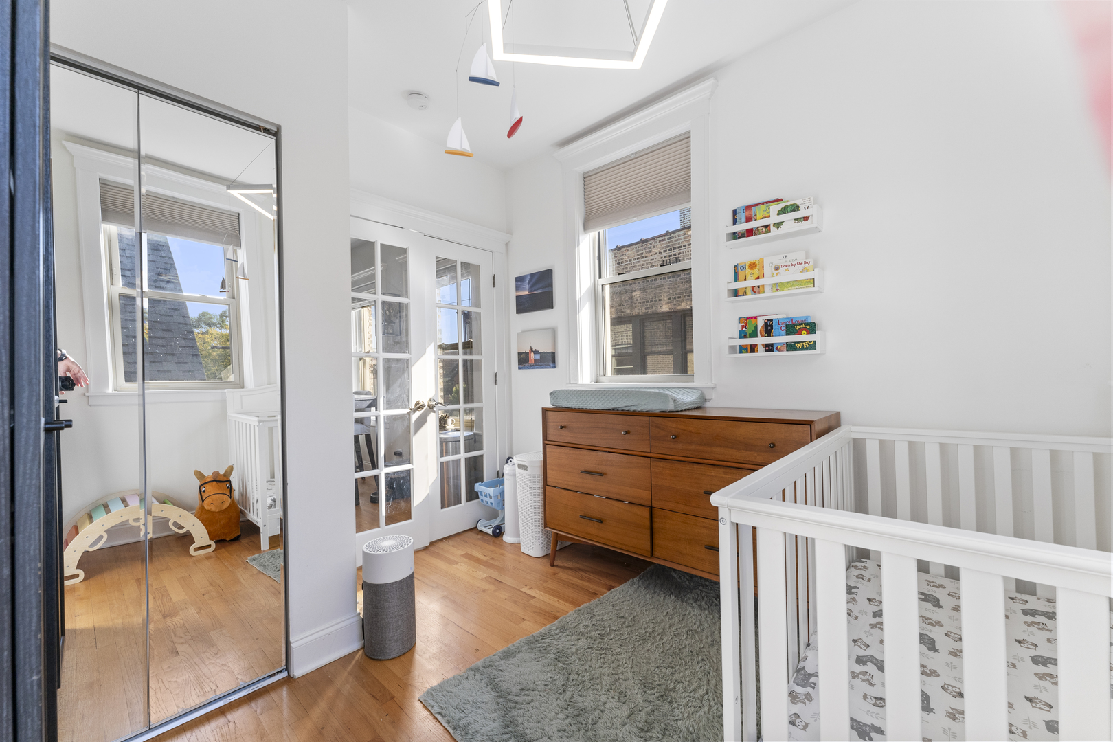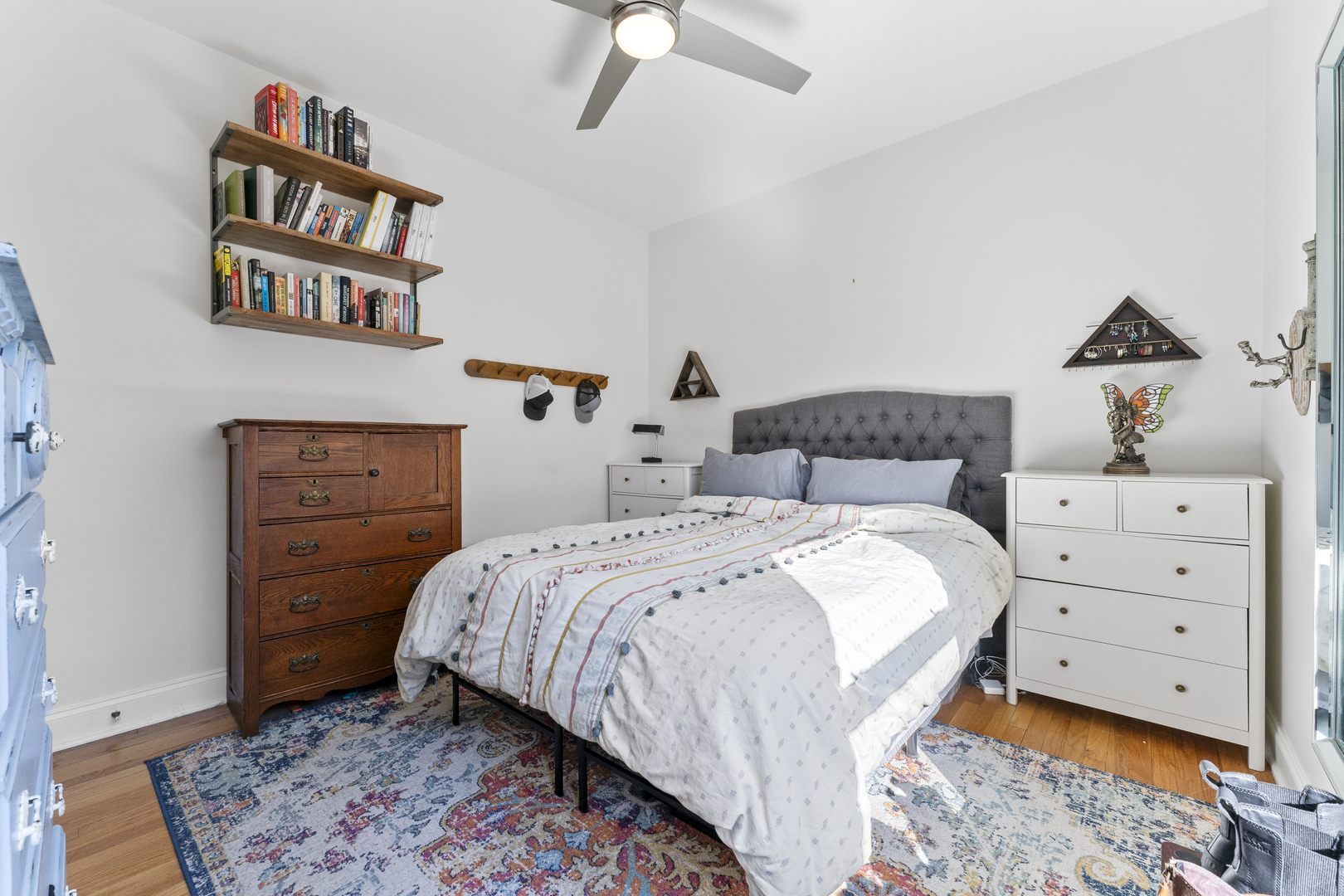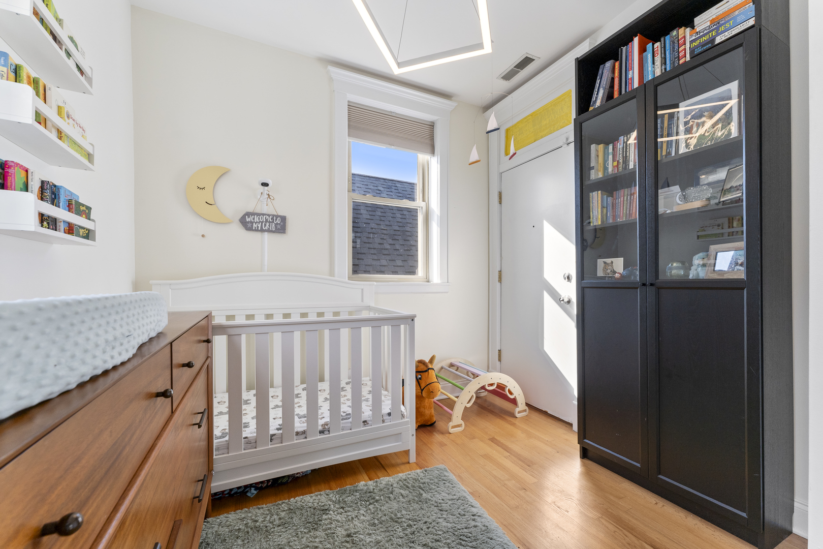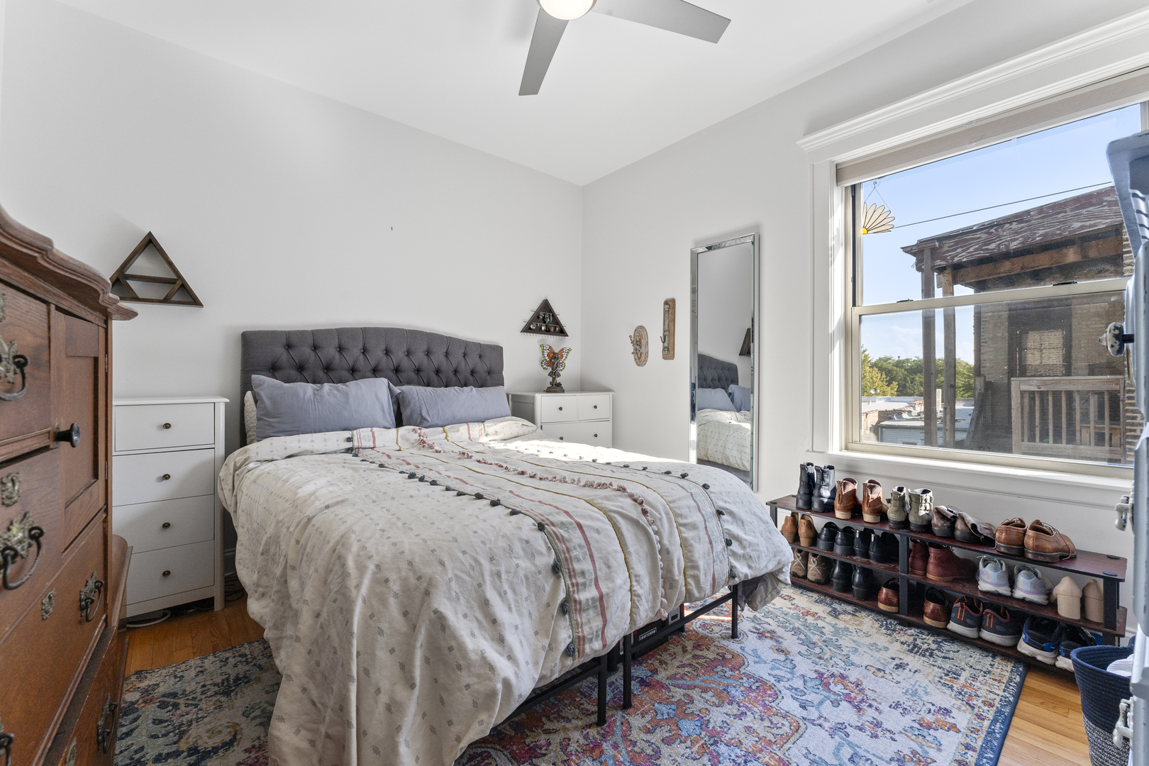 Bright and beautifully updated top-floor 2-bedroom, 1-bath condo in the heart of Ravenswood/North Center. The open-concept layout features cherry cabinetry, granite countertops, and new stainless steel appliances including a Whirlpool refrigerator (2022) and Bosch 800 Series dishwasher (2023). The spacious dining area opens into a sun-filled living room with crown molding and hardwood floors throughout. The second bedroom with French doors is perfect for a home office or guest room and opens to a deck. Enjoy in-unit laundry, a Nest smart thermostat, and a new HVAC system installed in 2023 for peace of mind. Four exposures fill the home with natural light, and the full-size basement storage unit with custom shelving provides extra space. Easy street parking and an unbeatable location close to the Brown Line, Spacca Napoli, Bien Me Sabe, Small Cheval, and Dovetail Brewery. Low HOA, pet-friendly building, and truly move-in ready.