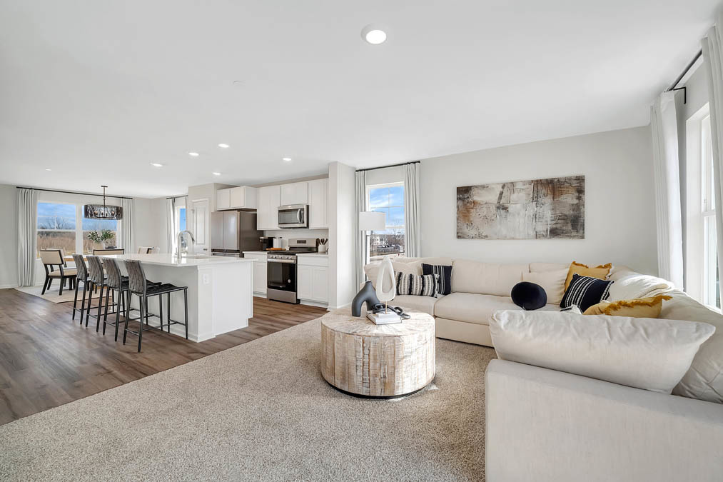 Discover yourself at 432 Lakeshore Ct. This beautiful end-unit townhome is in our Charlestowne Lakes community in St. Charles, Illinois, and will be ready for a Spring 2026 move-in. Beautiful, private views overlooking community pond. This Grant plan offers 1827 square feet of living space with 3 bedrooms, 2.5 baths, and an additional flex space. Upon entering the home, you will be greeted by the finished flex room, which would be perfect as a den, office or playroom. Walking up the stairs, you will find this home’s open concept living space. The expansive kitchen is central to both the dining and great rooms and is the perfect space to gather. The kitchen features designer soft-close cabinetry, a large island with quartz countertops, a pantry, and stainless-steel appliances. Upstairs you will find a large primary bedroom with a spacious walk-in closet and en suite bath. There is also a laundry room, a second full bath, and two additional bedrooms. Decorate with the updated Craftsman style trim and 5-panel doors. Luxury vinyl plank flooring is included in the great room, kitchen, dining area, all baths, and the laundry room. All homes at Charlestowne Lakes include fully sodded yards and maintenance-free living. Impressive innovative ERV furnace system and tankless water heater round out the amazing features this home as to offer. Charlestowne Lakes in an upscale townhome community, tucked off Route 64 and in a highly desirable location – just minutes from downtown St. Charles. All Chicago homes include our America’s Smart Home Technology featuring a smart video doorbell, smart Honeywell thermostat, smart door lock, Deako smart light switches and more. Photos are of similar home.
