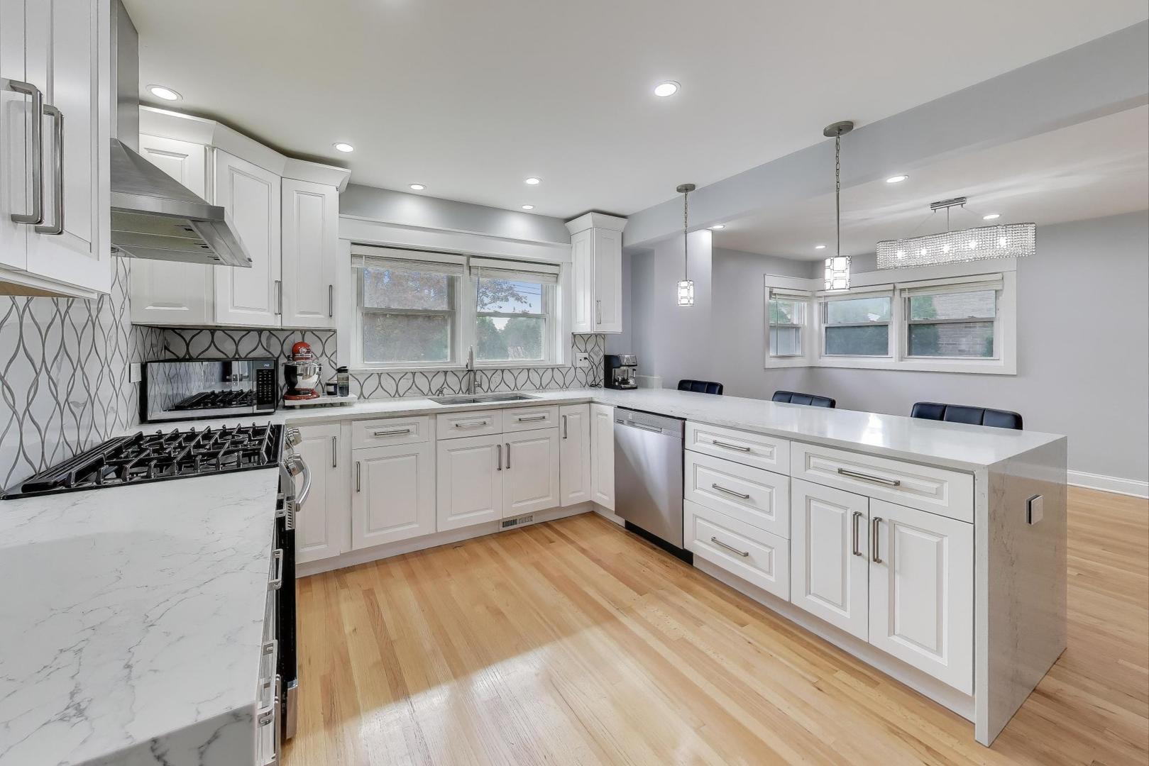 Fully renovated in 2021, this home combines modern finishes with a smart, functional layout that makes every space count. The open kitchen features quartz countertops, a contemporary tile backsplash, stainless steel appliances, and a large peninsula with seating that flows naturally into the dining area, perfect for everyday use or entertaining. Upstairs, you’ll find three comfortable bedrooms including a primary suite with a walk-in closet and private bath, plus another updated full bath that serves the two additional bedrooms. The main floor offers another bedroom and full bath, ideal for guests or a home office. The finished basement adds valuable living space with two additional rooms that can be used as offices, a gym, or guest quarters, along with a fourth updated full bath. The 2021 renovation included all updated bathrooms, modern flooring, and high-quality finishes throughout, so you can move right in without lifting a finger. Outside, enjoy the fully bricked driveway and patio, an EV charging station, and a video security system. Close to highways, shopping, restaurants, hospitals, and excellent schools, this property delivers modern comfort, versatility, and convenience in a highly sought-after Niles location. Schedule today! *Brand new, fully finished hardwood floors are under the carpet throughout the upper level.