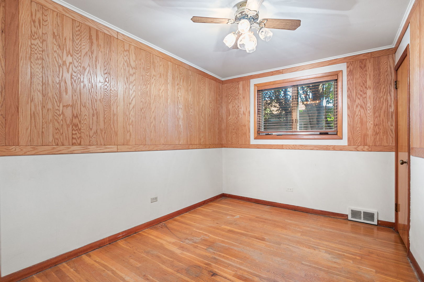 Welcome to this stunning 4-bedroom, 3-bath home nestled on a peaceful lot surrounded by mature trees. Offering abundant living space, this home is perfect for anyone who values room to spread out. As you step inside, you’re greeted by a cozy, sun-filled living room. The large eat-in kitchen features ample counter and cabinet space, along with an adjacent dining area, ideal for everyday meals or entertaining. The main level includes two generously sized bedrooms and a full bath. Upstairs, retreat to your expansive primary suite – truly a private oasis. This oversized bedroom boasts vaulted and beamed ceilings, two walk-in closets, a sitting area, and a private balcony. The luxurious en-suite bath is finished in marble and features a whirlpool soaking tub and separate shower. The second upstairs bedroom is equally spacious, with vaulted and beamed ceilings and its own private balcony. Multiple skylights on the second level flood the space with natural light. The partially finished basement offers even more living space and is ready for your finishing touches. It includes a full bath, laundry area, and plenty of room for storage, recreation, or a home office. Enjoy the outdoors in your private backyard, which feels like a secluded retreat despite being conveniently located in the city. Surrounded by ornamental and mature trees, it’s the perfect spot to relax or entertain. Additional features include a detached 1-car garage, dual HVAC systems for year-round comfort and plenty of hidden storage spaces. Unbeatable location – close to parks, grocery stores, restaurants, public transit, and more. Don’t miss your chance to make this exceptional home yours. Schedule your tour today!