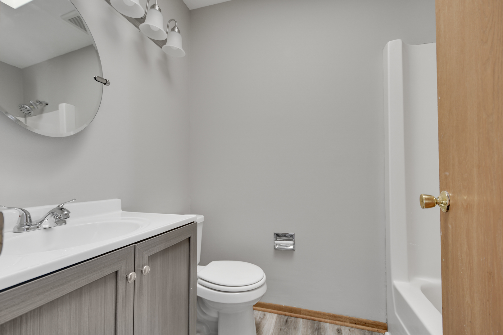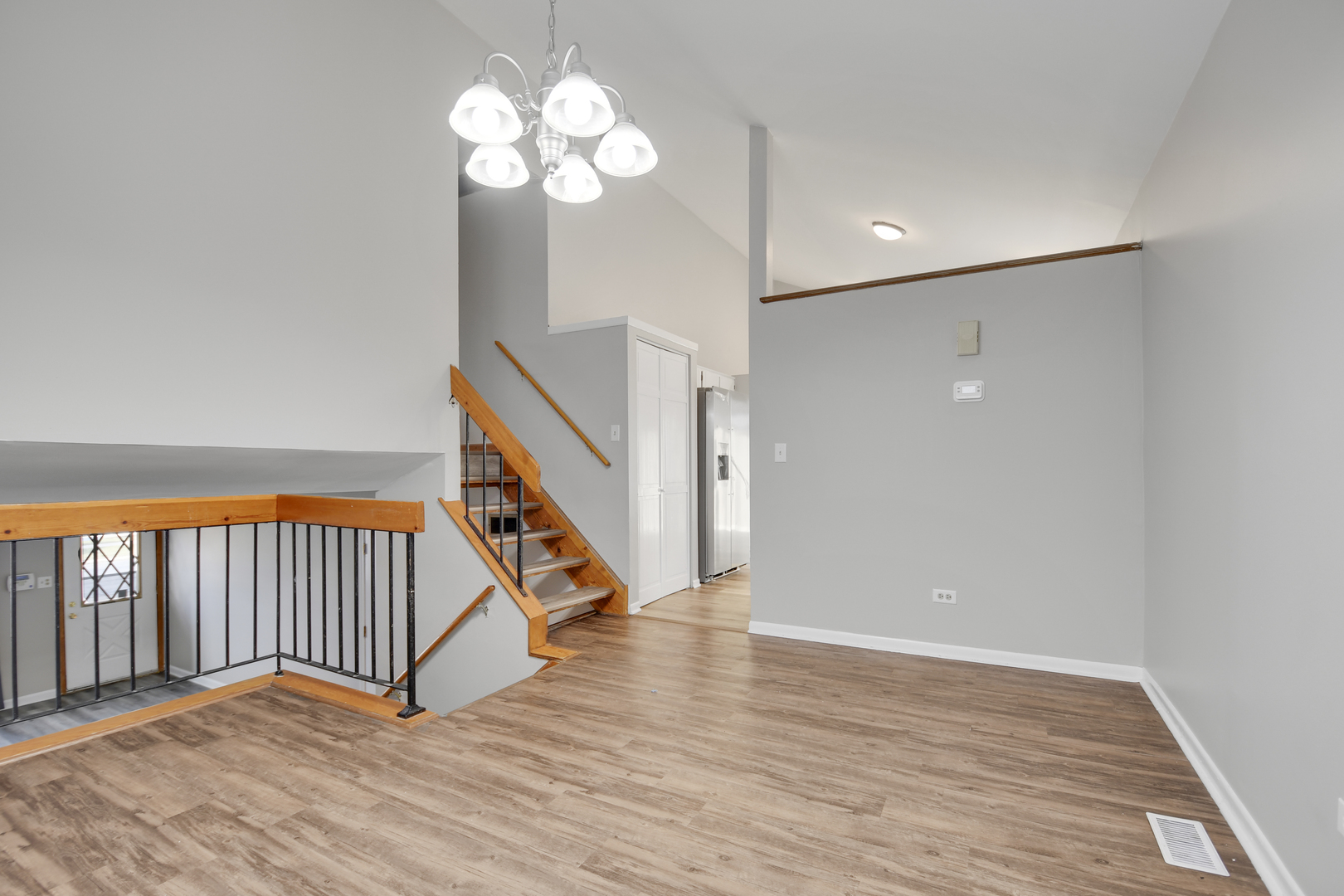 Ready, set, go! Freshly redecorated and truly move-in ready, this inviting quad-level home is a pleasure to own and enjoy. Step inside to a gracious, spacious living room highlighted by a bay window and newer ash-toned wood-laminate flooring that flows seamlessly throughout the main living areas. The formal dining room opens effortlessly into a bright, nicely refreshed vaulted kitchen featuring white cabinetry with new modern hardware, new sleek quartz countertops, a brand-new stainless steal appliance package, and a casual breakfast table area for everyday dining. The upper level offers three comfortable bedrooms and two updated bathrooms with newer vanities and fixtures, including a vaulted master bedroom with its own private ensuite bath. The lower-level family room provides a relaxing retreat with a cozy fireplace and an adjacent half bath, perfect for lounging or entertaining. Sliding doors from the kitchen lead to a large elevated wood deck that steps down to a concrete patio and a generously sized fenced backyard, ideal for outdoor enjoyment. A roof replaced approximately four years ago adds extra peace of mind. A refreshing alternative to the ordinary so schedule your private showing before it’s gone. (Please note: the current tax bill does not reflect any exemptions and would be lower if the property were owner-occupied)