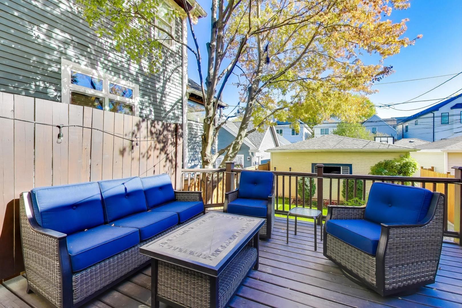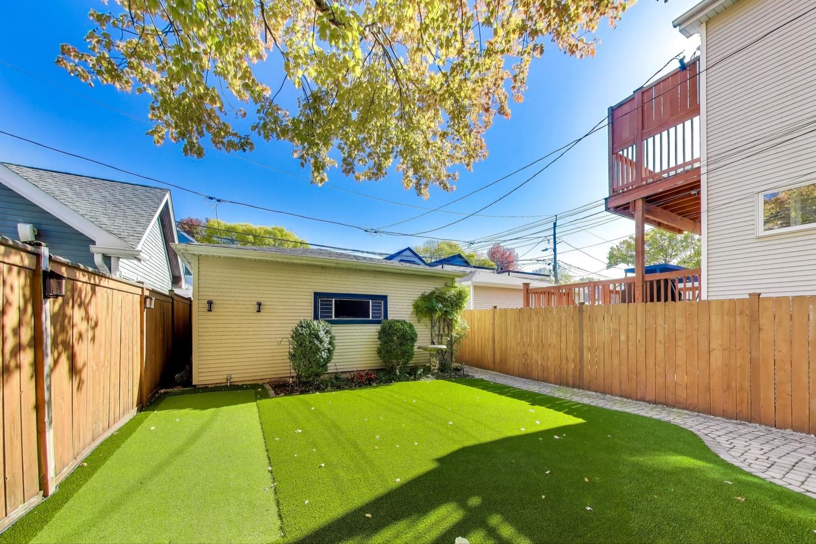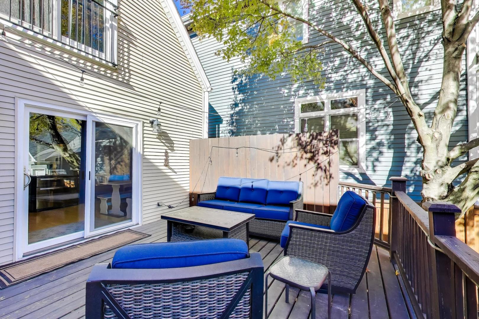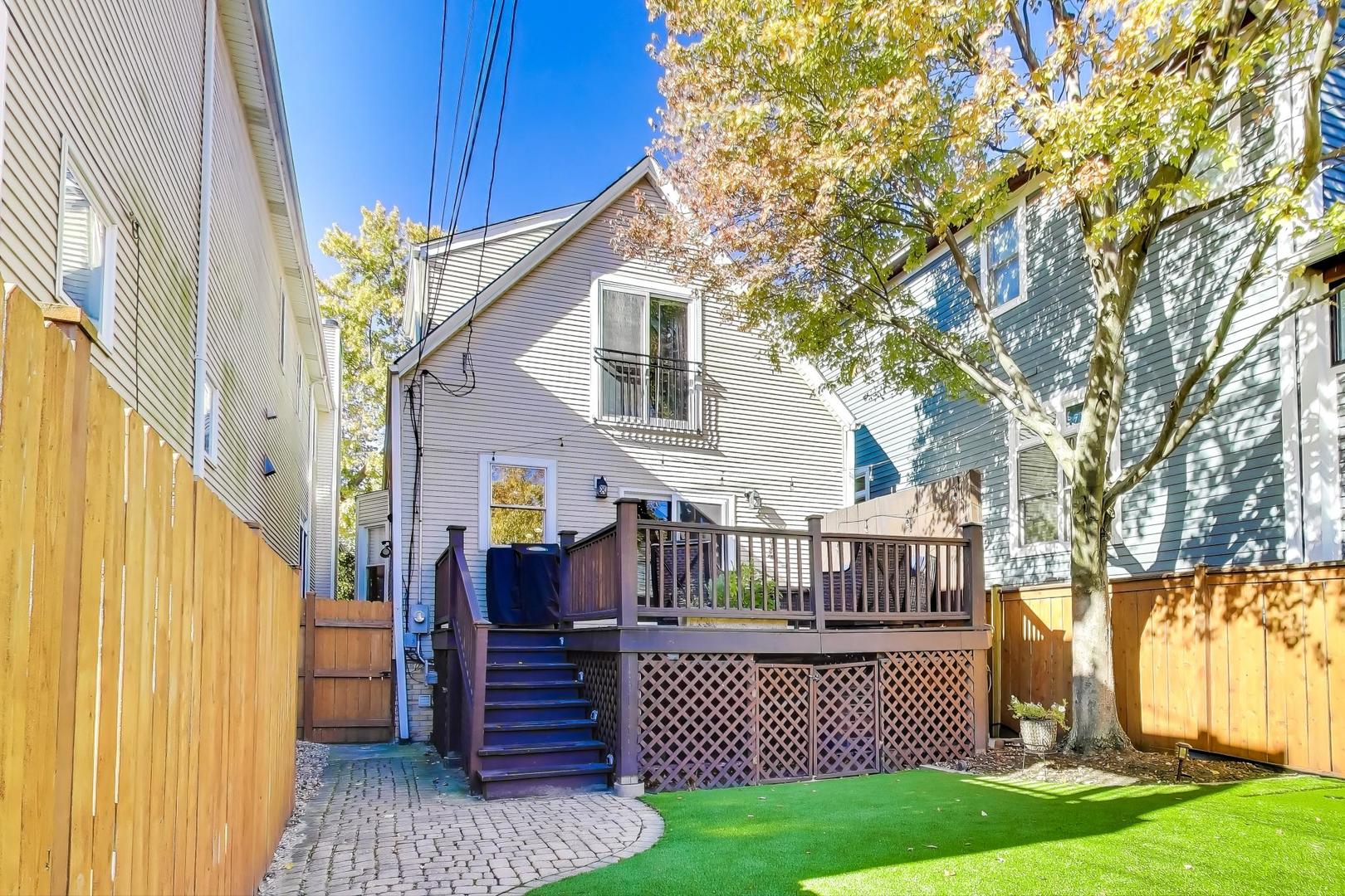 Stunning North Center home in the coveted Coonley School District! Beautifully updated 5-bedroom, 4-bathroom residence blending classic craftsmanship with modern luxury. Situated on one of the area’s most charming tree-lined blocks, this home features hardwood floors, rich natural woodwork, solid-core doors, and designer lighting throughout. The 2020 custom kitchen showcases high-end shaker cabinetry with integrated lighting, quartz countertops, a white glass tile backsplash, and premium appliances including a DCS range and Bosch dishwasher. Upstairs, vaulted ceilings highlight the spacious primary suite with Juliet balcony, skylight, and a nearly remodeled spa-like bath boasting Grohe fixtures, rain shower, jetted Neptune tub, dual sinks, and abundant natural light. The finished lower level offers a bright open layout, full laundry room, living area, bedroom, new full bathroom, and a convenient side entry. Enjoy a recently turfed backyard complete with putting green, large entertaining deck, and two-car garage. Experience the welcoming community vibe with popular neighborhood block parties. Steps to the Brown Line, Welles Park, Sulzer Library, Old Town School of Folk Music, restaurants, shops, and the Davis Theatre-this home has it all!