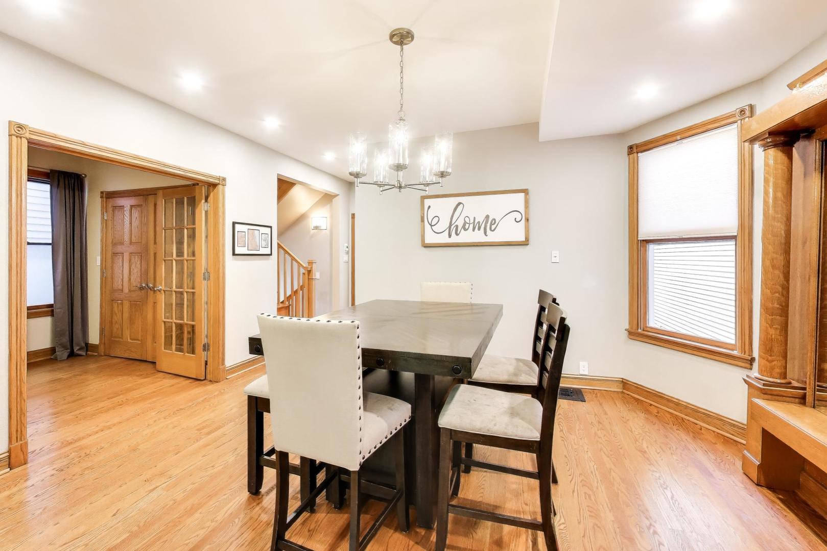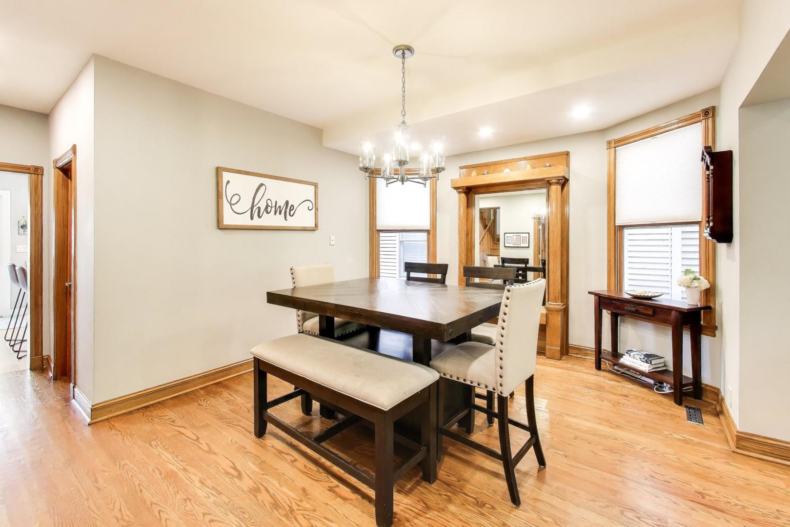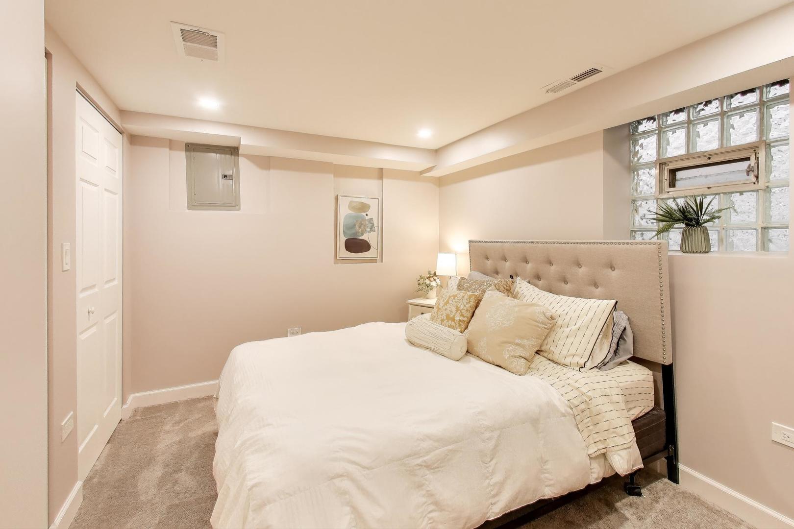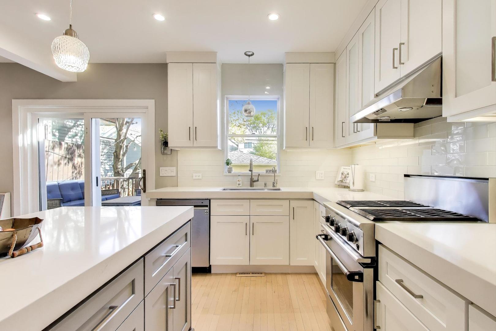 Stunning North Center home in the coveted Coonley School District! Beautifully updated 5-bedroom, 4-bathroom residence blending classic craftsmanship with modern luxury. Situated on one of the area’s most charming tree-lined blocks, this home features hardwood floors, rich natural woodwork, solid-core doors, and designer lighting throughout. The 2020 custom kitchen showcases high-end shaker cabinetry with integrated lighting, quartz countertops, a white glass tile backsplash, and premium appliances including a DCS range and Bosch dishwasher. Upstairs, vaulted ceilings highlight the spacious primary suite with Juliet balcony, skylight, and a nearly remodeled spa-like bath boasting Grohe fixtures, rain shower, jetted Neptune tub, dual sinks, and abundant natural light. The finished lower level offers a bright open layout, full laundry room, living area, bedroom, new full bathroom, and a convenient side entry. Enjoy a recently turfed backyard complete with putting green, large entertaining deck, and two-car garage. Experience the welcoming community vibe with popular neighborhood block parties. Steps to the Brown Line, Welles Park, Sulzer Library, Old Town School of Folk Music, restaurants, shops, and the Davis Theatre-this home has it all!