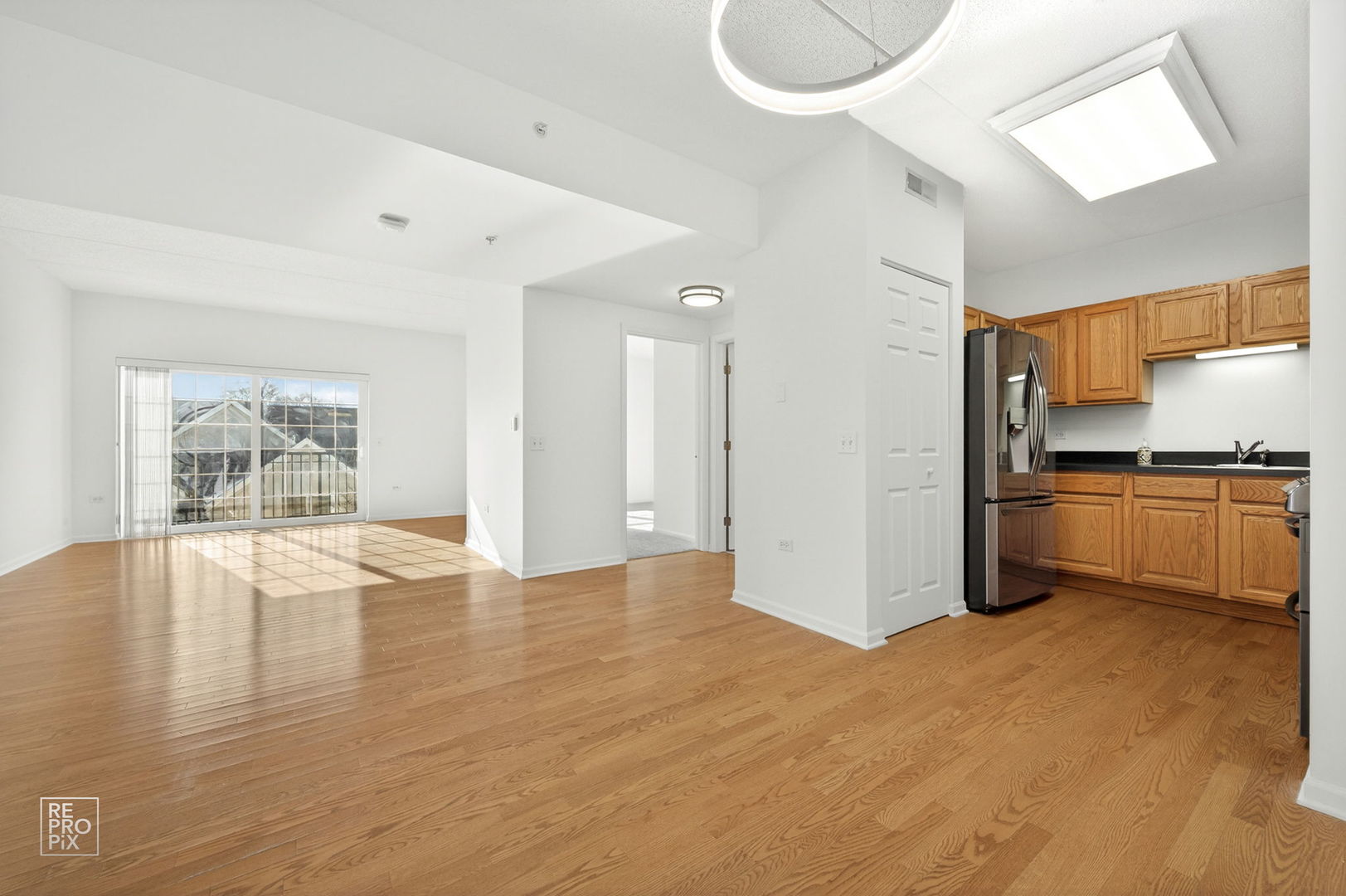 434 McDaniels Circle offers comfortable, low-maintenance living in the heart of Clarendon Hills. This well-maintained condo features 2 bedrooms, 2 full baths, and 5 total rooms in a modern building. Hardwood floors enhance the living and dining areas, while bedrooms feature plush carpeting. The home has been freshly painted and includes newer windows for improved efficiency and natural light. The kitchen offers newer stainless steel appliances, and a private balcony has southern views over single family homes. Additional features include in-unit laundry, elevator access, garage parking with additional on-site options, and a security system. Conveniently located near shopping, dining, and transportation.