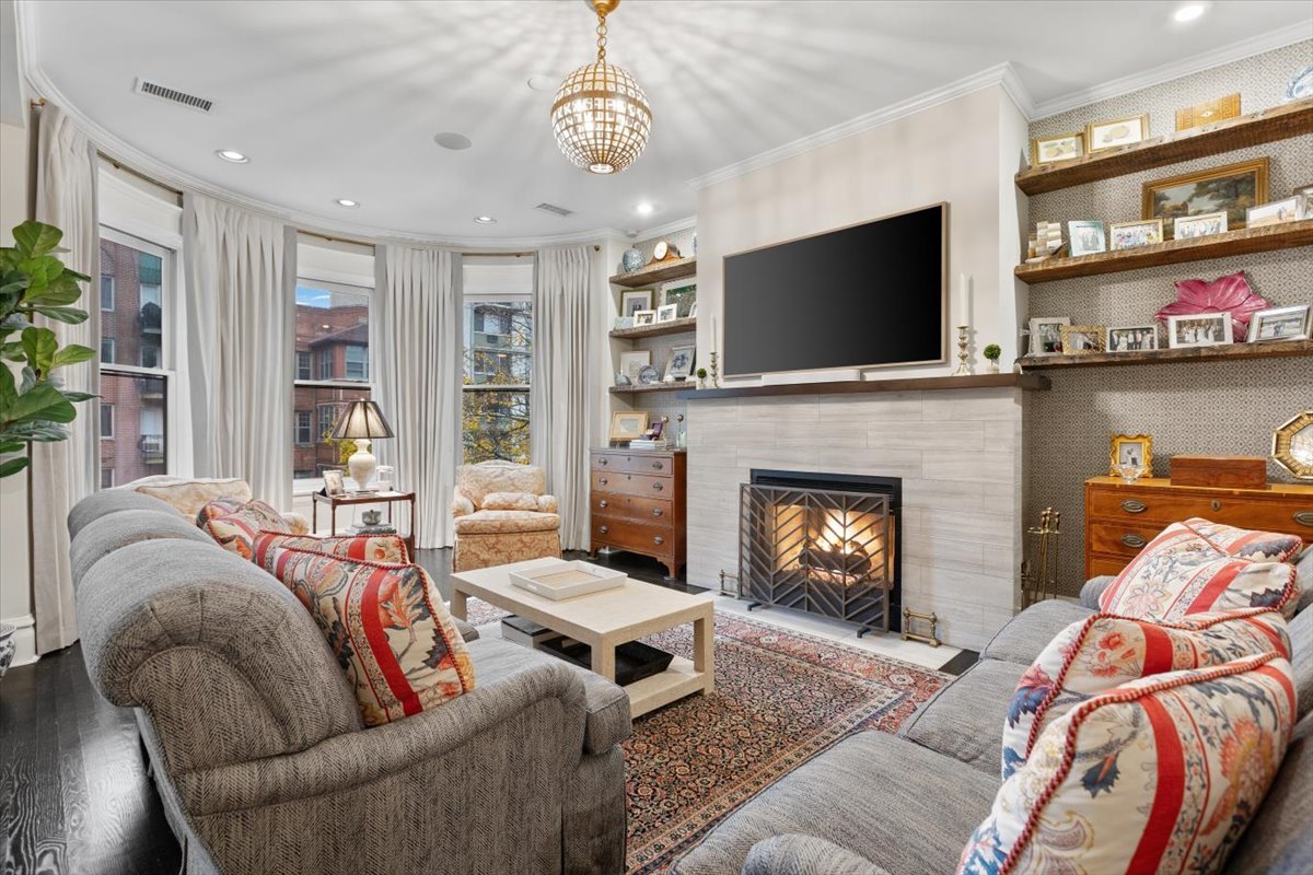 Welcome to 434 W Oakdale Ave #2 a beautifully updated 2,300+ sq ft, 4 bed / 3 bath full-floor home that blends classic Chicago charm with modern comfort in the heart of East Lakeview. The sun-filled, south-facing living room features tall ceilings, a large bay window, custom built-ins, and a gas fireplace with a marble surround, an ideal spot for slow weekend mornings or hosting friends. The separate dining room with coffered ceilings offers plenty of room for dinner parties, holidays, or a work-from-home setup. The updated kitchen blends style and function with Caesarstone countertops, stainless-steel appliances, abundant cabinet storage, and a layout made for cooking together or entertaining. Four generously sized bedrooms provide flexible options for guest space, two home offices, relaxing or working out. The primary suite is bright and private with a large walk-through closet and an en-suite bath featuring a soaking tub, separate shower, double vanity, and private water closet. A second bedroom with an en-suite bath is perfect for visitors, while the third and fourth bedrooms offer versatility and great natural light; the fourth bed/office opens to a charming front balcony. A separate bar area with two beverage fridges leads to a cozy, sunlit back deck. Additional conveniences include three full baths, in-unit laundry, hardwood floors throughout, additional storage, covered parking (off a private driveway, not alley) and a spacious mudroom with radiant floors creating the perfect transition space for daily life. Set on a quiet, tree-lined street just steps from the Lakefront Trail, Belmont Harbor, Broadway cafes, shops, and transit, this second-floor condo lives like a single-family home with warm, inviting spaces designed for everyday ease and elevated living.