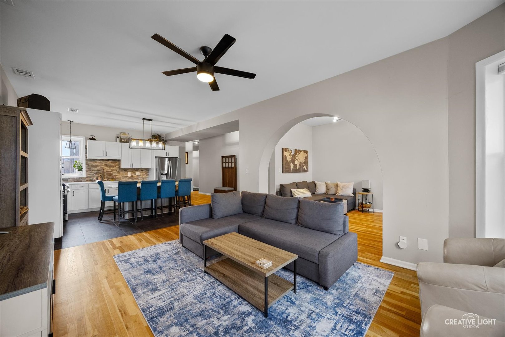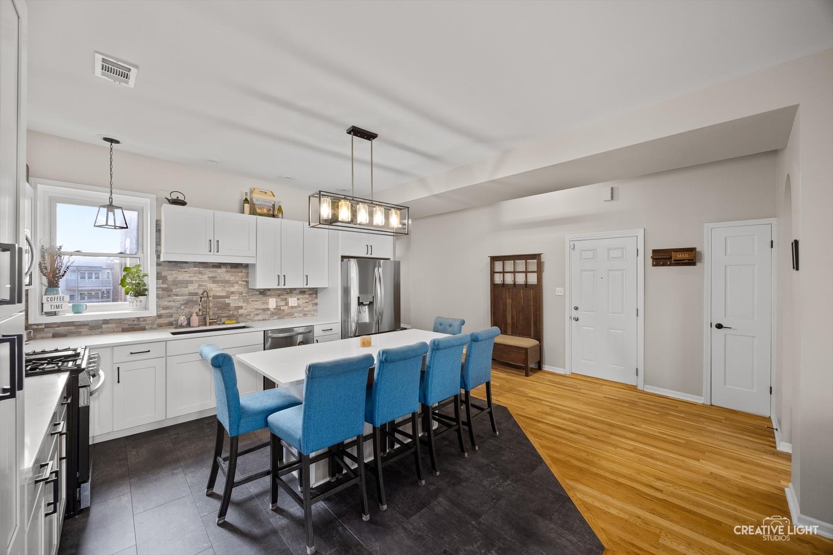 This incredible 3rd Floor Penthouse Condo has been lovingly and tastefully renovated through out! Prepared to be WOW’d by this 2 (possible 3) bedroom 2 bath home!! Featuring a great open floor plan you will be impressed with the complete attention to every detail! The kitchen opens to the spacious family room providing just an incredible great space for entertaining! The spacious kitchen has plenty of custom cabinetry and counter space. The oversized island comfortably seats six and adds even more storage and counter space. All appliances included. Adjacent to the family room there is a convertible room with plenty of light beaming through the windows and arched doorways. Making it a perfect workspace/office or possible 3rd bedroom. The primary bedroom has its own private bath, soaring ceilings and plenty of closet place. The second bedroom also has plenty of closet space and wonderful windows providing great natural light. The laundry/utility room provides convenience and even more storage space! For your piece of mind the HVAC system is 2022, hot water heater 2023. Adding to the wonderful charm of this fine home is the large rear deck! Enjoy those last lazy days of summer enjoying the fresh air and beautiful views with this additional living space (the deck is only 2 years old!). There is additional ample secure storage in the lower level of the building. Plus there is gated parking! All this and much more located with easy access to Jean-Baptiste Pointe DuSable Lake Shore Drive and incredibly close proximity to a great variety of grocery stores, shops and dining options!