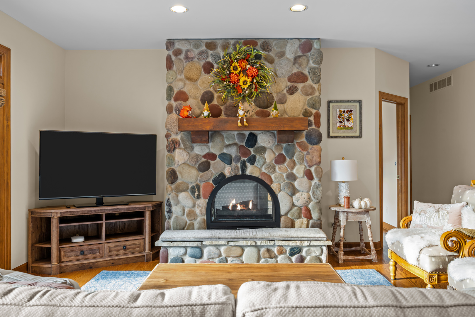 Welcome to your peaceful sanctuary nestled on nearly 1.5 acres of beautifully landscaped grounds. This 4-bedroom, 3.5-bath ranch home, built in 2002, offers 3,200 sq ft of thoughtfully designed living space. Key Features Stunning Open Layout: An open-concept main floor with 9′ ceilings and refinished hardwood floors creates an inviting flow from room to room. Gourmet Kitchen: A highlight of the home – a custom 5’x8′ island with an African Bubinga wood top, complete with built-in wine rack and microwave drawer. High-end appliances include a Wolf range with pot filler, Sub-Zero fridge, Miele dishwasher, and Kohler farmhouse sink. Elegant Family Room: A spacious gathering area with a see-through fireplace and French doors leading to the deck, allowing for seamless indoor-outdoor living. Serene Screened Porch: Clear-Vue screened porch with a cedar vaulted ceiling, offering tranquil views of the lush yard and mature trees. Luxurious Master Suite: Relax by the modern gas fireplace, then unwind in your spa-inspired bath with a slipper tub, heated tile floors, and exquisite tile work. Heated Floors: The master bath and additional full bath on the main level have radiant heated floors for comfort and luxury. Finished Lower Level: Includes a recreation room, an extra bedroom, a full bath, abundant storage, and walk-up access to the 21/2-car garage with epoxy flooring. Functional Spaces: A large den/library with custom shelving, first-floor laundry with Samsung washer & dryer, custom cabinetry, and quartz countertops. Outdoor & Lot Highlights Expansive 1.46-Acre Lot: Mature trees, serene landscaping, and a bridge over Blackberry Creek create a peaceful, private setting. Gardener’s Paradise: Three custom raised planting beds and a garden shed for your green-thumb projects. Deck & Patio: Multiple outdoor entertaining areas including a large deck and a side patio. Wildlife & Water: Wooded lot with creek frontage and water views, perfect for nature lovers. Pet-Friendly: Invisible underground fencing for your furry friends. Mechanical & Upgrades: Recently renovated (within the last ~5 years) – including newer mechanical systems, upgraded roof, modern lighting, and Hunter Douglas window treatments. Utilities: Private well water, private septic system, water softener owned, radon mitigation, sump pump, CO detectors. Located in Kaneland Community Unit School District 302: Quiet, secluded feel yet easy access to major roads – ideal for both commuting and relaxing. This is more than a house – it’s a tranquil retreat. With high-end finishes, thoughtful renovations, and lush natural surroundings, 43W493 Thornapple Tree Rd is tailor-made for those who value both luxury and peace. Whether you’re entertaining indoors, relaxing on the screened porch, or tending your garden, this property offers a rare blend of elegance and serenity.