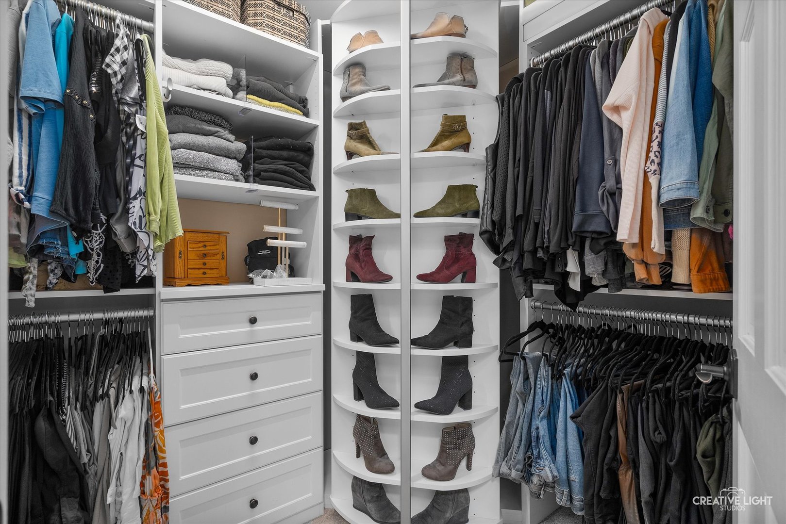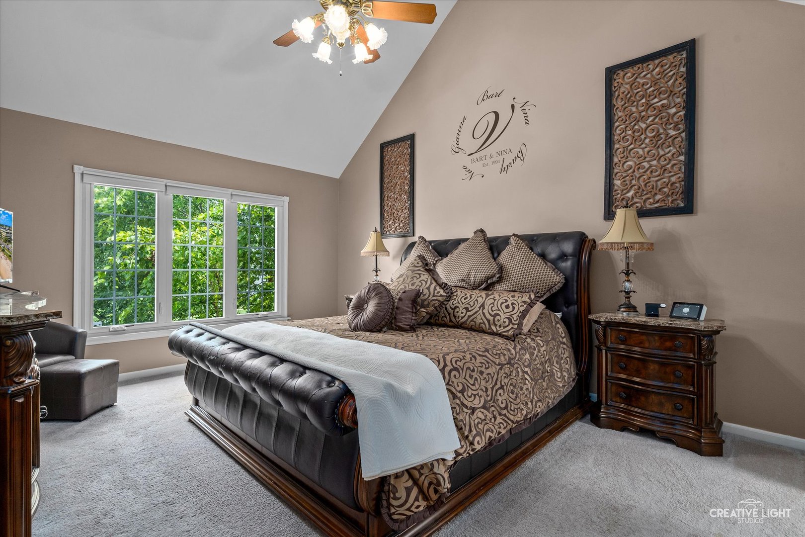 Prestigious River Run Half acre+ corner lot! This elegant 3700+ SF custom built home by Kings Court Builders blends refined luxury with thoughtful updates throughout. Featuring 4 bedrooms, 4.5 baths and a fully finished basement with newer carpeting, this home offers space, sophistication and timeless comfort. Step inside the grand two-story foyer to find stunning hardwood floors and a beautiful staircase with wrought iron spindles. The formal living and dining rooms offer custom white wood work with crown molding and tray ceiling. The 1st floor office has french doors, crown molding and built ins. The beautiful large kitchen with granite counter tops, SS appliances, large island, separate coffee bar and wet bar make this an entertainers dream. The Fanimotion paddle fan and 2 story brick gas log fireplace add to the grandeur of the family room. This central gathering place offers an impressive vaulted ceiling with 2 skylights, amazing views of the beautiful backyard and a rear staircase with wrought iron spindles that mirror the foyer staircase. The 1st floor also has an updated mud room with board & batten, coat closet, separate laundry and updated powder room that has space that can be converted to full bath by adding shower. Stunning cathedral master bedroom with adjacent cathedral master bath with skylight, double sink, soaking tub and walk-in closet with custom Closet Works organizers. Two of the Three additional bedrooms have cathedral ceilings, one w/adjacent full bath and large loft overlooking Fam Rm perfect for an in-law set up. The third 2nd floor bath has double sinks and a compartmentalized toilet and shower room. An additional 1,300+ sq ft of living space in the finished basement w/full bath, wet bar + mini fridge, theater area,rec/game room and unfinished room for storage. The 3 car garage has deep 3rd bay! Step into the serene beautifully landscaped back yard with new stamped concrete patio (2023). Dual zone A/C (new 2021 & 2022), sprinkling system, New Sump Pump Battery Backup (2019), New Roof (2020), New Gutters (2020), New Skylights (2020), New Pella Energy Efficient Maintenance Free Windows (2021), New Pella Patio Door (2021), Two New Furnaces (2022), Two New Hot Water Tanks (2023), New Stamped Concrete Front Walkway and Stoop (2023) Home comes with Equity Membership to River Run Club: includes heated indoor/outdoor pools, tennis and pickle ball courts, state of the art gym, sauna and steam room. Award winning IPSD 204.