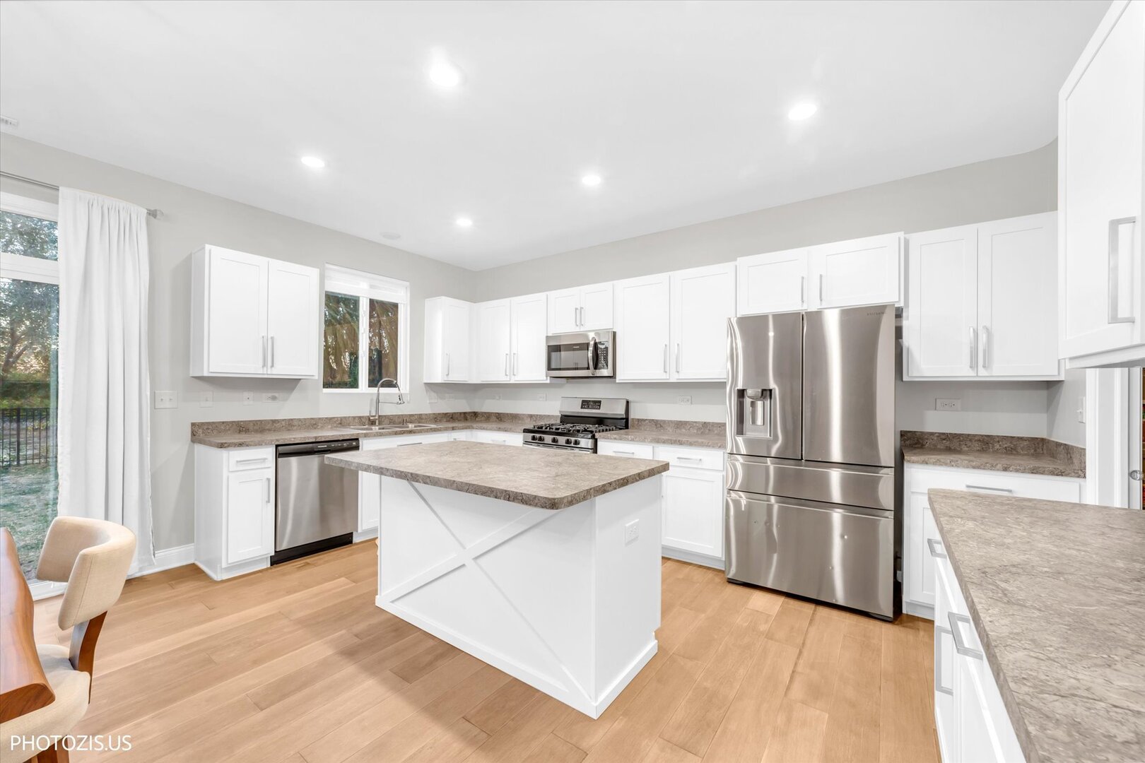 Welcome to this beautifully updated home in highly sought-after Renwick Place, offering an exceptional blend of comfort, style, and modern upgrades. Located within the prestigious Plainfield North High School District, this property provides convenience, value, and an inviting lifestyle. This stunning residence features 3 bedrooms, 2.5 baths, a spacious second-floor loft, and an extended 2.5-car garage-perfect for storage, hobbies, or additional workspace. Recent improvements include fresh interior painting throughout and a brand-new driveway, adding curb appeal and move-in readiness. Step inside to thoughtfully designed living spaces, including 9′ ceilings on the main level, an elegant electric fireplace, and an open-concept kitchen equipped with 42″ cabinetry, a center island, and a large walk-in pantry-ideal for everyday living and entertaining. Upstairs, the primary suite offers a true retreat with a deluxe master bathroom, walk-in shower, and generous walk-in closets. Two additional bedrooms provide comfortable accommodations for family or guests. The versatile second-floor loft can easily be converted into a 4th bedroom, home office, or media space. A conveniently located second-floor laundry room adds to the home’s functionality. Major investment upgrades include a Blue Raven Solar System installed in 2022 (valued at $33K), resulting in an impressive $16 monthly electric bill, along with two EV charging outlets in the garage-perfect for eco-conscious homeowners. Water softener installed in 2023. Enjoy a fully fenced backyard overlooking a peaceful pond, where you can unwind, watch breathtaking sunsets, or even enjoy a bit of fishing. The outdoors feels like an extension of your living space. Located just minutes from the Lake Renwick Preserve Nature & Trails, I-55 access, shopping, and conveniences-this home offers the perfect combination of serenity and accessibility. A truly exceptional property you won’t want to miss.