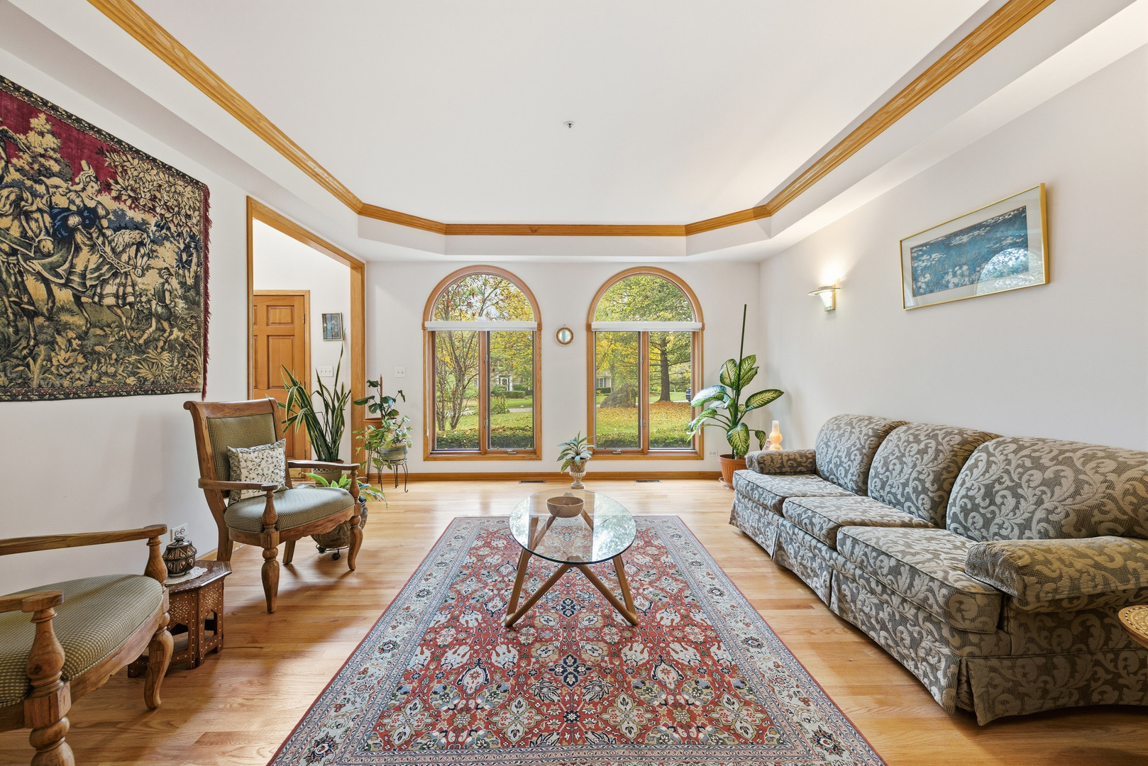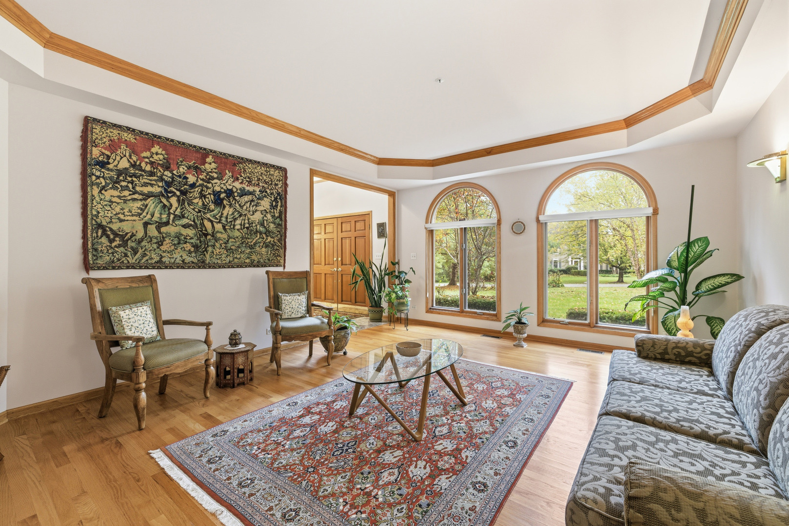 Custom built, bright, 2-storey brick home on 1.5+ acres, in coveted Stonehaven subdivision of Long Grove. Front yard has mature trees and house backs up to beautiful views of conservancy land with a mixture of trees, prairie, wetlands. 4 good sized bedrooms, 3 updated FULL bathrooms (one on main level), 9 ft ceilings thru out, valuted ceiling in Living room and tray ceilings in 3 bedrooms, 3-car side load garage. New hardwood floors for entire second level and refinished hardwood floors in kitchen, family room, dining room in Sept. 2025. Impressive double story foyer with oversized arched window. Living room and formal dining room on either side of the foyer have tray ceilings with crown molding. French doors from living room lead to the office / study, which overlooks the conservancy. House has large, beautiful, arch top windows on the first floor. Kitchen has 42″ cabinetry, island, granite counter tops and stainless steel appliances. Breakfast / eat-in dining has sliding doors that open to the deck. Double story Family room is bright and cheerful. Has multiple windows overlooking the backyard/conservancy and a second set of sliding doors to the deck. Features a floor-to-ceiling brick fire place, 2-brand new picture windows (Oct 2025) flanking the fireplace and two new (Sept. 2025) skylights; wet bar with shelving and cabinets. Main floor office / study adjoins the family room and overlooks the conservancy area. Main-level laundry room has a cedar coat closet, cabinets, counter space, utility tub and a large window to the treed front yard. Upstairs primary bedroom overlooks the conservancy, has new hardwood floor, tiled bathroom with a jetted tub, separate shower (April 2025), 2 separate new vanity countertops with sinks, a walk-in closet, new skylight and a window overlooking the treed front yard and a pond across the street. Three additional, generous sized bedrooms share an updated hall bath. Unfinished full basement has a lot of potential for additional living space with no property tax increase – 9 ft ceiling, brick fireplace, roughed-in plumbing. Deck offers total privacy to enjoy mature trees and a connection to nature. New Brava roof (Sept. 2025) with 50 year transferable warranty. Exterior recently painted. Subdivision is on 80+ acres, with 29 homes single entry/exit (no thru traffic), 2 nature trails, 2 lakes and a creek. Coveniently located off of Rt. 22 & Rt. 83, less than 10 minutes to Metra station, Stevenson high school, Vernon Library, I-94 exit and Rt 53. Close to Sunset foods and Deer Park shopping center. Award winning school districts – 96 (Country Meadows Elem., Woodlawn Middle) and 125 (Adlai E Stevenson High School)