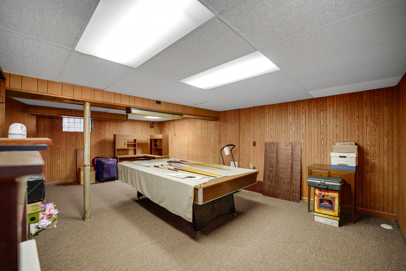 Welcome home to this meticulously cared-for raised ranch featuring 3 bedrooms and 1.5 beautifully remodeled baths (last ~5 yrs). Hardwood floors under the carpet. Living room highlights an electric fireplace (stays) for cozy evenings. Enjoy a 2.5-car brick garage (gas heated; currently off) and a partially finished carpeted basement with a bar + gaming area-pool table stays-plus a family room! Major peace of mind: Perma-Seal waterproofing (2010) with sump pump + battery backup and a home air purifier; per seller, no seepage since. Big-ticket updates include house roof (2019), garage roof (2010), gutters/soffits (2010) with Leaf Guards, A/C ~5 yrs, water heater ~2 yrs, electrical-100 amps, and kitchen dishwasher + built-in oven (2016). All that’s left to do is move in and make it yours! (Dates per seller.)