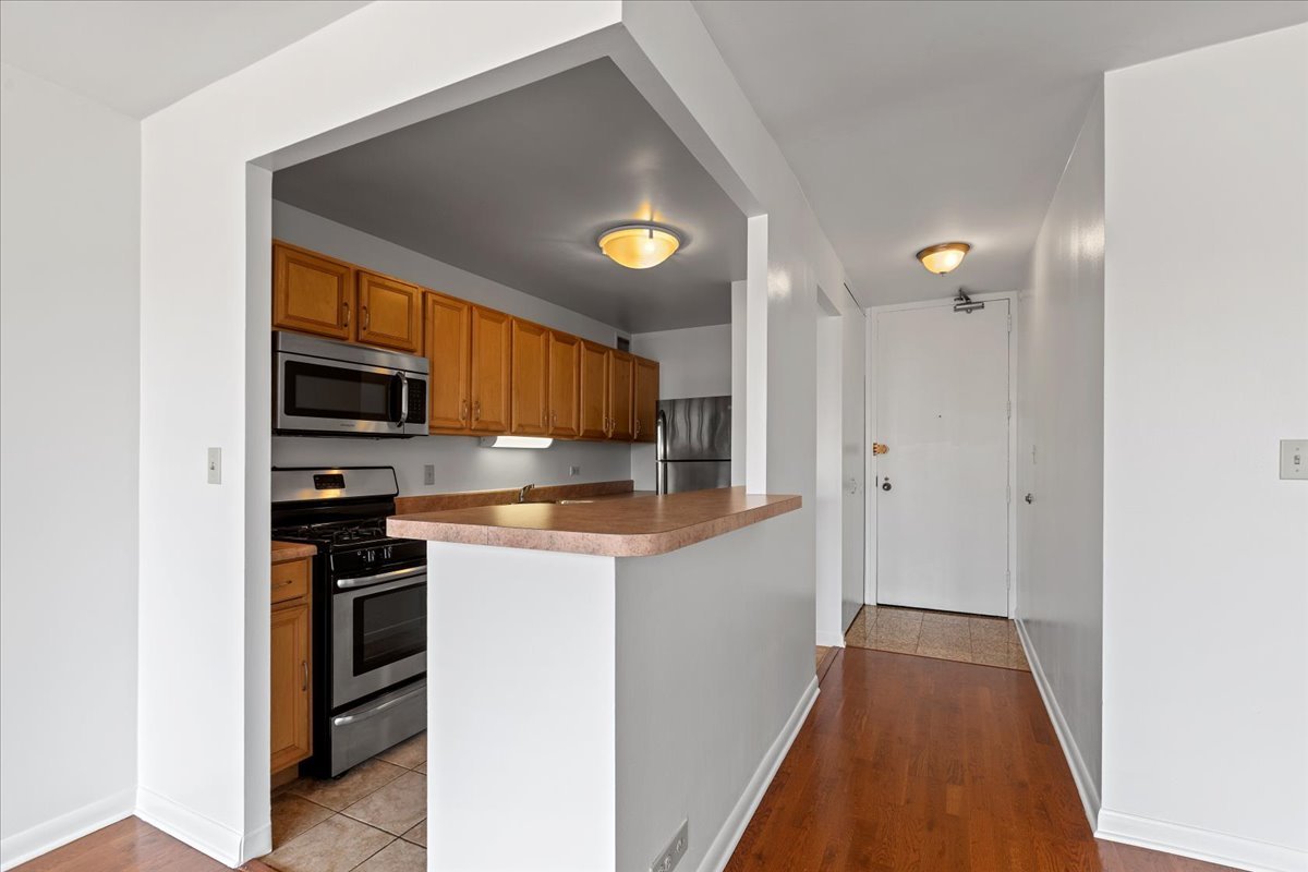 HEART OF LINCOLN PARK! Move right in to this newly decorated 2 bedroom 1 bath condo in resort-style amenity building. Stainless kitchen with breakfast bar and lots of cabinets, hardwood floors, great closets and so much light! . Relax by your outdoor pool and sundeck with tables and grills. There is a workout room, coin laundry and 24 hour doorperson. Building is Investor friendly with no rental cap. Pet friendly. Walk to restaurants, shops, park and beach. Who can ask for more!!!