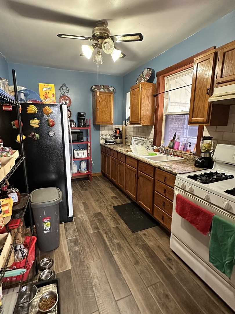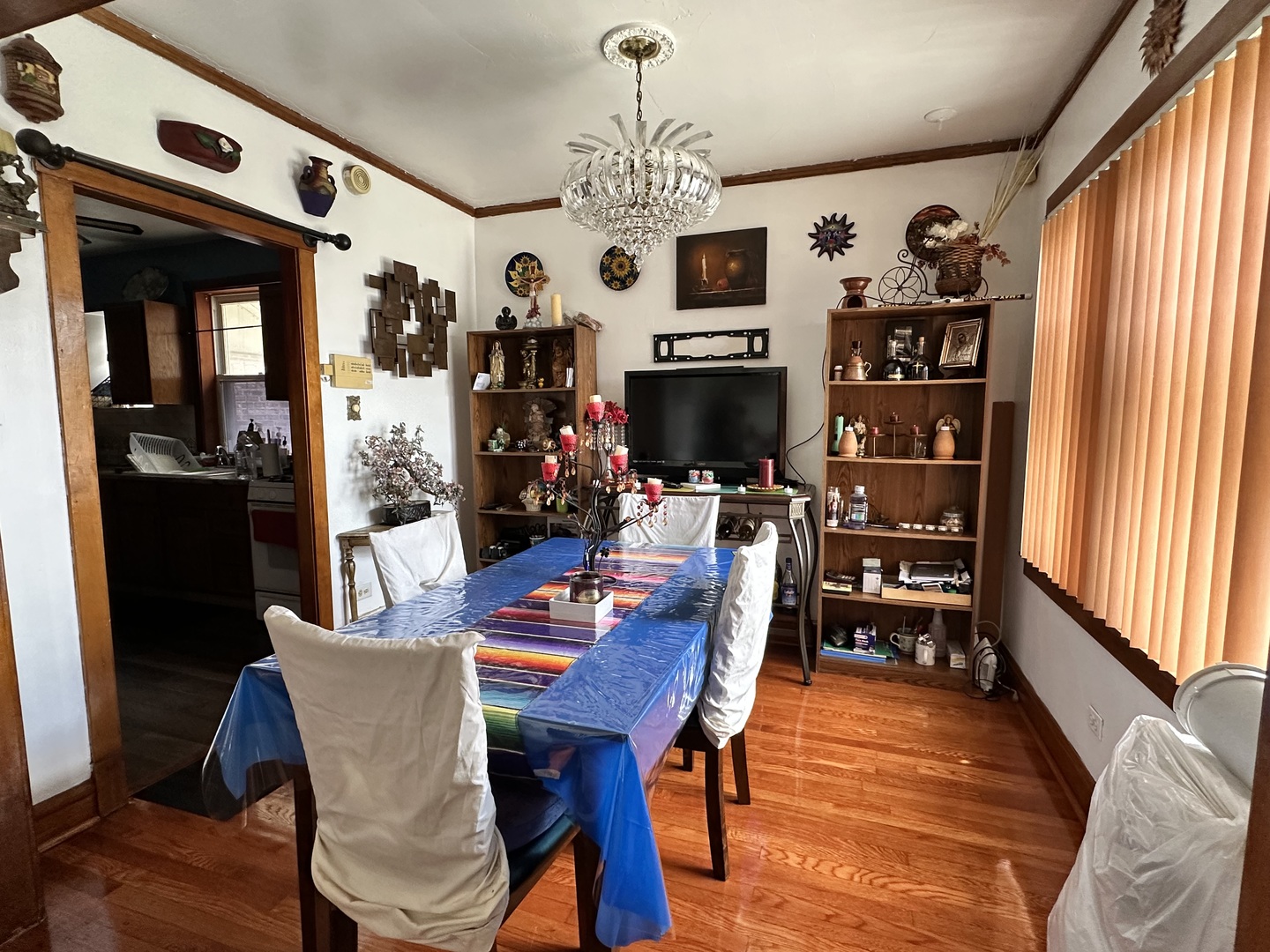 Charming 3-Bedroom Bungalow with In-Law Setup in West Humboldt Park! Welcome to 4440 W Iowa Street – a well-maintained brick bungalow offering classic charm, modern functionality, and versatile living space in the heart of Chicago’s West Humboldt Park neighborhood. Step inside to beautifully preserved hardwood floors, warm wood trim, and a cozy front living room filled with natural light. The adjacent formal dining room is perfect for entertaining and showcases a sparkling chandelier, large windows, and space for a full dining set. The main-level kitchen is well-equipped with solid wood cabinetry, ample counter space, and a large window over the sink that fills the room with light. A second full kitchen in the full basement adds excellent potential for related living, extended family stays, or rental income. This home features 3 bedrooms and 2.5 bathrooms, including a finished basement with its own full bath-ideal for guests or a private suite. You’ll also love the spacious 2-car detached garage and a generous backyard, perfect for outdoor gatherings or gardening. Whether you’re looking to move in and make it your own or invest in a property with built-in flexibility, this home delivers comfort, character, and convenience. Located near public transportation, parks, and local amenities. Sold AS-IS