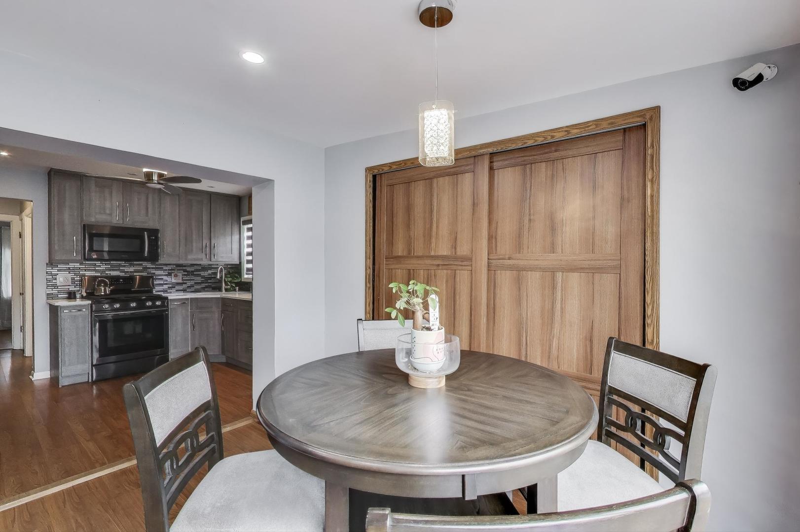 Welcome to your dream home at 4445 Grove Ave, Stickney, Illinois-a haven for first-time home buyers, savvy investors, blossoming families, romantic newlyweds, independent singles, and serene retirees. This single-family residence boasts 2 bedrooms and 1 bathroom, with a generous total of 6 parking spaces including the oversized 2.5 car garage, making it perfect for all walks of life. Step into a realm of sophistication with a wonderfully maintained brick ranch home that has seen countless updates. The kitchen, a masterpiece of modern design, has been totally redone, featuring soft-close cabinets, a motion sensor faucet, and sparkling quartz countertops that sit atop new copper piping, all complemented by sleek black stainless steel appliances. Bath time transforms into a spa experience with floor-to-ceiling tile in the exquisitely remodeled bathroom. Relax in the cozy ambiance of the family room, where a gas fireplace awaits to warm your evenings. As spring blossoms, venture outside to the deck overlooking a spacious, fenced-in yard and patio area-ideal for entertaining or peaceful reflection. For the hobbyist or eco-conscious driver, the 2.5 car garage includes a workbench and a cutting-edge 220 amp EV vehicle charging setup. The finished basement offers a recreational room with a bar and a laundry room equipped with built-in storage. The home also features overhead sewers, a new sump pump, and a security camera system for your peace of mind. Recent updates include refinished hardwood flooring (2024), a new concrete driveway and sidewalk (2023), leaf filters with a transferable warranty, new chimney sleeve and tuckpointing (2021), new windows (2018), newer roof and HVAC as well. Located conveniently close to dining, entertainment, shopping, the commuter rail, and expressways, this as-is property has everything you need to build your future. Don’t miss out-make an appointment today, as this exceptional offering is bound to go quickly!