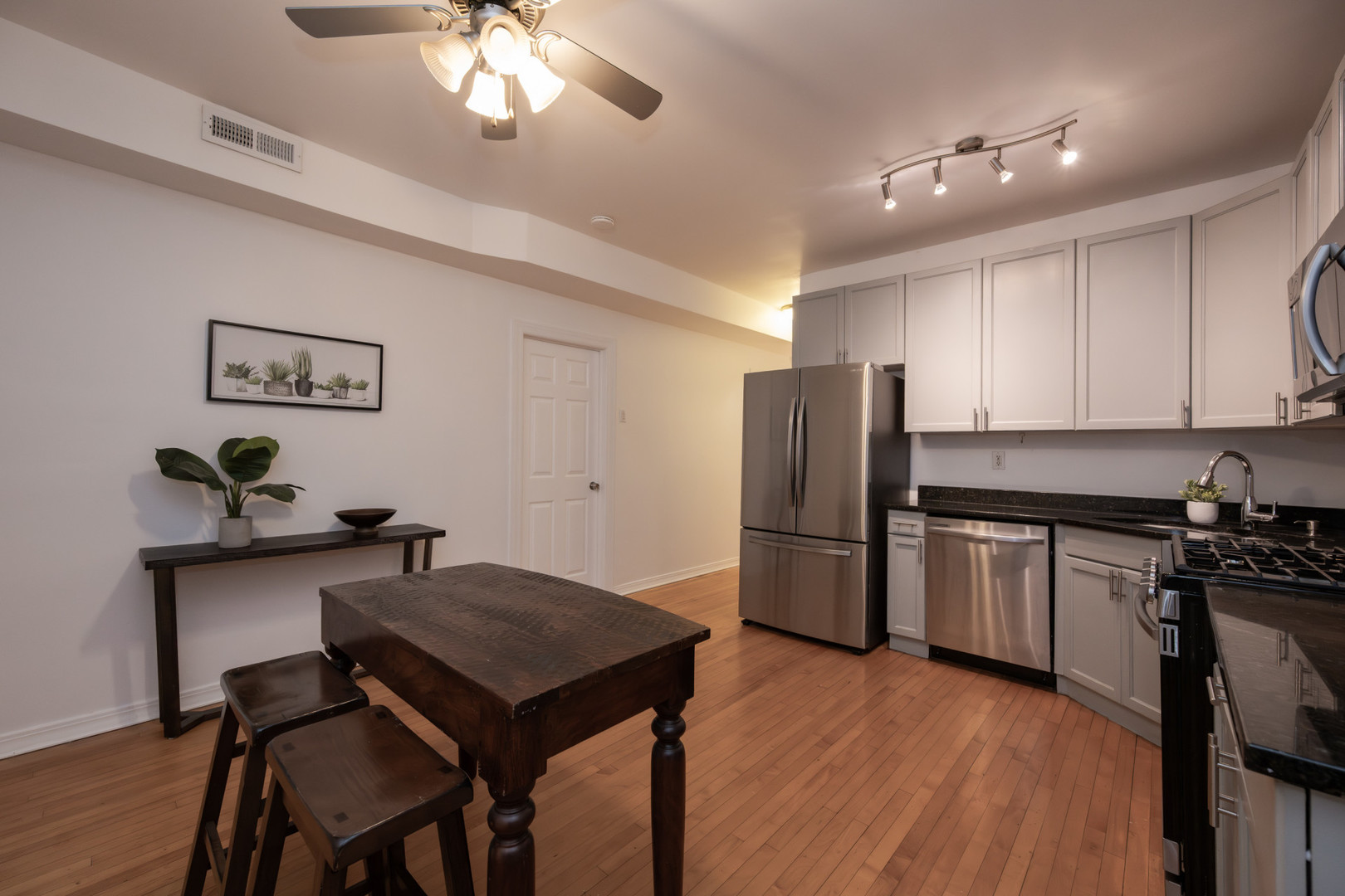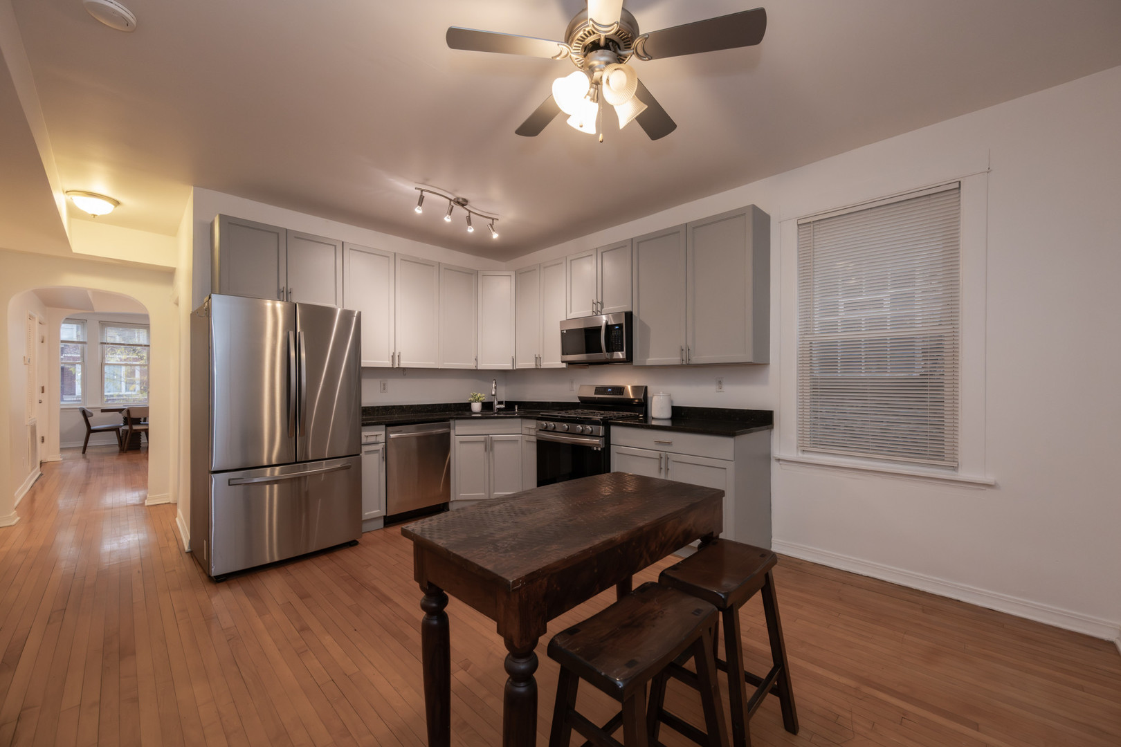 A bright and spacious condo with in-unit laundry, central air, a huge yard, and parking included in the price! This freshly painted two-bedroom condo features original hardwood floors throughout, high ceilings with fans in nearly every room, a large, updated bathroom, and a massive kitchen with like-new stainless steel appliances. This cute and quiet property is on the East side of Kimball, on border of Ravenswood Manor, with beautiful new construction homes and lots of renovation all around! This location boasts easy access to the bus stop right on the corner, and it’s mere minutes to the Kimball or Kedzie Brown Line stops. You’re close to several neighborhood restaurants, Aldi, Jewel, and more. One rear, exterior parking space is included in the price, and most of the other neighborhood parking is free without permit. Lots of updates to the unit and building, with a low HOA, affordable taxes, and caring fellow owners. This property is pet and investor-friendly. Get in while the area is still growing! Seller is a Licensed IL Real Estate Agent.