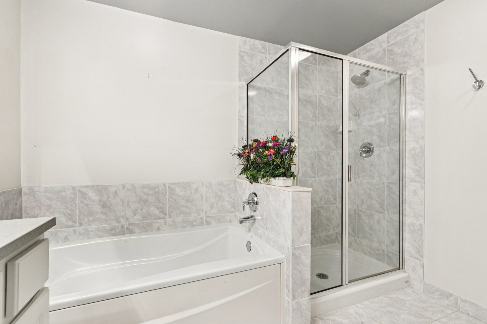 Rarely available 2 bed/2 bath condo in the gated Village Green community of Lincolnshire. Enjoy maintenance-free living with an outdoor pool, exercise room, and serene pond views. This 1,600+ sq. ft. home features a spacious open floor plan with freshly painted rooms, a large kitchen with Corian counters, pantry, and breakfast bar, plus an open and bright living room with fireplace and access to a private balcony. The master bathroom offers a spa-like bath with double vanity, soaking tub, walk-in shower, and generous closets. A second bedroom and full bath make an ideal guest room or office. Recent updates include HVAC (2021), window treatments (2022), and new roof (2024). Heated garage space (#11) is just steps from the lobby, with additional storage on the same floor. Monthly assessments cover gas, water, scavenger, pool, deck, and building maintenance. Convenient location near restaurants, Starbucks, Metra, Vernon Township Library, shopping, and just 20 minutes to O’Hare.