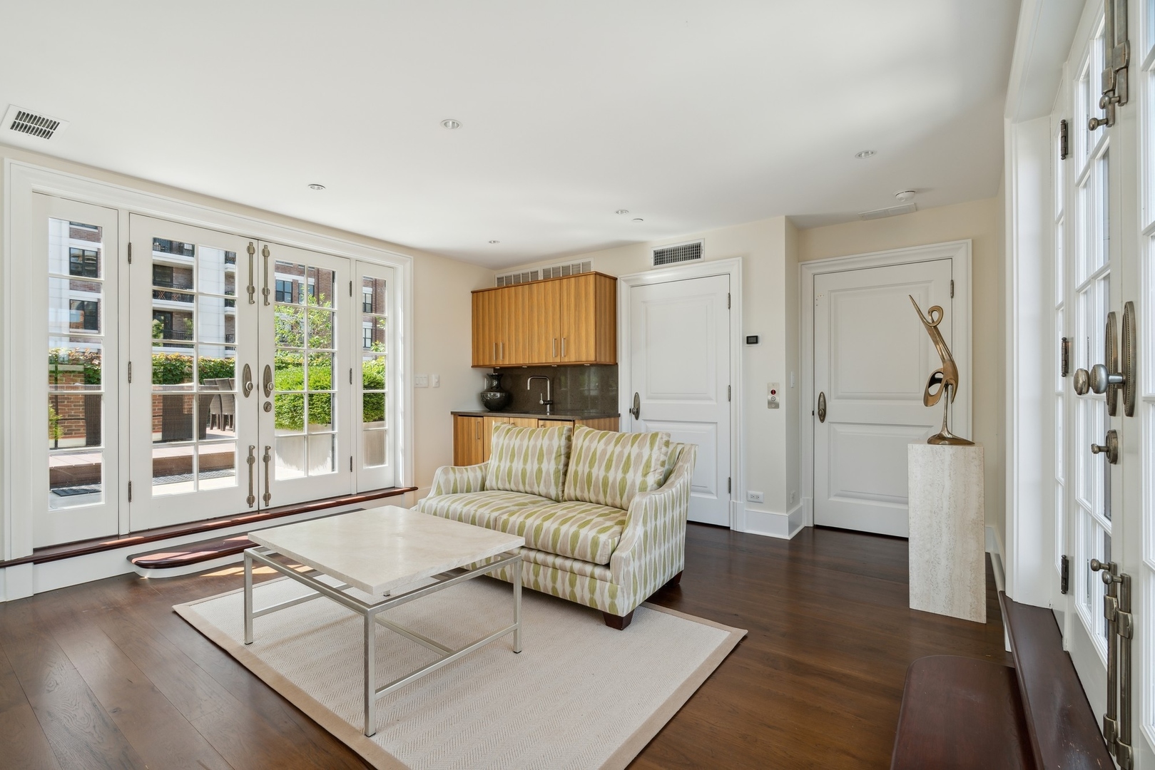 This masterfully designed 6-bedroom, 6-bathroom single-family home in Near North offers over 8,500 square feet of bespoke living space. Paired with four private outdoor areas, this is a rare opportunity to experience expansive, luxurious city living in one of Chicago’s most sought-after neighborhoods. The residence is a true showcase of craftsmanship, scale, and thoughtful detail. The south-facing facade fills the home with exceptional natural light. The elegant limestone and brick exterior is enhanced by mature trees and professionally landscaped perennials, creating an impressive yet inviting street presence. Inside, a classic black-and-white marble foyer leads to interiors rich in sophistication and texture, featuring Carlisle wide-plank, hand-scraped hardwood floors, and premium fixtures and hardware by Rocky Mountain, Perrin & Rowe, Hansgrohe Axor, Devon & Devon, Rohl, and Kohler. No expense was spared in the home’s high-end finishes. The first level includes a light-filled living room with a fireplace, a dedicated office, a private en-suite bedroom-ideal for guests or an au pair-and access to the attached two-car garage. On the main level, the heart of the home is the incredible chef’s kitchen, where Calacatta marble countertops, custom cabinetry, and designer finishes set the tone for refined entertaining. Appliances are best-in-class, including two Sub-Zero refrigerators, a 48-inch Wolf range with 1.5 ovens, a Wolf warming drawer, and two Miele dishwashers. A walk-in pantry and charming breakfast nook complete the space. The adjacent family room is anchored by a beautifully detailed coffered ceiling, floor-to-ceiling windows, and a bold fireplace, creating an inviting gathering space. A transitional sitting room opens into the formal dining area, where soaring ceilings and grand French doors lead to a beautifully landscaped, oversized terrace-an ideal setting for outdoor living. Upstairs, three en-suite bedrooms, a secondary sitting lounge, and a third-floor laundry room provide exceptional comfort and privacy. The primary suite, occupying its own entire level, is a private haven featuring a Juliet balcony, fireplace, custom-designed closets, and an oversized dressing room with dual accessory islands. The spa-quality bath includes premium fixtures by Perrin & Rowe, Hansgrohe, and Kallista, a soaking tub, dual vanities, and a walk-in shower-delivering a full retreat experience. This level also includes a secluded primary den and a second full laundry area for added convenience. The top level is designed for elevated entertaining, featuring a sophisticated lounge with a full wet bar, dual beverage refrigerators, and two expansive rooftop terraces-one with an outdoor fireplace, perfect for enjoying city-lit evenings. A half bath completes this floor. The fully finished lower level expands the home’s functionality with a spacious media/recreation room, a climate-controlled wine cellar, and a dedicated home gym. Throughout the home, additional high-end touches include designer window treatments, custom millwork, and four total fireplaces. A Control4 smart home automation and security system provides seamless control of lighting, temperature, and security, while built-in outdoor speakers enhance the ambiance on both the second-floor terrace and the rooftop deck. Perfectly located just steps from Ward Park, the Chicago Riverwalk, and the River North Design District-and within walking distance of East Bank Club with easy access to the Loop-446 W. Huron is a rare blend of design, comfort, and urban convenience. An extraordinary opportunity to live beautifully in the heart of Chicago. Ogden School District, too! Seller financing available – inquire for details.