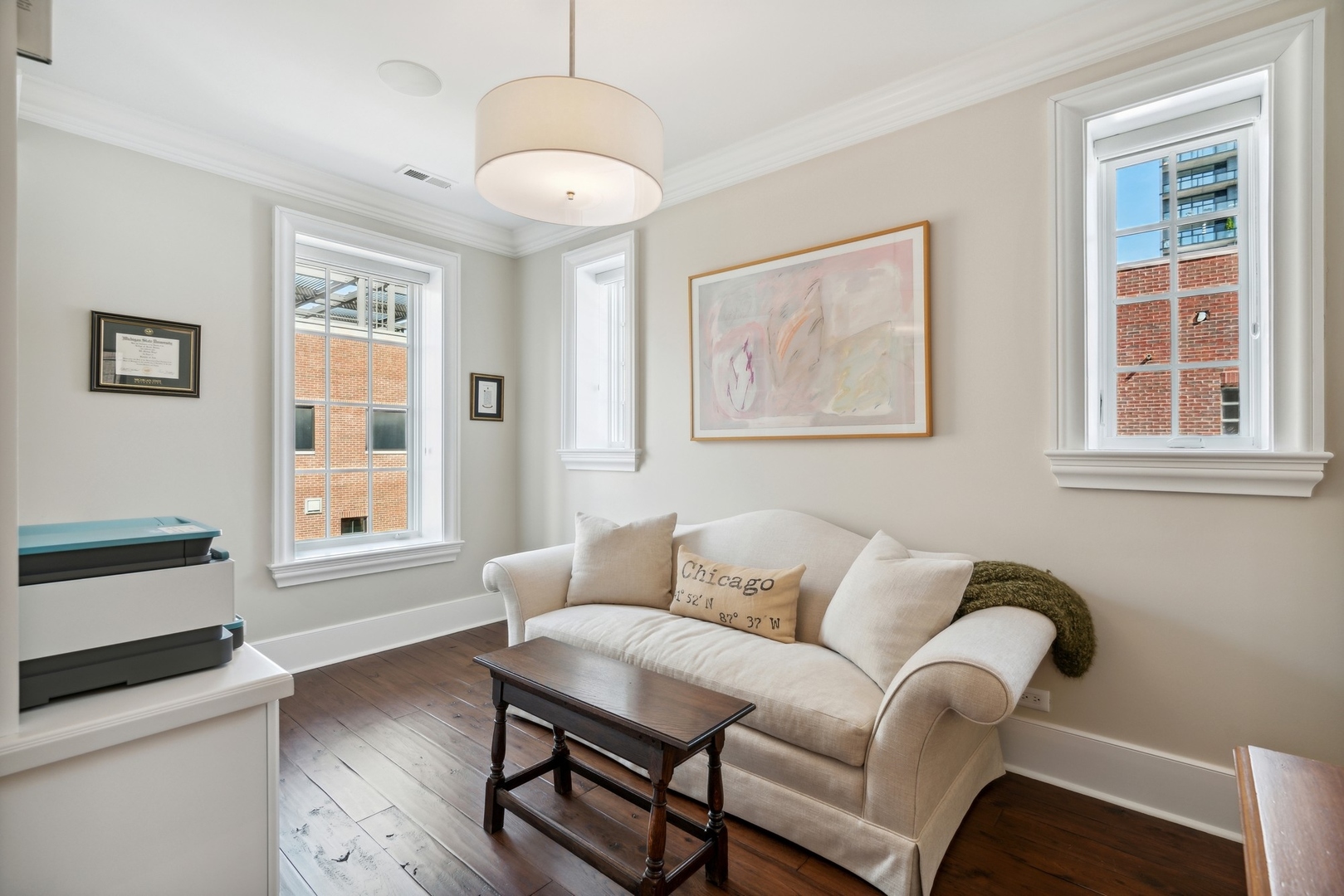 This masterfully designed 6-bedroom, 6-bathroom single-family home in Near North offers over 8,500 square feet of bespoke living space. Paired with four private outdoor areas, this is a rare opportunity to experience expansive, luxurious city living in one of Chicago’s most sought-after neighborhoods. The residence is a true showcase of craftsmanship, scale, and thoughtful detail. The south-facing facade fills the home with exceptional natural light. The elegant limestone and brick exterior is enhanced by mature trees and professionally landscaped perennials, creating an impressive yet inviting street presence. Inside, a classic black-and-white marble foyer leads to interiors rich in sophistication and texture, featuring Carlisle wide-plank, hand-scraped hardwood floors, and premium fixtures and hardware by Rocky Mountain, Perrin & Rowe, Hansgrohe Axor, Devon & Devon, Rohl, and Kohler. No expense was spared in the home’s high-end finishes. The first level includes a light-filled living room with a fireplace, a dedicated office, a private en-suite bedroom-ideal for guests or an au pair-and access to the attached two-car garage. On the main level, the heart of the home is the incredible chef’s kitchen, where Calacatta marble countertops, custom cabinetry, and designer finishes set the tone for refined entertaining. Appliances are best-in-class, including two Sub-Zero refrigerators, a 48-inch Wolf range with 1.5 ovens, a Wolf warming drawer, and two Miele dishwashers. A walk-in pantry and charming breakfast nook complete the space. The adjacent family room is anchored by a beautifully detailed coffered ceiling, floor-to-ceiling windows, and a bold fireplace, creating an inviting gathering space. A transitional sitting room opens into the formal dining area, where soaring ceilings and grand French doors lead to a beautifully landscaped, oversized terrace-an ideal setting for outdoor living. Upstairs, three en-suite bedrooms, a secondary sitting lounge, and a third-floor laundry room provide exceptional comfort and privacy. The primary suite, occupying its own entire level, is a private haven featuring a Juliet balcony, fireplace, custom-designed closets, and an oversized dressing room with dual accessory islands. The spa-quality bath includes premium fixtures by Perrin & Rowe, Hansgrohe, and Kallista, a soaking tub, dual vanities, and a walk-in shower-delivering a full retreat experience. This level also includes a secluded primary den and a second full laundry area for added convenience. The top level is designed for elevated entertaining, featuring a sophisticated lounge with a full wet bar, dual beverage refrigerators, and two expansive rooftop terraces-one with an outdoor fireplace, perfect for enjoying city-lit evenings. A half bath completes this floor. The fully finished lower level expands the home’s functionality with a spacious media/recreation room, a climate-controlled wine cellar, and a dedicated home gym. Throughout the home, additional high-end touches include designer window treatments, custom millwork, and four total fireplaces. A Control4 smart home automation and security system provides seamless control of lighting, temperature, and security, while built-in outdoor speakers enhance the ambiance on both the second-floor terrace and the rooftop deck. Perfectly located just steps from Ward Park, the Chicago Riverwalk, and the River North Design District-and within walking distance of East Bank Club with easy access to the Loop-446 W. Huron is a rare blend of design, comfort, and urban convenience. An extraordinary opportunity to live beautifully in the heart of Chicago. Ogden School District, too! Seller financing available – inquire for details.
