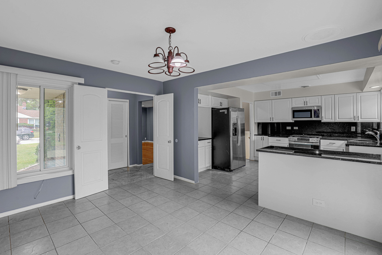 Welcome to this cozy and well-maintained brick bi-level home situated on a large corner lot. Inside, you’ll find beautiful hardwood floors throughout the living room and all three bedrooms. The inviting living room also boasts a gas log fireplace, perfect for cozy evenings. A separate dining room and a generously sized kitchen with new cabinets and ss appliances make this home ideal for both everyday living and entertaining. The home includes two full updated bathrooms and a fully finished basement, providing plenty of space for relaxation, recreation, or additional living needs. An attached two-car garage offers convenient parking and storage leading to a freshly paved driveway. Step outside to enjoy a spacious brick patio and a huge backyard-perfect for gardening, outdoor entertaining, or simply enjoying the open space.
