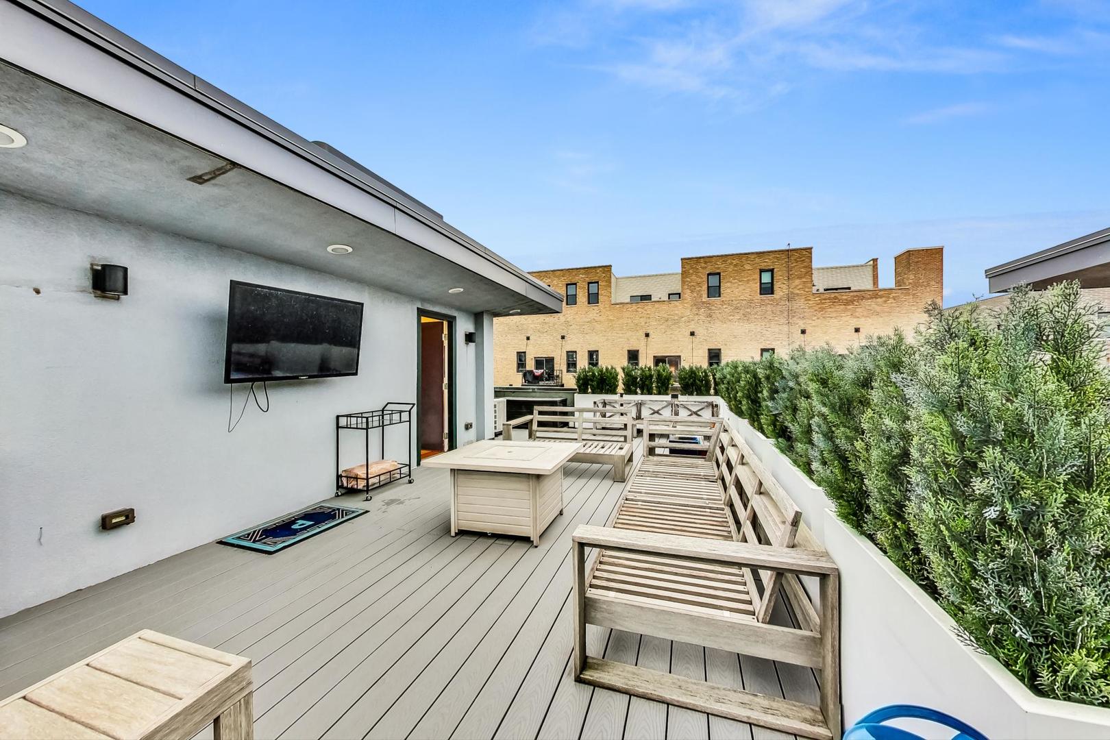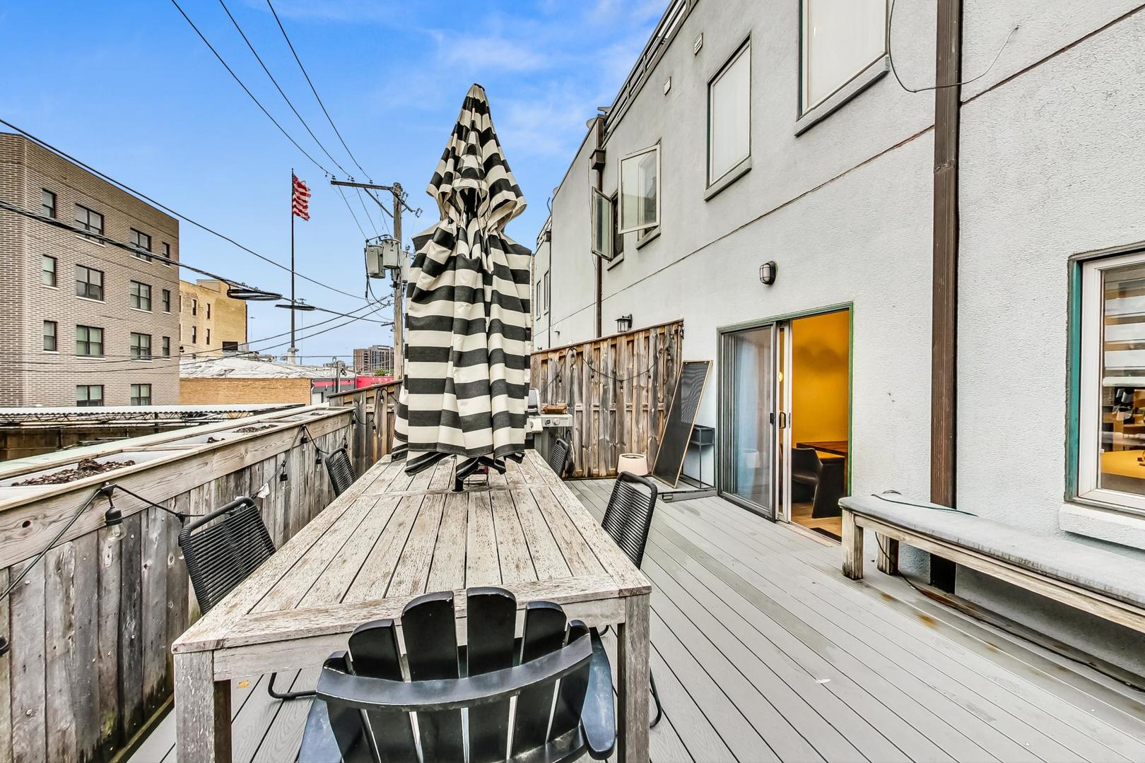 Beautiful Townhome, with 3 floors of renovated, sophisticated living, including an attached 2-car garage with additional storage, with an additional full-floor rooftop deck with outdoor kitchen, television, living and dining areas, all in a gated community in Fulton Market! This beautiful home is on the tranquil courtyard side of the building, providing calm and privacy. The kitchen consists of custom cabinetry, quartz counter tops, and lots of storage throughout. Off the kitchen is an indoor dining area, and large outdoor deck for entertaining and dining al fresco! A fireplace, light-diffusing window shades and pale hardwood floors complete the main floor . Upstairs you’ll find 2 large bedrooms with great closet storage, and a stunning bath with dual vanities, walk-in shower, and separate free-standing tub. The lower level is a huge media / gathering space, with a built-in murphy bed. Completing the lower level is a side by side washer / dryer, full bath, and access to the 2-car garage with a Charging Station and big additional storage space. Freshly painted and refinished hardwood floors throughout. All of this in a close-to everything location, from dining, nightlife and entertainment, to groceries, shopping and transportation. Pre-approved buyers only for showings.
