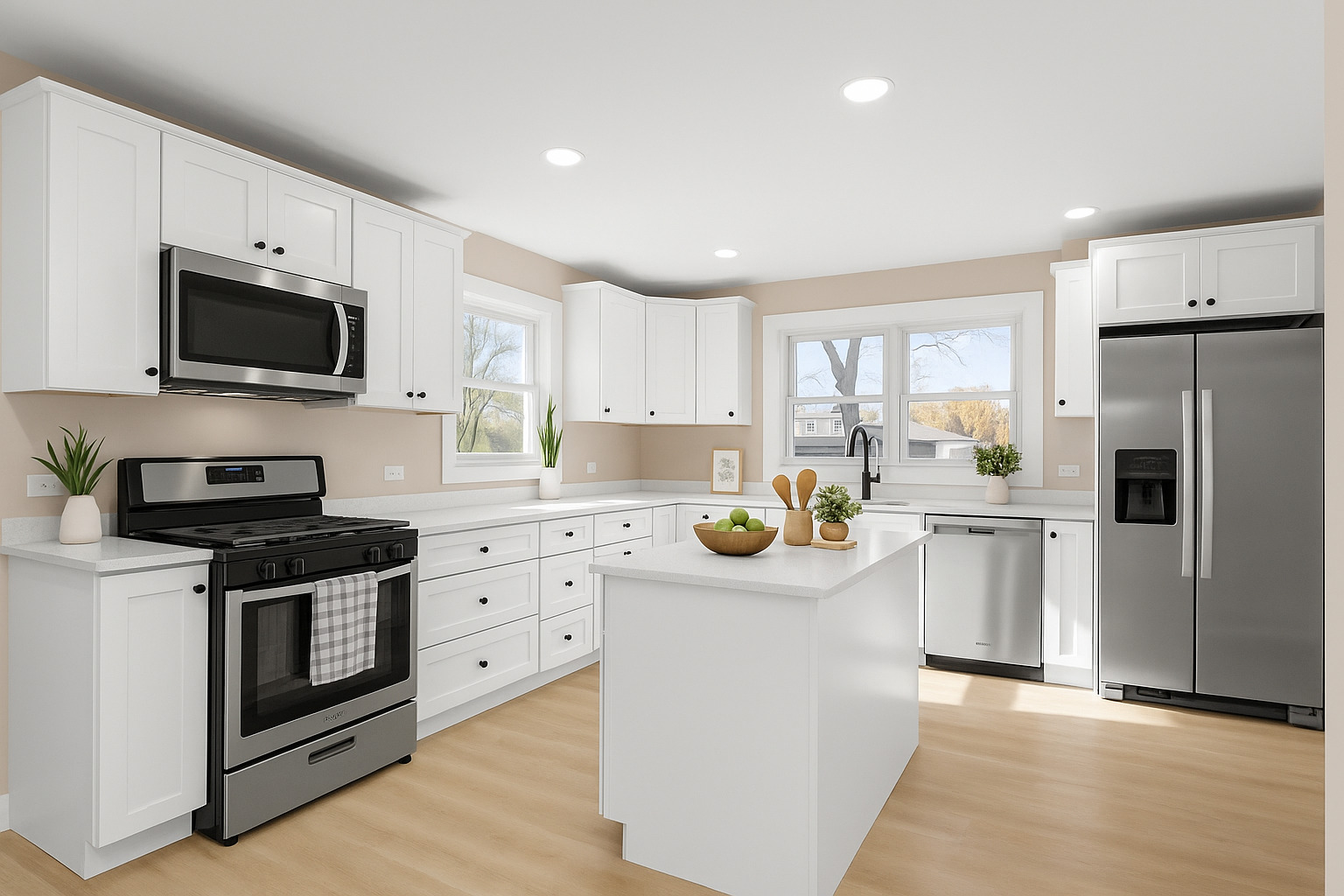 Stunning, fully renovated 3-bedroom, 2-bath home on a rare double lot-over half an acre-right across from White Pines Golf Course! Rebuilt with all permits pulled and closed, the home was taken down to the studs and features new insulation, copper plumbing, updated electrical, new drywall/trim, fresh paint, modern lighting, and new Moen fixtures. Mechanical updates include a new water heater, new sump pump, and professionally serviced furnace and A/C. Smart features include a Nest thermostat and Ring camera. Enjoy new flooring throughout, a brand-new kitchen with modern cabinetry, sleek countertops, Whirlpool stainless appliances, and a new GE washer/dryer. Both bathrooms are fully remodeled, and the finished mudroom adds everyday convenience. Exterior highlights include an oversized new driveway, a 1-car attached garage with dedicated work area, upgraded with a new garage door, motor, and tracks, plus a 1-car detached garage with alley access and loft storage. Beautifully updated and truly move-in ready-nothing left to do but enjoy!