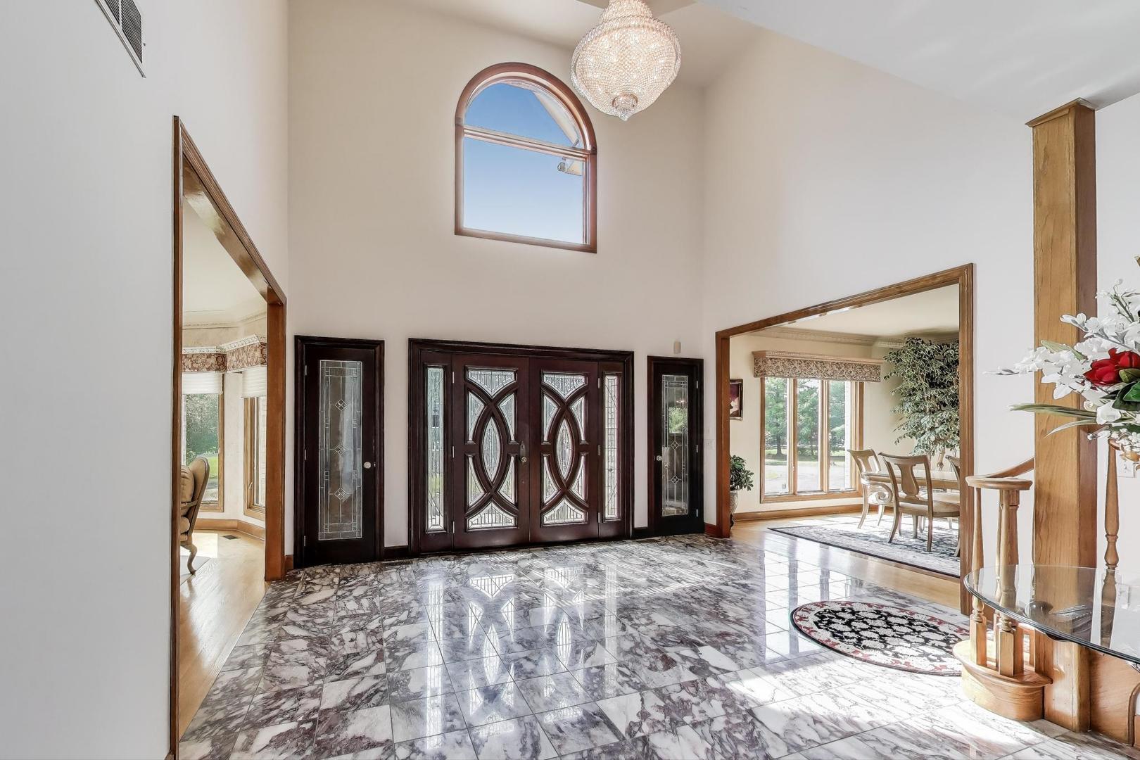 The “Crown Jewel” of South Barrington’s classic Willow Bay subdivision. 45 Willow Bay Drive is the largest luxury estate situated on the largest lot (1.7 acres) that leads to a cul-de-sac and prime location next to a beautiful pond with sensational EAST views offering peace and tranquility. Priced to sell below appraised value of $1.45M! Bring your designers to update as you like. Arrive on your new circular drive to explore this custom-built home by a Barrington area luxury builder who has overseen 20,000+ new construction homes over a 30-year career. This spectacular All-Brick mansion features 5,723 sq. ft. living above grade plus a 2,963 sq. ft. finished basement. Walk into the stunning foyer with a glorious chandelier. Entertain in your family room with 20 ft. soaring ceilings, formal living room, dining room, first floor bedroom with ensuite bathroom (currently utilized as an office) and a spacious den. Chef’s kitchen beautifully remodeled with custom cabinets, granite counters and stainless appliances with a secondary prep kitchen on the main floor and a third kitchenette in the basement. The second floor offers the functionality of four bedrooms with a primary suite and spacious flex room and 5th bedroom in the lower level. Perfect home to entertain with a deck and plush backyard. Close to the Arboretum of South Barrington, Community Park and I-90. Downtown Barrington Metra, shops and boutiques just five minutes away. IMPROVEMENTS & UPGRADES: “BRAND NEW” Driveway (2025) + NEW Pella Windows (2025) + NEW “Davinci Roof” (2020) + NEW Oak wood Floors on 2nd Level (2024) + NEW Brazilian Cherry Floors in Primary Suite & Junior Suite (2023) + Junior Suite Bathroom (2023) + NEW Furnace (2023) + NEW Hot Water Tank (2022). Live the good life at 45 Willow Bay Drive!