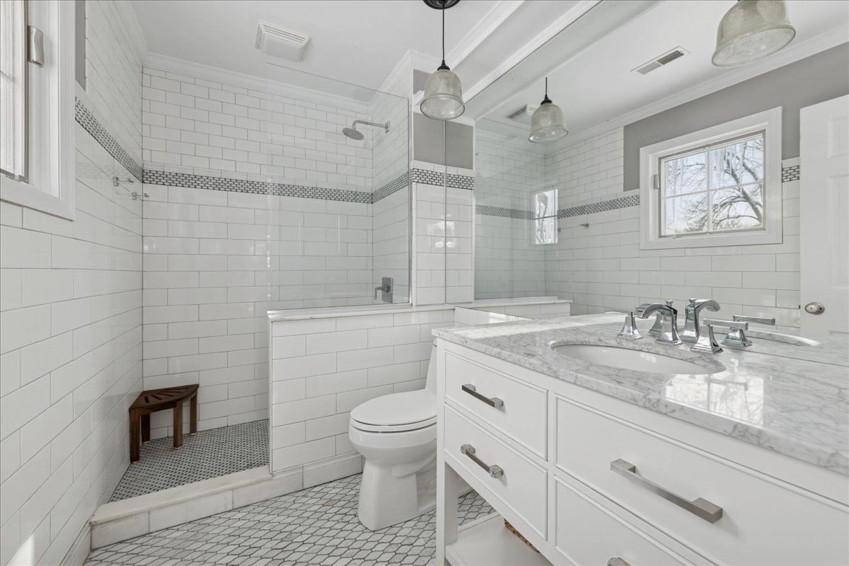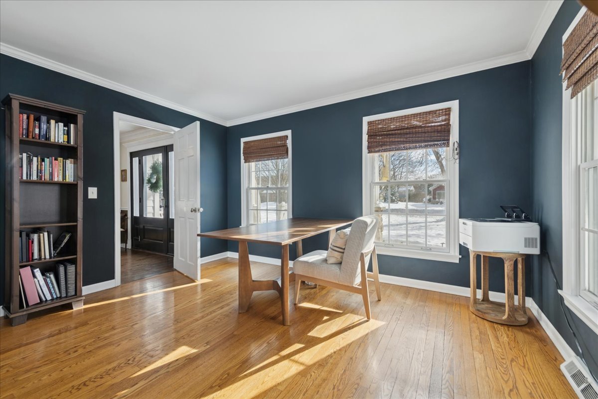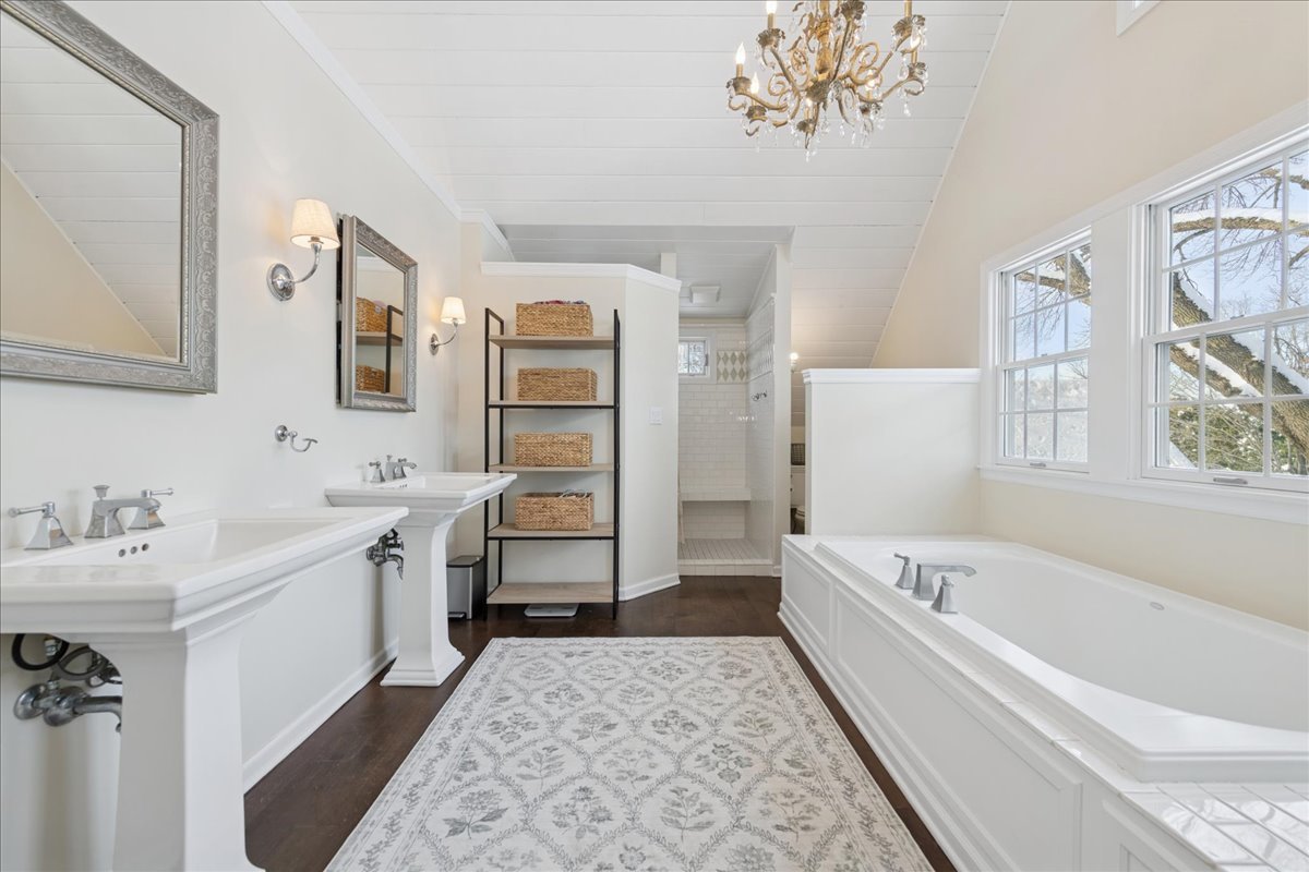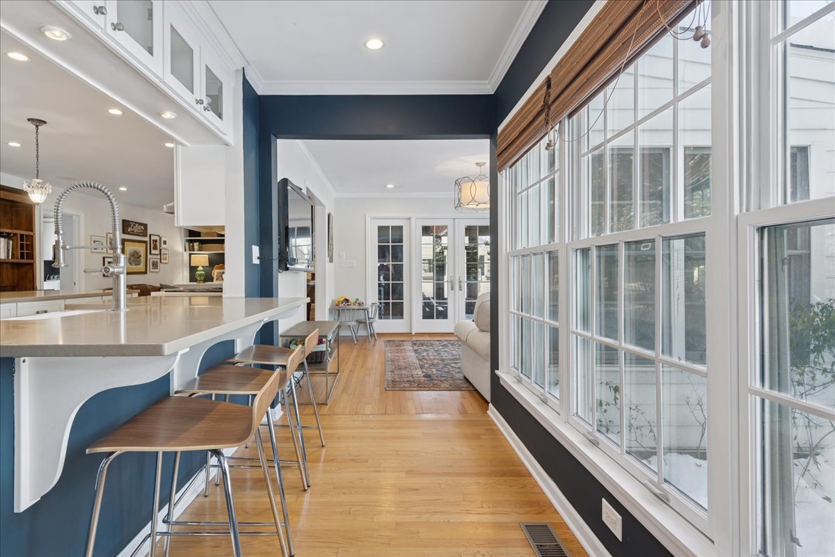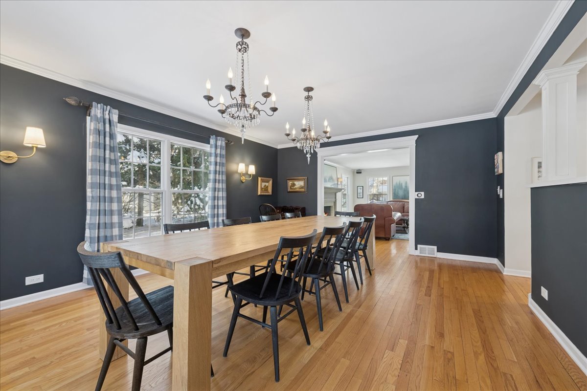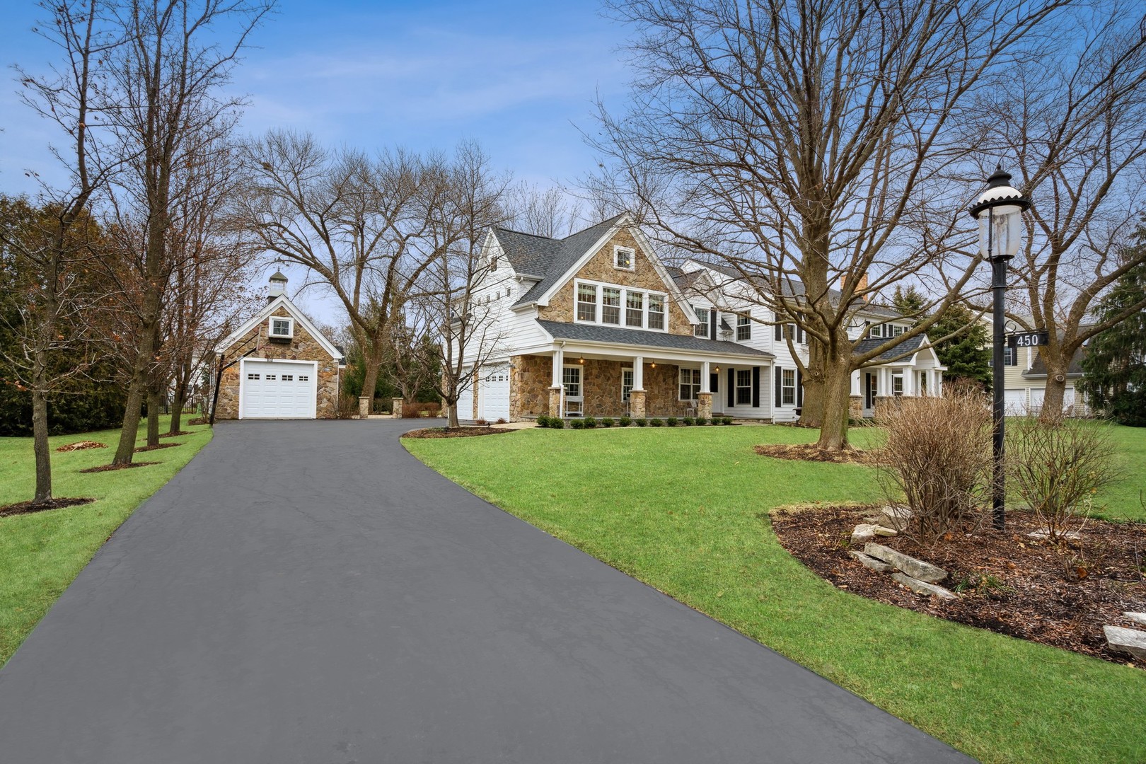 Front porch charm welcomes you to this gem in the heart of sought after Glen Acres! Set on a picturesque, tree-lined street, this beautifully appointed home blends timeless elegance with everyday comfort. The sprawling bluestone covered front porch sets the tone, welcoming you into nearly 5,000 sq ft of thoughtfully designed living space with five bedrooms and three full baths on the second level. A main floor office with adjacent full bath can flex as a guest/6th bedroom! Masterfully renovated and expanded in 2004, the home offers an exceptional floor plan with generous room sizes, rich hardwood floors, three fireplaces, custom millwork and oversized windows that bathe the interiors in natural light. The gourmet kitchen is a chef’s dream with a large island, breakfast bar and walk-in pantry, opening seamlessly to the inviting family room. Just beyond, the sunroom overlooks the lush backyard and leads to an extraordinary screened porch featuring a floor-to-ceiling stone fireplace, vaulted ceilings and a charming balcony overlook. The first floor is rounded out with elegant living and dining rooms and a thoughtfully designed laundry/mudroom. Upstairs, the serene primary suite feels like a private retreat with on-trend shiplap volume ceilings, a cozy sitting area, dual walk-in closets and a private balcony perched above the screened porch. The spa-inspired ensuite offers a soaking tub, dual vanities and a separate shower. A second office nook, four additional bedrooms-including one ensuite-and a large hall bath with double sinks round out the well-appointed upper level. The finished lower level is designed for fun and functionality with spacious rec, game and play areas plus abundant storage space. Step outside to a picture-perfect backyard where lush landscaping frames a spacious brick paver patio-an inviting setting for effortless entertaining or quiet moments of relaxation. The fully fenced yard offers peace of mind and plenty of room for pets and children to play. Car enthusiasts and hobbyists will love the attached heated two-car garage, plus a detached one-car garage for added flexibility. Lovingly and meticulously maintained including new dishwasher (2025), washer & dryer (2024), HVAC (2023) & roof (2021), this home offers the best of Barrington Village living with easy access to downtown shops, dining, Metra and schools. Come for a visit and fall in love!