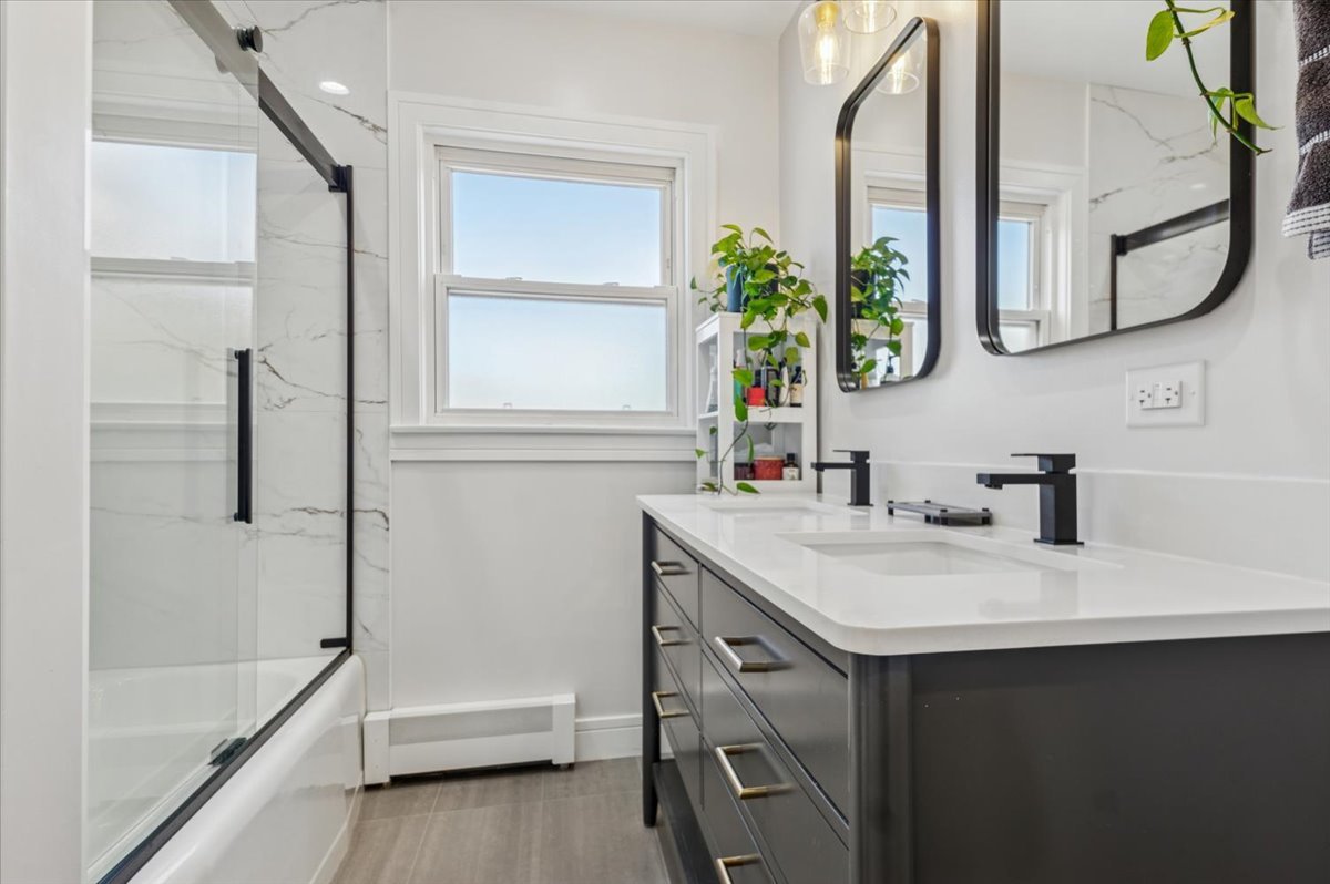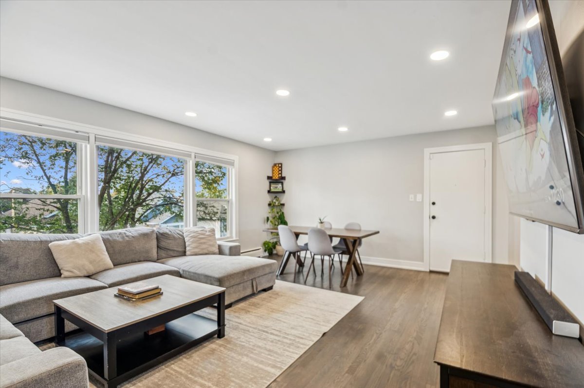 Stunning top-floor 2 bedroom unit in Jefferson Park where everything has been modernized to the highest standards. This private condo has its own private back porch entry with its own seating area, and a dedicated parking space. As soon as you walk in you’re greeted by this bright and roomy space with refinished hardwood floors, new trim, recessed lighting, smart thermostats & lighting, and much more. The sunny kitchen features lots of countertop space, stainless steel appliances, and a convenient breakfast nook area. The inviting living room space has plenty of room, including a combined dining area. The two bedrooms offer plenty of space, including closets with automatic lights. The bathroom is truly luxurious with top-of-the-line finishes, tiling, double-vanity, and a sharp look. One dedicated parking space is included. The building HOA is well-managed and a lot of the major projects have already been done- tuckpointing, lintels, roof re-sealing & flashing, hot water heater, plumbing lines, and security cameras. Conveniently located close to highways, public transport, and area amenities. Own for less than the cost of renting. ACT FAST