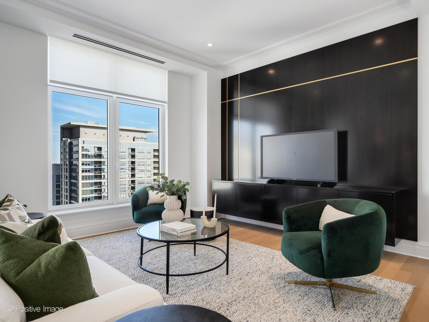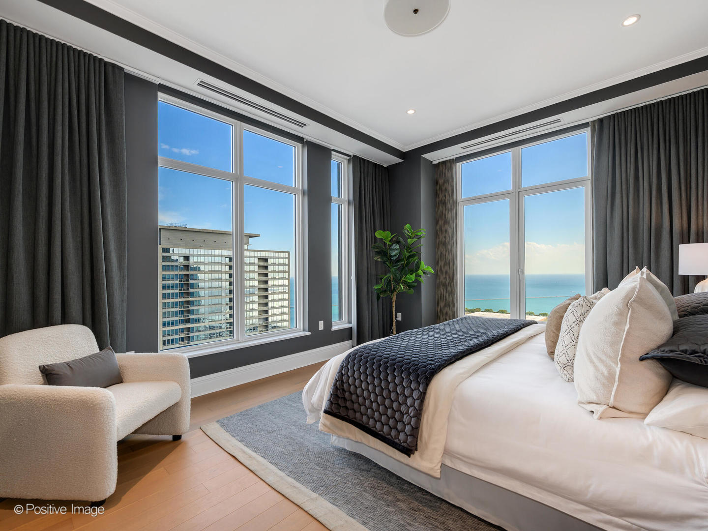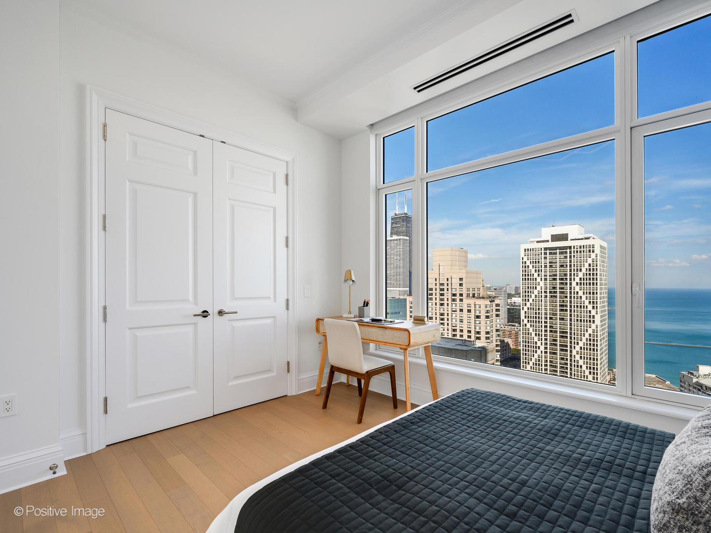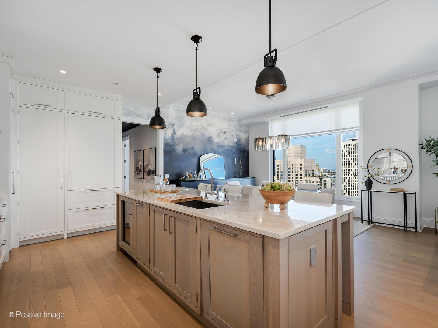 Experience unmatched sophistication in this 3-bedroom, 2.1-bath residence soaring 43 stories above Chicago in Robert A. M. Stern’s architectural masterpiece, One Bennett Park. Framed by sweeping views of Lake Michigan and the city skyline, this home is set within an amenity-rich community, complete with a 1.7-acre private park by renowned landscape architect Michael Van Valkenburgh. Step inside to a gracious foyer and an expansive open layout filled with natural light from oversized north- and east-facing windows. Ten-foot ceilings, white oak hardwood floors, custom millwork, and designer lighting create an atmosphere of timeless elegance. The formal living and dining rooms offer a spectacular backdrop for entertaining, with stunning lake and skyline vistas. The chef’s kitchen features custom Plain & Fancy cabinetry, Perla Venato stone countertops and backsplash, premium Wolf and Sub-Zero appliances, and Kallista fixtures. The corner primary suite offers dazzling views, a walk-in closet, and a spa-inspired marble bath with a soaking tub and a walk-in shower. Additional features include motorized shades, whole-home audio, automated lighting, and zoned climate control. Residents enjoy world-class amenities, including a limestone and granite motor court, 24-hour door staff, concierge and valet services, a bar and billiards lounge, a Jay Wright-designed fitness center, indoor and outdoor saltwater pools, a full-service spa and salon, a Pilates studio, and more. Just steps from the lakefront, Riverwalk, Navy Pier, Magnificent Mile, and premier dining, shopping, and cultural destinations. This is more than a home-it’s an unparalleled lifestyle.