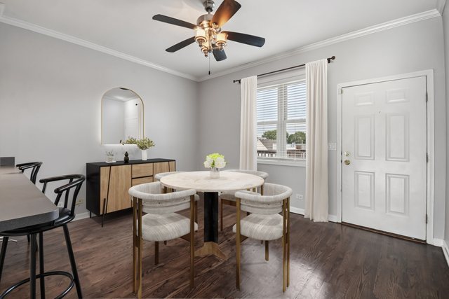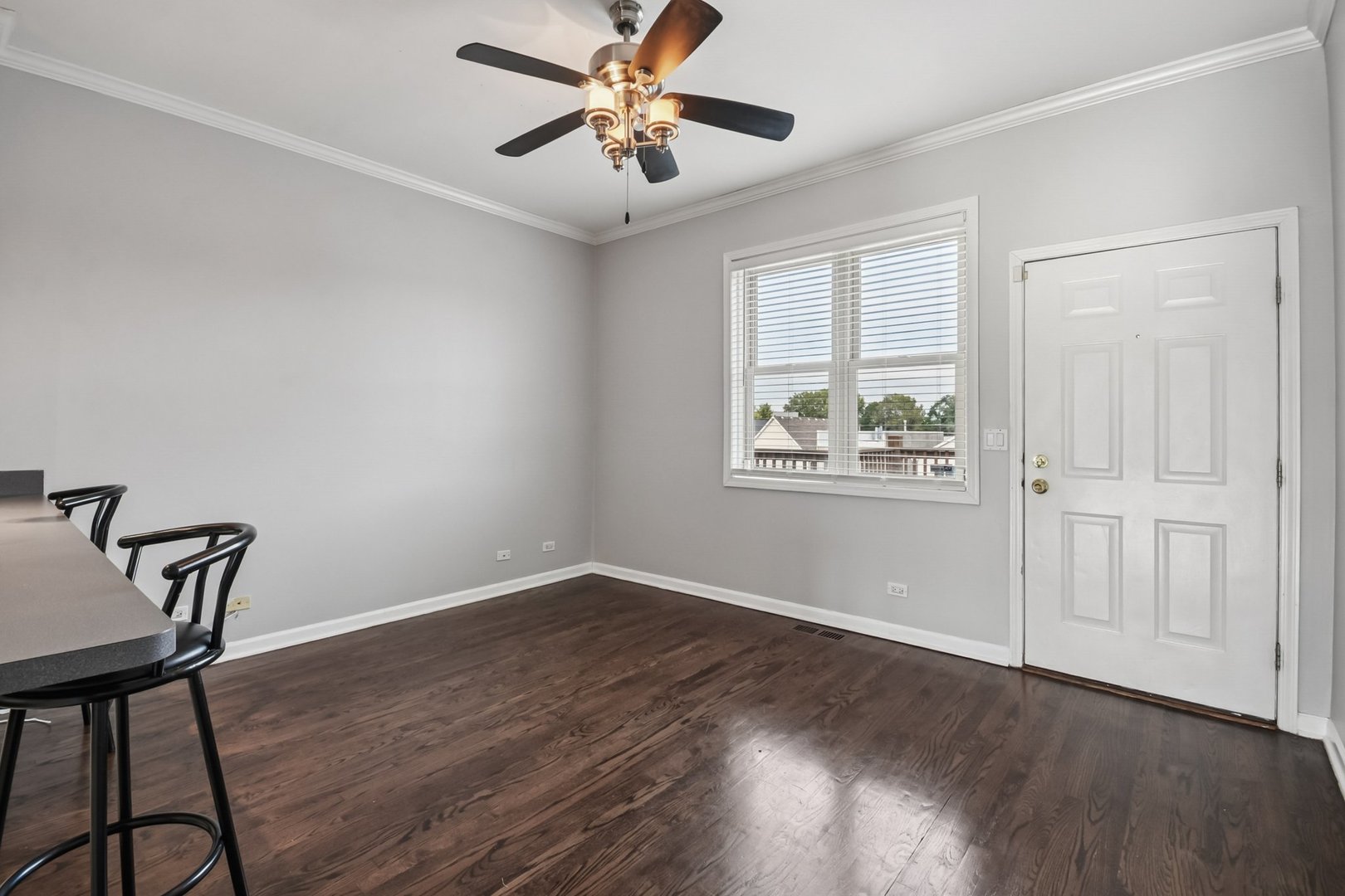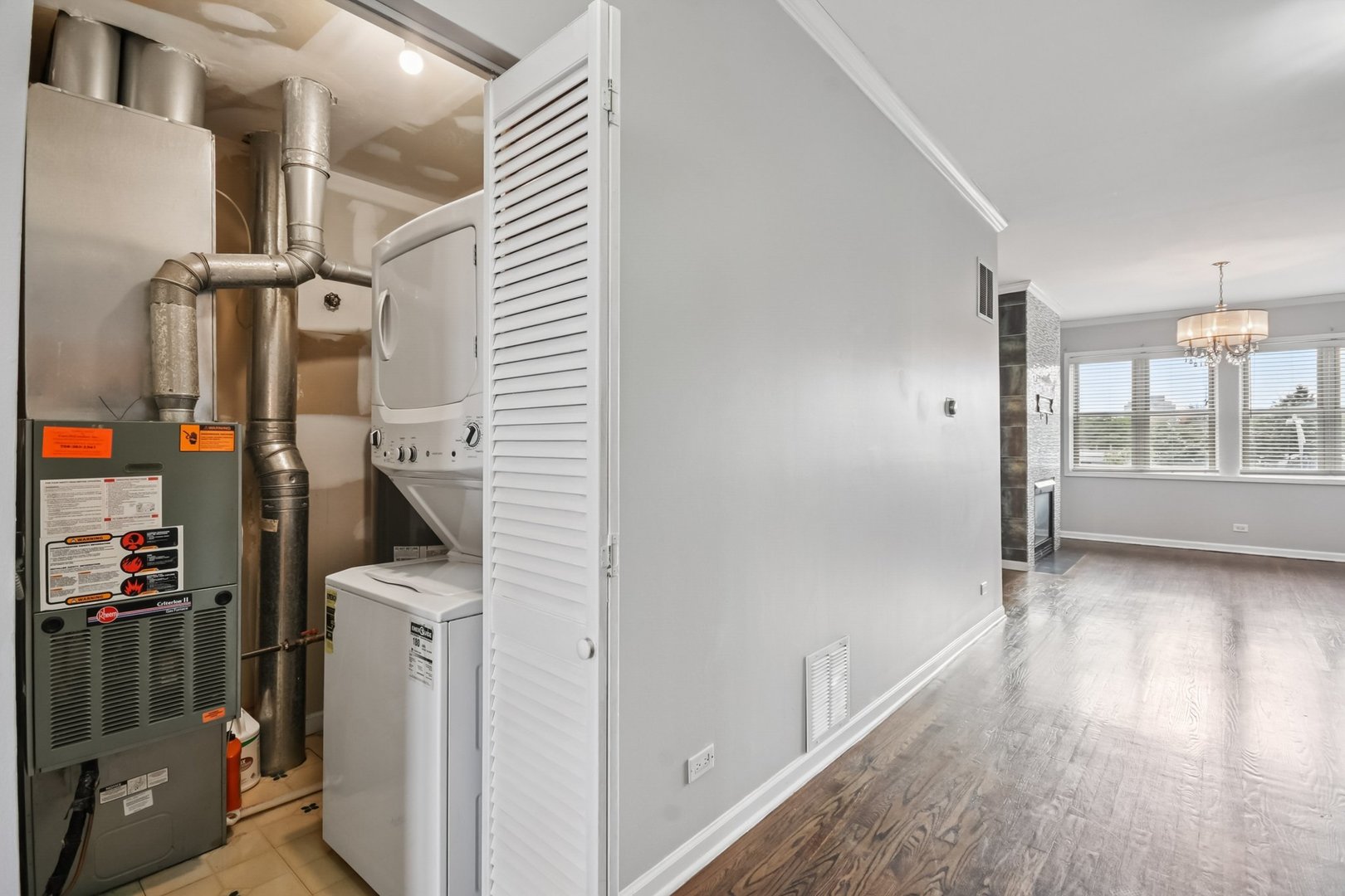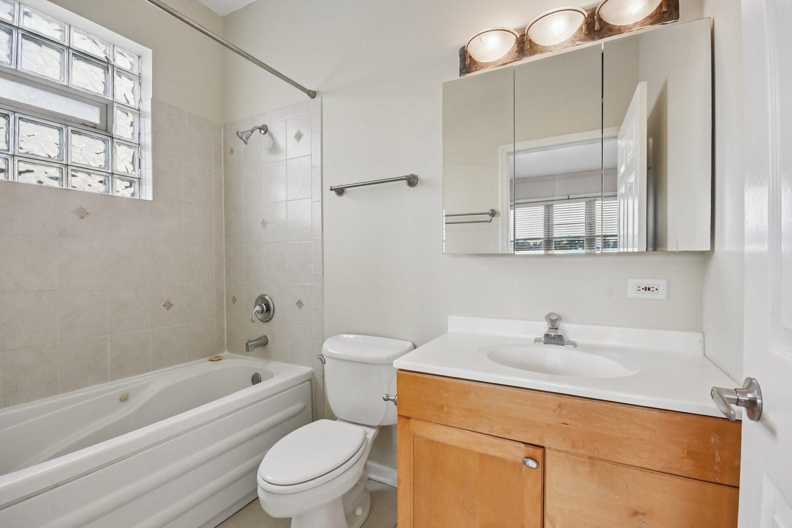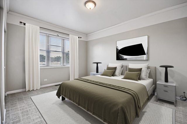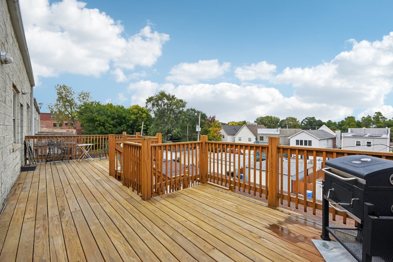 Location, location, location! This airy, sun-drenched top-floor 3BR/2BA condo with soaring ceilings is perfectly situated in North Kenwood. Bright and spacious living room features a stunning floor-to-ceiling stone fireplace and flows seamlessly into the dining area, creating an ideal space for entertaining. The large kitchen offers a peninsula with breakfast bar, stainless steel appliances and additional space for a table or sitting area. The primary suite includes dual closets and a private ensuite with a relaxing soaking tub. Two additional bedrooms share a well-appointed hall bath. Step outside to your expansive private deck-fully rebuilt in 2024-or enjoy the shared common yard. Additional features include one detached garage space, a large private storage room in the basement and gated front entry. The building completed staircase repairs in 2024. Unbeatable location – just two blocks from Lake Shore Drive, the lake front, 47th Street Metra & multiple bus lines. Enjoy the convenience of being minutes to grocery stores, dry cleaners, shopping, fitness centers and restaurants!