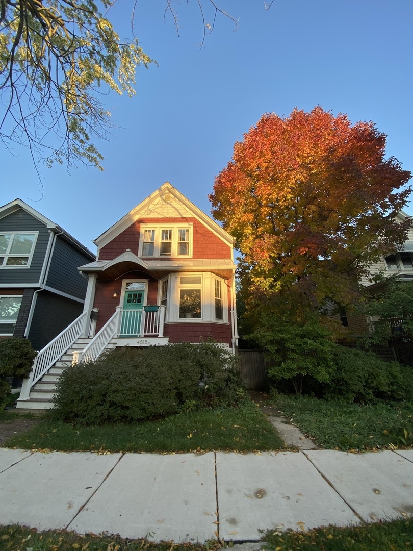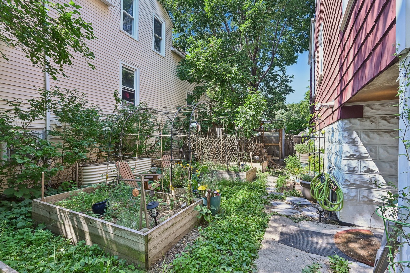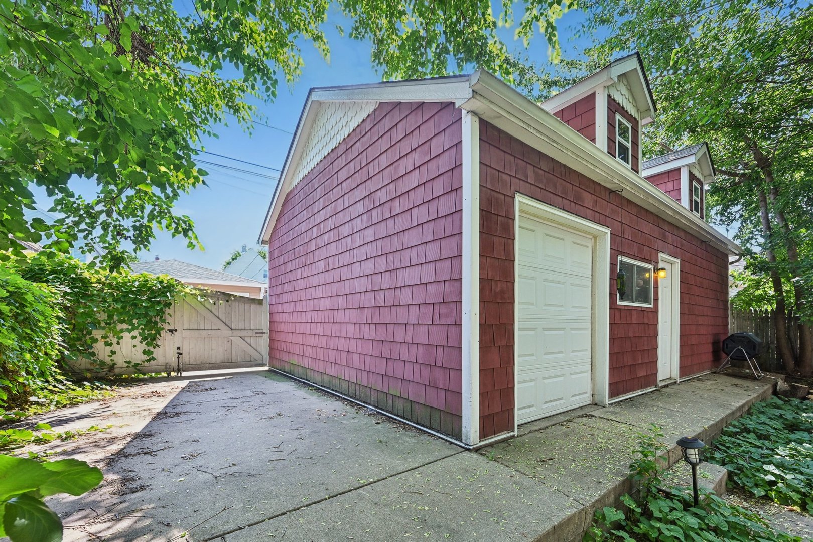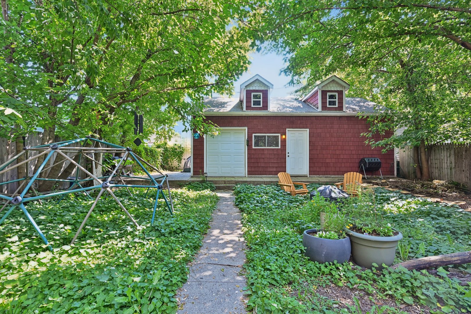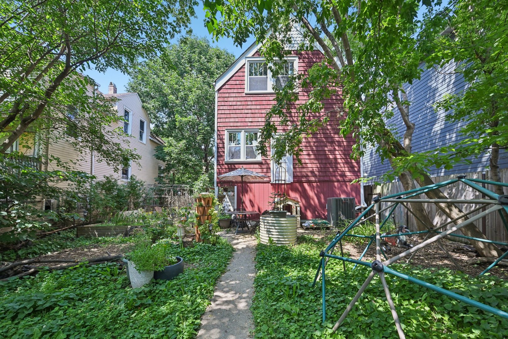 Charming 3-Bed, 3-Bath Vintage Farmhouse with Modern Updates! This beautifully updated vintage farmhouse blends original charm with modern comfort. From its inviting front porch and blooming lilac bushes to its light-filled interior, this home is full of character and warmth. Step into a spacious entryway with built-in storage, a cozy sitting area, and hardwood floors that run throughout. The flexible front room can serve as a dining or living space and flows into a large kitchen featuring a breakfast nook, ample cabinetry, and a vintage stove. The nook overlooks a serene, wooded backyard oasis. The main floor also includes a generously sized bedroom and an updated full bath. Upstairs, enjoy bonus living space with a sunroom/office, sitting area, two large bedrooms, and a second updated bath. The nursery shines with a hand-painted mural with glow-in-the-dark stars. The finished basement offers even more living space with a large rec room, office, updated spa-like bath, and laundry area. Outdoors, the oversized, private backyard is a nature lover’s dream-filled with mature trees, edible berry trees (serviceberry & mulberry), wild violet ground cover (no mowing needed), custom garden beds, and a chicken coop. A 3-car detached garage and gated parking pad complete the package. Recent updates: New AC (2017), appliances (2018), washer/dryer (2025), and more (see broker remarks). Ideally located near multiple parks, North Branch Trail, CTA Blue & Brown lines, I-94, groceries, and restaurants-this city homestead offers the best of both worlds!
