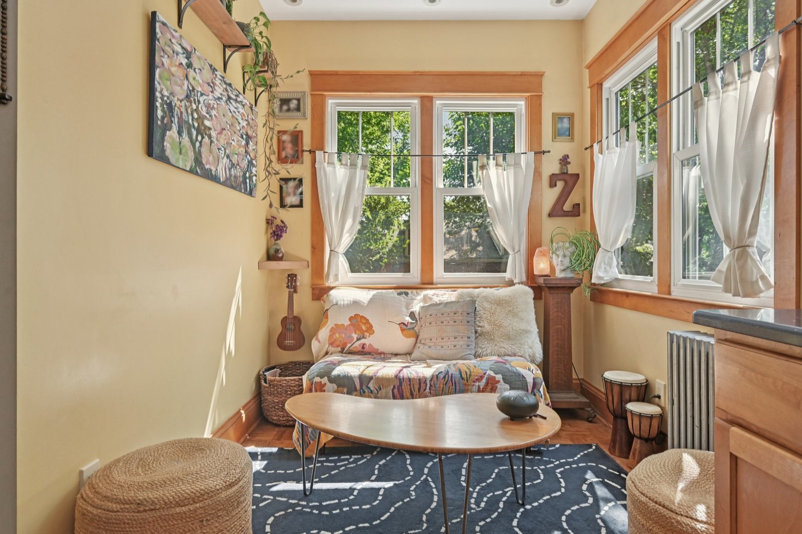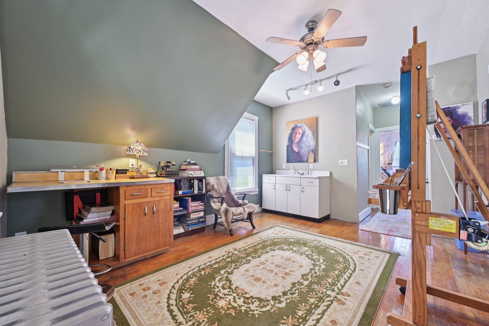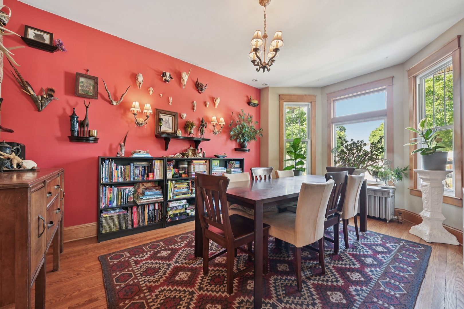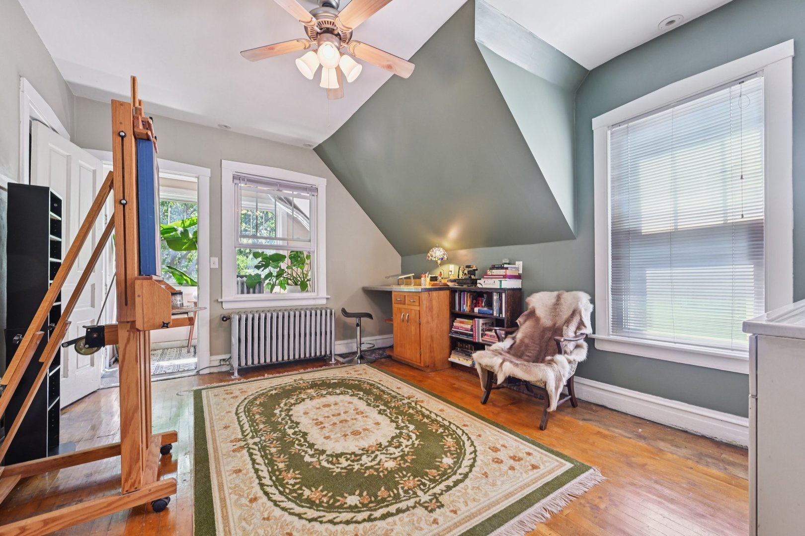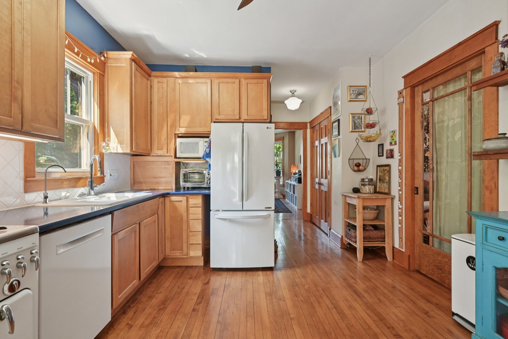Charming 3-Bed, 3-Bath Vintage Farmhouse with Modern Updates! This beautifully updated vintage farmhouse blends original charm with modern comfort. From its inviting front porch and blooming lilac bushes to its light-filled interior, this home is full of character and warmth. Step into a spacious entryway with built-in storage, a cozy sitting area, and hardwood floors that run throughout. The flexible front room can serve as a dining or living space and flows into a large kitchen featuring a breakfast nook, ample cabinetry, and a vintage stove. The nook overlooks a serene, wooded backyard oasis. The main floor also includes a generously sized bedroom and an updated full bath. Upstairs, enjoy bonus living space with a sunroom/office, sitting area, two large bedrooms, and a second updated bath. The nursery shines with a hand-painted mural with glow-in-the-dark stars. The finished basement offers even more living space with a large rec room, office, updated spa-like bath, and laundry area. Outdoors, the oversized, private backyard is a nature lover’s dream-filled with mature trees, edible berry trees (serviceberry & mulberry), wild violet ground cover (no mowing needed), custom garden beds, and a chicken coop. A 3-car detached garage and gated parking pad complete the package. Recent updates: New AC (2017), appliances (2018), washer/dryer (2025), and more (see broker remarks). Ideally located near multiple parks, North Branch Trail, CTA Blue & Brown lines, I-94, groceries, and restaurants-this city homestead offers the best of both worlds!