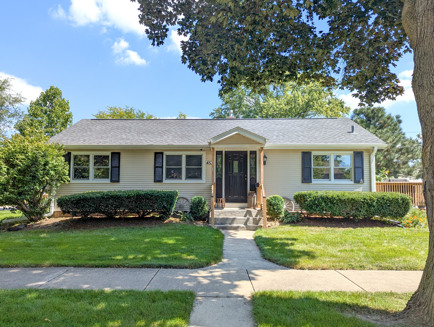 This is better than buying a townhome! This whistle clean ranch sits on a spacious corner lot just minutes from downtown West Chicago and the train station. A beautiful front door welcomes you into the light-filled living and dining area, featuring hardwood floors and abundant natural light from Pella windows with wood blinds. The living space flows seamlessly into the kitchen, which offers oak cabinetry, all appliances (Fridge – 2025, Dishwasher – 2024, Oven/Range – 2017) and a patio door leading to the side deck (redecked in 2023). Two nicely sized bedrooms include great closet space and ceiling fans with an updated hall bath conveniently located between them. The full basement adds even more value with a second updated full bath, plenty of storage space and a standing freezer. Updates include: Roof, landscaping, painting (shutters/exterior doors) all in 2024. NEW water heater, dryer and interior painted all in 2025. A/C, furnace, washer all in 2017. Plus there is a detached two-car garage that completes this truly move-in-ready home. Stop by it today!