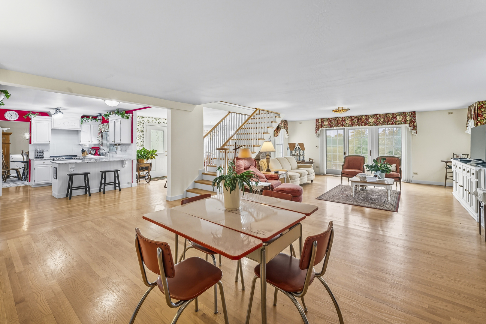 This is a special opportunity! This expanded 2 story home offers more square footage than you can find in the immediate area, and sits on a wonderful private lot backing up to a conservation area and a walking/biking trail. It can be your own retreat when you’re at home! The relaxing front porch adds to the appeal, making this a unique home in the neighborhood. There was also a major addition added to rear of the home extending both floors, and the basement too! This gives the home a sprawling, open floor plan on the main level. With 4 bedrooms with 3 and a half bathrooms, plus multiple living areas – you get loads of space, and versatile ways to utilize that space. The massive 33 x 21 family room with sliding glass doors that lead to the patio are an entertainer’s dream! Enjoy your morning coffee from the eating area with great, relaxing views. The master bedroom suite is extended as well with an adjacent spacious sitting room through French doors overlooking the wonderful views out back. A large and conveniently located laundry room is on the second floor too. There are dual heating and cooling systems. Hardwood floors. Paver brick patio and driveway. A full basement with full bathroom and storage is ready for your finishing touches and ideas. This is a fabulous Schaumburg location, near shopping, transportation, I90, and everything that you might need! Kids will attend popular District 54 and 211 schools. Make time to see this one soon!