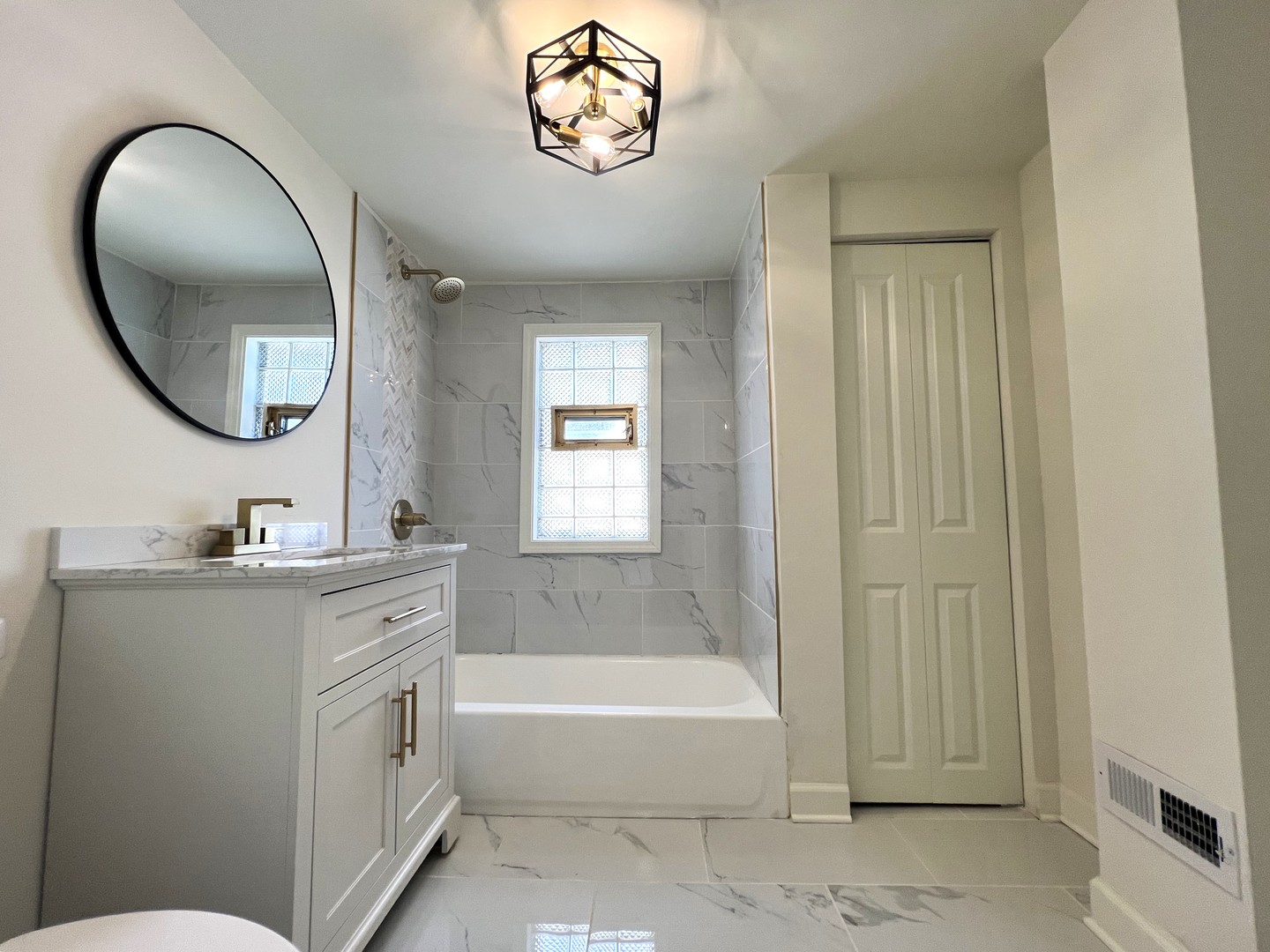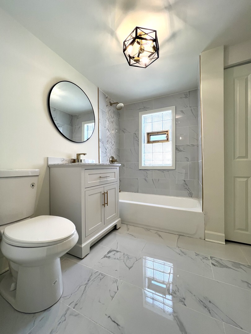 Take a look at this newly remodeled, spacious dual-story 4 Bed/2 Bath home with LOW TAXES! Located on a highly desirable block in Cal City, this home has been professionally updated featuring all new carpentry throughout (new doors, windows, trim, etc.), new kitchen cabinetry with quartz countertops and stainless steel appliances, newly designed carerra-styled bathrooms with gold fixtures, custom finished hardwood flooring, led recessed lighting, and modern light fixtures throughout. The main level consists of a large living room with tons of natural lighting, a kitchen with kitchenette space, a small den which can be used as an office room, two OVERSIZED bedrooms, and a full bath. The upper level includes two additional bedrooms and an additional full bathroom. The basement includes a brand new furnace, central air conditioner, and water heater. Detached two car garage and private backyard great for entertainment. Excellent location close to schools, shopping, and expressway. FHA offers welcomed