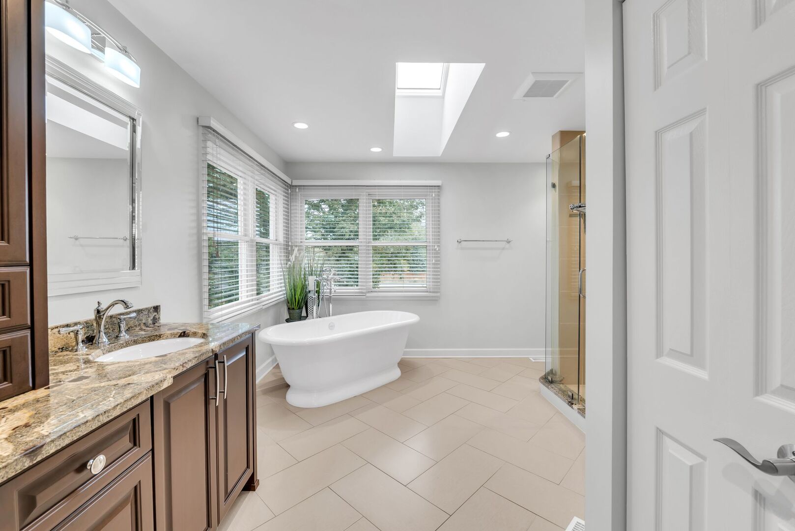 Welcome to this rarely available home in the sought-after Amberleigh community of Buffalo Grove. Built by Hoffman Homes, this exquisite residence is perfectly situated near parks and schools. Step inside to discover an expansive first-floor layout designed for both comfort and style. The distinctive spaces include a well-appointed and updated kitchen, charming breakfast area, formal dining room, sophisticated living room, and family room. The convenience of a first-floor laundry room and powder room complete this level. Ascend to the second floor where the primary suite awaits, featuring a timelessly renovated bathroom complete with Victoria and Albert free standing tub, oversized rain shower and double custom built vanity. Three additional generously-sized bedrooms and an updated bathroom provide ample space for family and guests. Peace of mind comes with the brand new roof, gutters and siding. Complete with finished basement with office and abundant storage ensuring this meticulously maintained home is move-in ready. Families will appreciate the home’s location within the prestigious Stevenson High School district, complimented by access to excellent elementary and junior high schools. Don’t miss the opportunity to call this exceptional property your new home! ALL OFFERS ARE DUE BY 12 PM on Sunday, October 26!