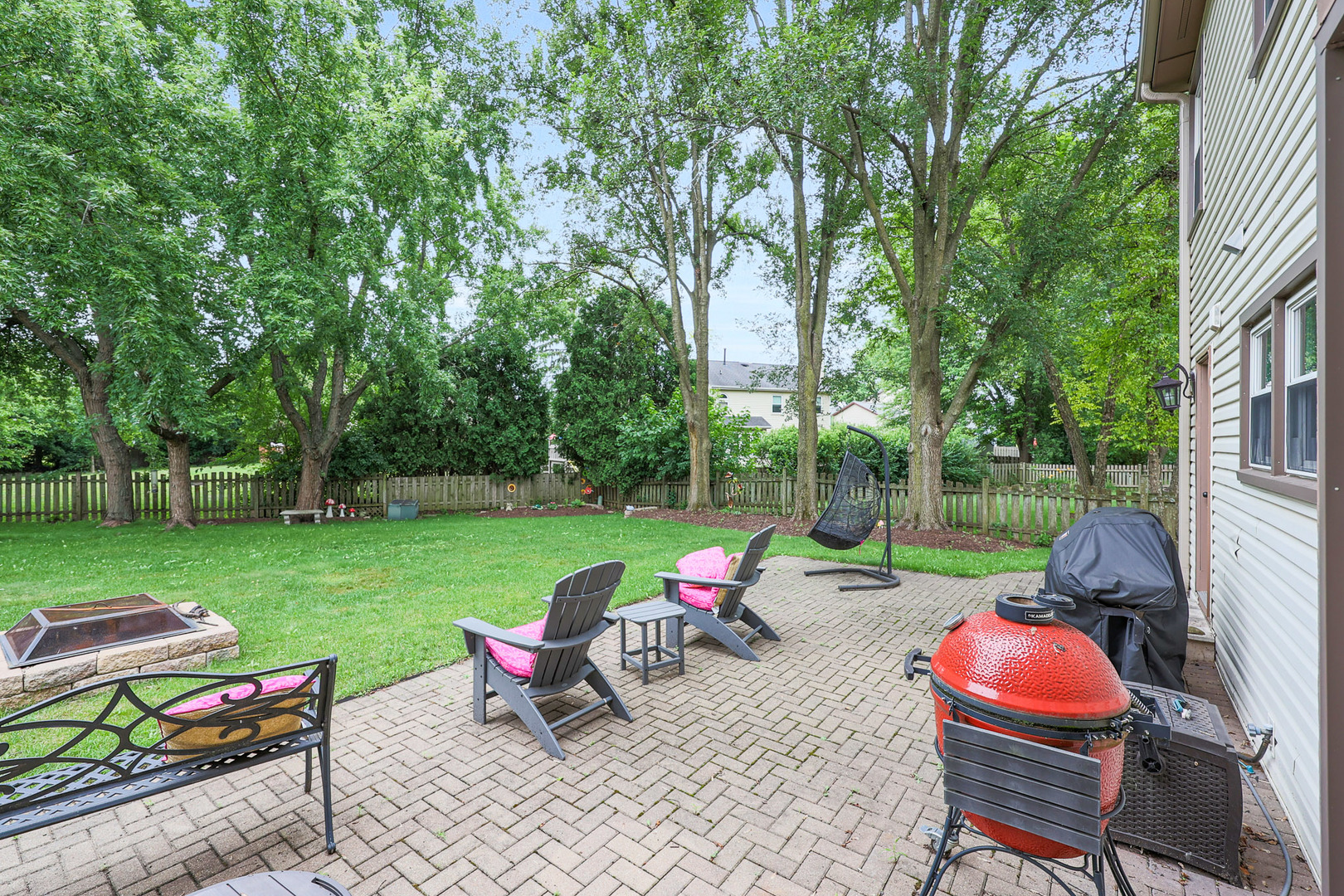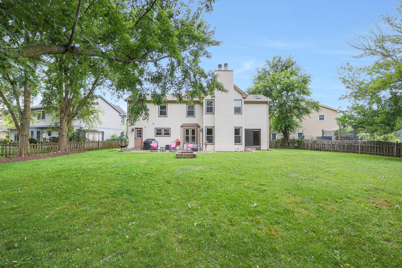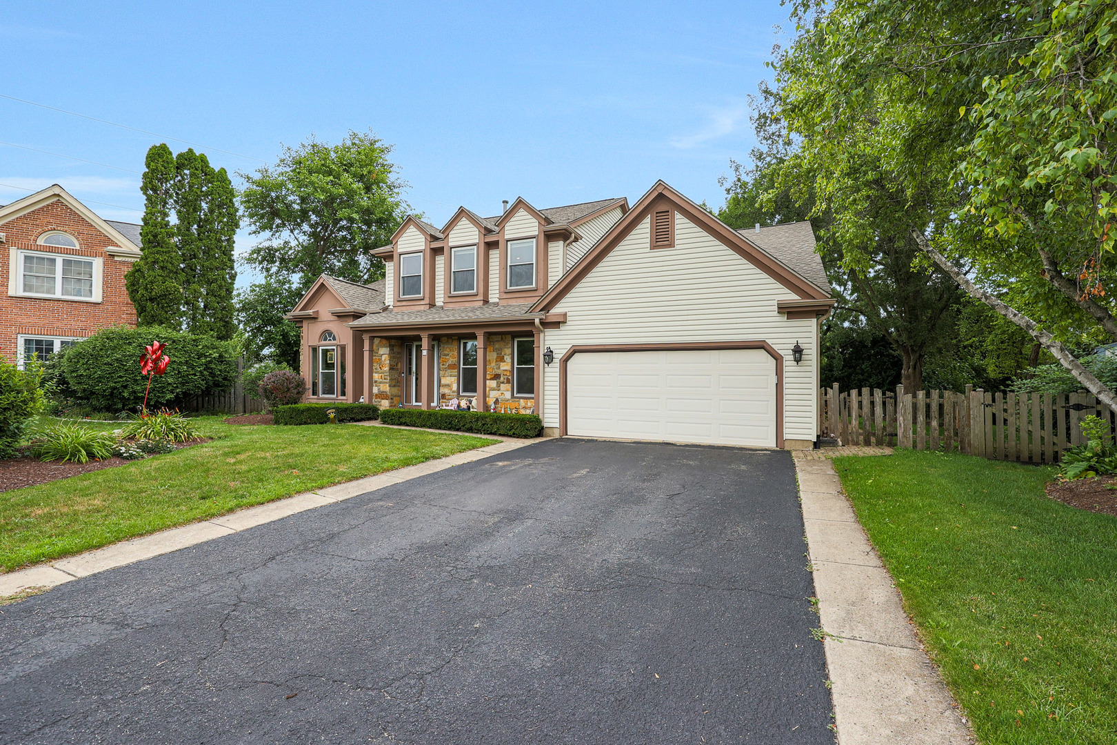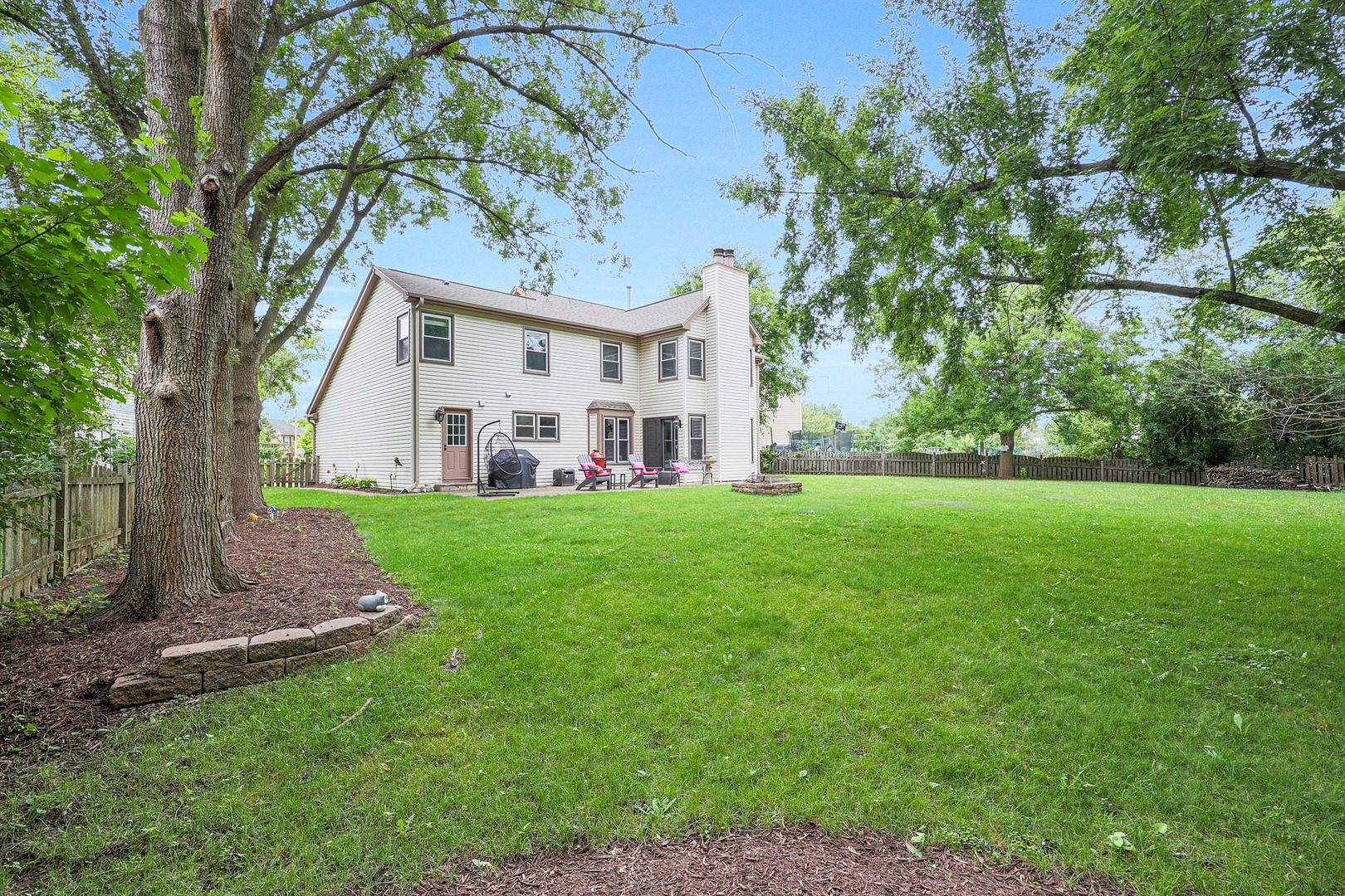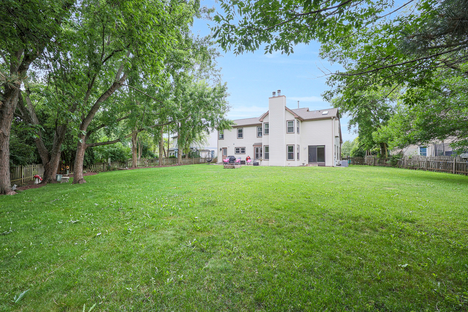 Great updated Coventry model in Old Farm Village. New white kitchen with granite countertop, new stainless appliances including a double oven, and space for eating. Flow through from the kitchen into the family room with a fireplace adjacent to first floor office. Formal living room with built-in shelving plus a spacious formal dining room. Renovated laundry room with new top end LG washer & dryer and stainless steel laundry sink. Updated powder room with new vanity and fixture. First floor has hardwood floors throughout and new fixtures. Large master with walk-in closet, fireplace, and master bath with skylight. 3 additional good size bedrooms. Second floor has new luxury vinyl flooring. Spacious finished basement with built-in shelving. New battery back-up sump pumps, new hot water heater. Brand new roof. Enjoy your own vast forest oasis in the fenced in backyard with a brick patio and fire pit to enjoy every season. Award-Winning Elementary District 102 and Stevenson High School.